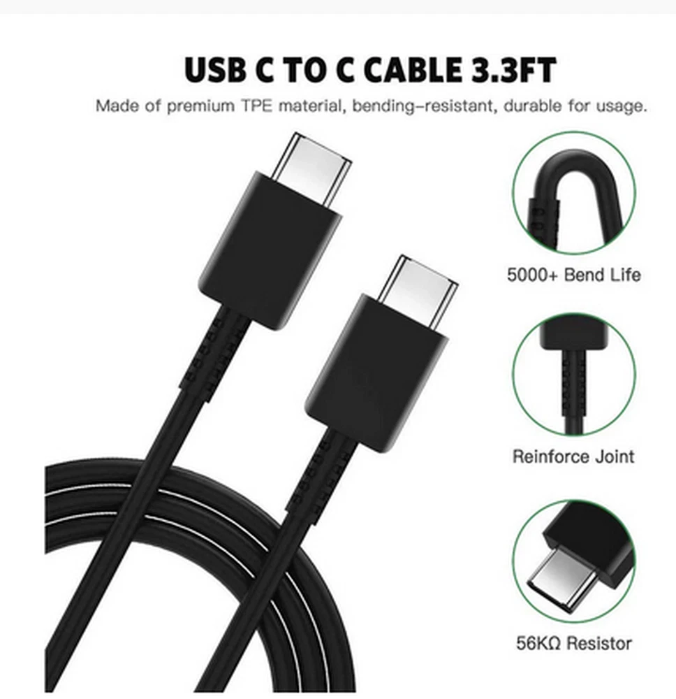 Feature : 1.This is a USB-C to USB-C cable NOT USB-C to USB-A cable, so you need a USB C wall charger to charge your device. 2. For ensure the charging speed of your device, please use the original USB C port wall charger, or other high quality charger which can support QC 2.0/3.0 and USB PD fast charging. 3. It is a charging and data cable not Thunderbolt 3 cable so it can not output video. 4. Supports Qualcomm Quick Charge and USB Power Delivery Charge. Also compatible with Thunderbolt 3 port. 5. These cables are designed according to the USB 2.0 specification. The actual transmission speed is within 480 Mbps( 60 MBps) , so it cannot reach the speed of usb 3.0 (5 Gbps). Connectors: Type C to Type C Cable length :3FT Color: Black Compatible With: For Samsung Galaxy S10/Note 10/S20 / Note 20 For MacBook 2016/2017 For Macbook Air 2018 For MacBook Pro 13.3'' For iPad Pro 11'' (2018)/12.9'' (2018) For Google Pixel 2/2XL/3/3XL For Nexus 6P For Huawei P20/P30/Mate 20/Matebook