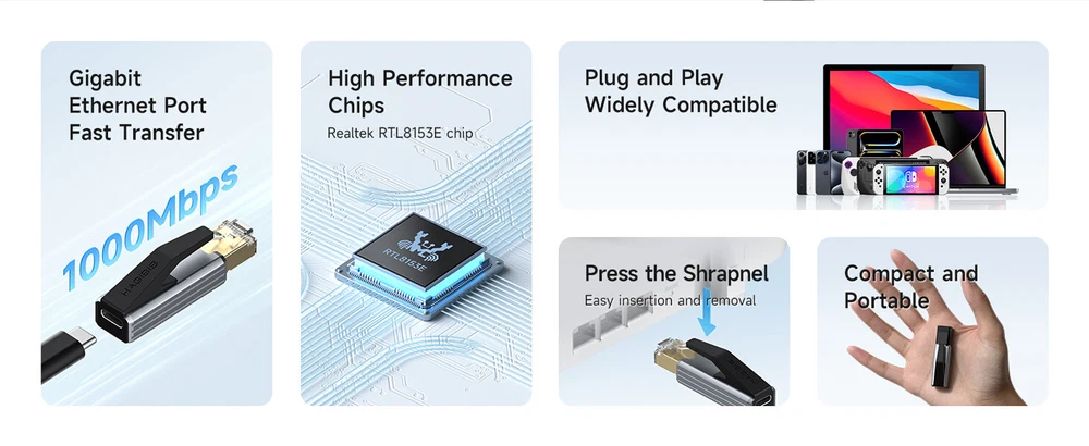 RJ45 to USB-C Gigabit Ethernet Adapter | Type-C Network Converter | 1000Mbps Product Description Upgrade your connectivity with the RJ45 to USB-C Gigabit Ethernet Adapter —a compact and robust solution. RJ45 Adapter breaking through the concept of traditional USB-C male to RJ45 female ethernet adapters, adopting RJ45 male USB-C female design. ⭐️ Key Features: Type-C to Ethernet Adapter – E asily a cce ss t he Internet thro ugh USB C to C or A to C cable. Using a USB cable is more user-friendly and convenient than an Ethernet cable. Note: Compatible with USB 4.0 / 3.2 / 3.1 / 3.0 and Thunderbolt 3/4/5 cables . Gigabit Speed – Enjoy stable, high-speed internet up to 1000Mbps for seamless streaming, gaming, and data transfers. Plug & Play – Adopts the Realtek RTL8153E chip, the network card chip has the advantages of high integration, strong stability, low power consumption and high-speed transmission. Driver-free for Windows 11/10/8.1/8, macOS, iPad OS, Chrome OS, and Android Systems. Just plug in and enjoy a smooth wired network. Broad Compatibility – Works with most laptops, tablets, smartphones, Switch, and Steam Deck with USB-C or thunderbolt 4/3 port, like MacBook Pro/Air, XPS, iPhone 15/15 Plus/15 Pro/15 Pro Max, Mac Mini, Chromebook, iPad. Lightweight and Compact – The space-saving and portable design measures just over half an inch thick and weighs about 0.9oz. ⚙️ Specifications: Interface: RJ45 Gigabit Ethernet (Male) to USB Type-C (Female) Data Rate: Up to 1000Mbps No external power required 📦 Package Includes: 1 x RJ45 to USB-C adapter, 1 x Protective cap, 1 x P ackaging box 💼 Perfect For: Offices, conference rooms, and surveillance setups Professionals on the go who need reliable network access Payment Policy Shipping Policy Returns Policy About us Payment Policy 1. The only payment method we accept so far is eBay Management Payment. 2. If this brought up any inconvenience to you, please accept our apology. Any other question is welcome to ask through our excellent customer service. Shipping Policy 1. We only ship to your verified eBay addresses. Your eBay address MUST MATCH your Shipping address. 2. The default way is international economy shipping. To other country could take around 20-45 days on the way. And bad weather or peak season could make it longer. Please be patient. 3. If you need urg ent, please choice express shipping option or send message to us after placing order. Returns Policy 1. Please leave positive 👍 feedback and 5-star ⭐️⭐️⭐️⭐️⭐️ rating , it helps us do better for you. 2. Please contact us if you have any questions before or after purchase. 3. If you receive the items have quality problems or damaged, please provided the photos and contact us, we will resend it or refund your payment. But we will not accept return by buyer operational errors caused damaged items. About us 1. Business Hour: Monday To Friday: 9:00 AM to 6:00 PM (Beijing China time). 2. Due to time zones, our reply to your questions may not be immediately. But within above working time, we will reply your email within 24 hours. If it's non-workdays, please kindly be patient and wait till Monday. 3. Please contact us with ebay message. Copyright © 2023 Dianxiaomi