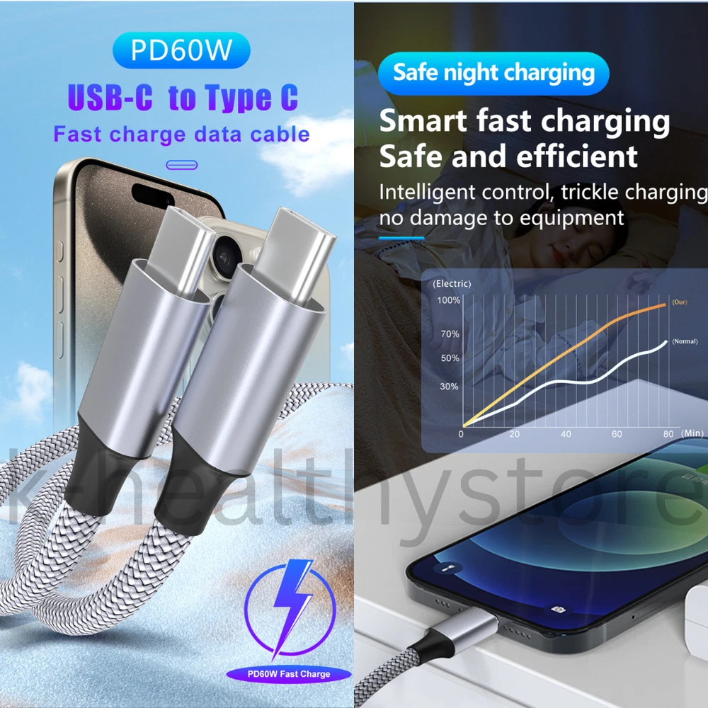 USB-C to USB-C Fast Charging Cable High-Quality Charging & Data Transfer Stay connected and powered up with this premium USB Type-C to Type-C cable, designed for high-speed charging and reliable data transfer. Built for durability, this cable ensures a long lifespan and optimal performance for all your Type-C devices. ⚡ Key Features: Upgraded Copper Core: Enhanced thick copper wiring for faster charging and efficient data transfer. Advanced Smart Chip: Built-in 56KΩ resistor for safe trickle charging, preventing overheating. Universal Compatibility: Works with a wide range of USB Type-C devices, including smartphones, tablets, and laptops. Fast Charging & Data Transfer: Supports PD 60W and Quick Charge (QC) for efficient power delivery. Reinforced SR Design: Upgraded strain relief structure to resist twists and prevent cable breakage. Durable & Flexible: Made with high-quality Nylon Braided material for enhanced durability and flexibility. Length: 6ft for versatile use. 📱 Compatibility: Smartphones: iPhone 16, iPhone 16 Plus, iPhone 16 Pro, iPhone 16 Pro Max, iPhone 15, iPhone 15 Plus, iPhone 15 Pro, iPhone 15 Pro Max, Samsung Galaxy S24, S23, S22, S21, S20, Note 20, Note 10, Google Pixel 8, 7, 6, OnePlus 12, Xiaomi 14, 13, 12. Tablets: iPad Pro (7th Gen), iPad Air (6th Gen), iPad Mini (7th Gen). Laptops: MacBook Pro, MacBook Air, Dell XPS, Lenovo ThinkPad, Microsoft Surface. Other Devices: Nintendo Switch, Steam Deck, Power Banks, and more. 📦 Package Includes: 1 x USB Type-C to Type-C Fast Charging Cable with Premium Nylon Braided Exterior 💡 Why Choose This Cable? Upgraded Internal Components: Copper core and smart chip for safe, high-speed performance. Superior Durability: Nylon Braided, Tangle-Free Design. Reinforced Strain Relief: Special SR protection to prevent bending damage. Universal Compatibility: Works with various Type-C devices. 🔒 Warranty & Customer Support: ✅ We provide a warranty for our product. ✅ If you have any questions, please contact us via eBay. Our team will respond promptly to assist you. 🚚 Shipping & Returns: ✅ Fast shipping from our USA warehouse. ✅ 30-day return policy for peace of mind. ✅ 1-year warranty for guaranteed quality. Order now and experience high-speed charging with a reliable, durable USB-C to USB-C cable! ⚡