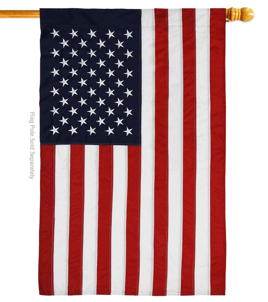 PROUDLY Made In USA - Package And Product Designed In California PURCHASE WITH CONFIDENCE - From USBrotherhood's US Authorized Resellers MADE OF DURABLE - 100% Thick Polyester Fabric construction helps resist the wear and tear from frequent use TEXT READABLE BOTH SIDES - House Flags Pack Double-Sided Print DURABLE FLAG - Double stitching panels on multiple rows and high quality Sleeve to provide lasting strength VIBRANT COLORS - With UV-Resistant Maintains Its Colors All Season Long FEATURES - Sleeve Hanger fits standard Banner/Flagpole, Bracket, Arbors or stand, SOLD Separately