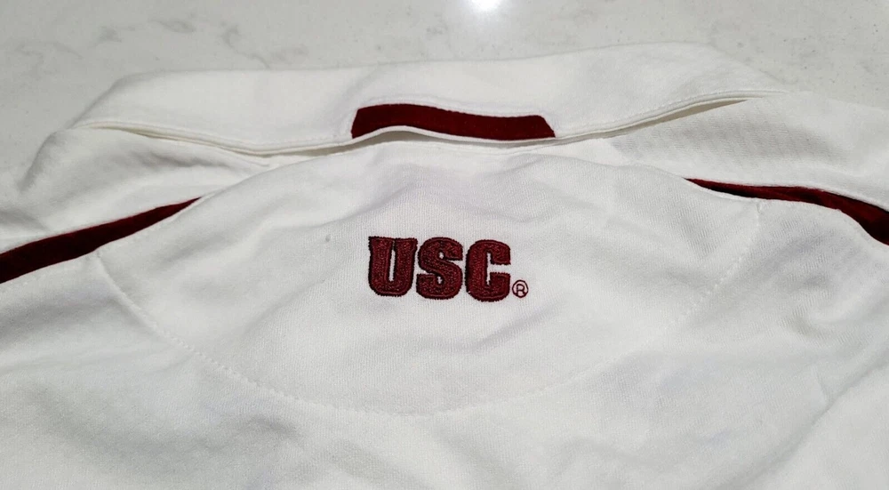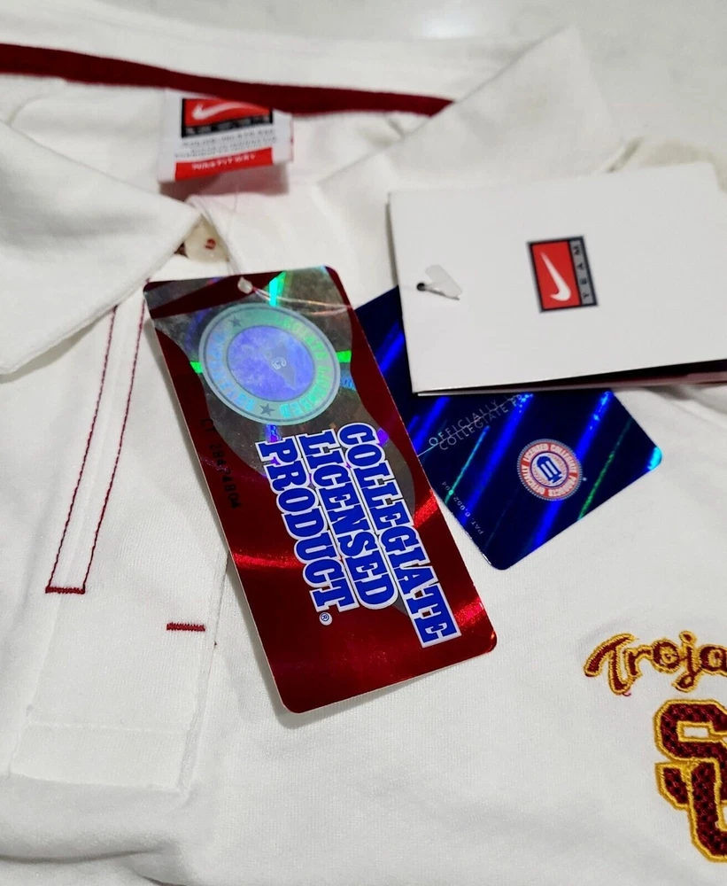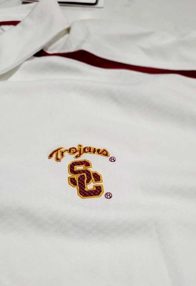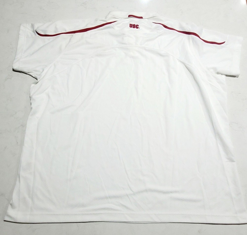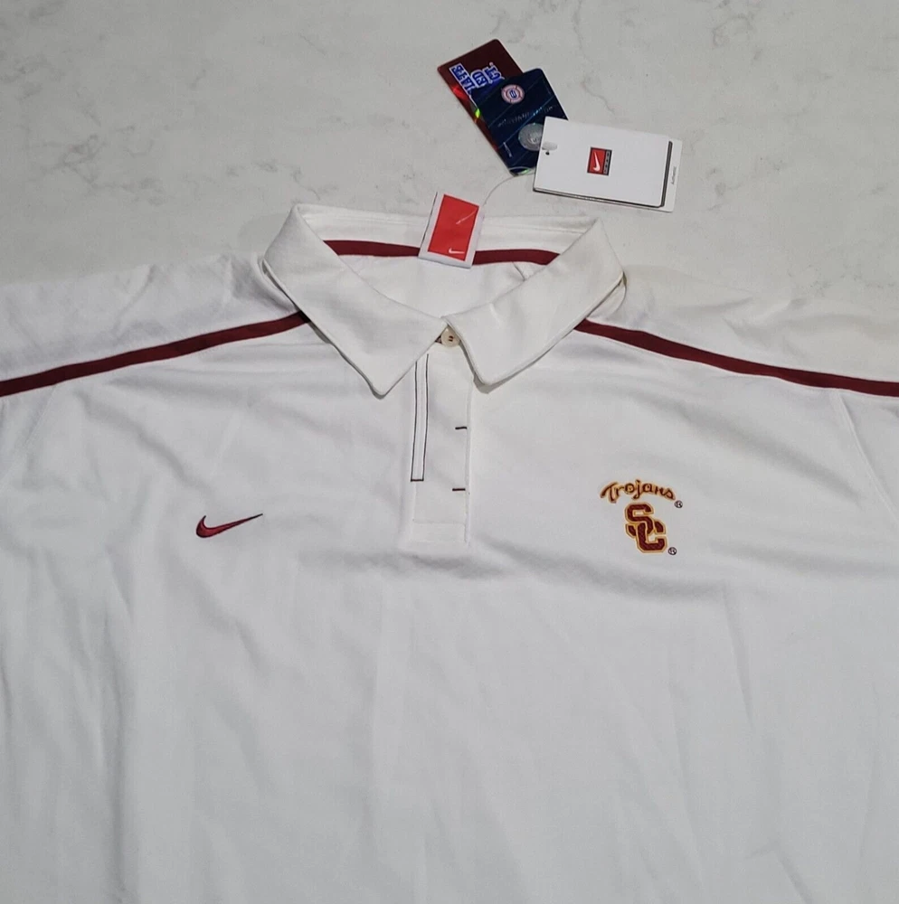 NIKE. USC TROJANS. NCAA. WOMANS 4XL POLO. NEW WITH TAGS. IN EXCELLENT CONDITION. NO STAINS OR DAMAGE. PLEASE VIEW ALL PHOTOS ABOVE FOR MEASUREMENTS AND PROOF OF CONDITION. STORED IN A CLIMATE CONTROLLED SMOKE-FREE AND PET-FREE HOME. SHIPS PROMPTLY AND SECURELY. Show off your USC Trojans pride with this authentic Nike Dri-Fit Polo in size 4XL, designed specifically for women. The white polo shirt features the official NCAA Championship logo and is officially licensed for your assurance of quality. Perfect for game day or any occasion, this basic style is ideal for any fan looking to support their favorite team. Representing the USC Trojans in style, this polo is perfect for any NCAA event or tournament. Made with high-quality materials, this Nike polo is sure to keep you comfortable and cool all day long. Don't miss out on the chance to add this piece to your collection.
