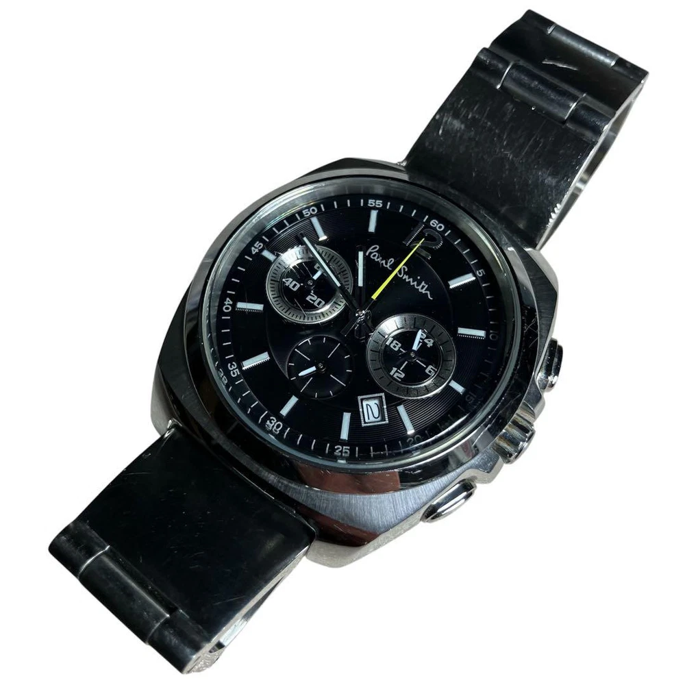 USED PAUL SMITH FINAL EYES CHRONOGRAPH BLACK WRISTWATCH ACCEPTABLE M-87DF Item Description This item is listed on behalf of the owner of this watch , by us. The description of the item is automatically translated by Google Translator from the original Japanese description. If the translation is poor and the meaning is not clear, please contact us before purchasing to avoid any problems. USED PAUL SMITH FINAL EYES CHRONOGRAPH BLACK WRISTWATCH Comment from the (pre-)owner: [Product Information] Paul Smith Watch Working Item Model: Final Eyes Chronograph 0520-T011519 Black Black Dial Drive: Quartz Functions: Date, calendar, date, stopwatch Watch, 24-hour display, small seconds, hatch Lock function Material: Stainless steel Waterproof: 100m, 10 atm Size (width): Approx. 40mm (crown, crown guard) Arm circumference: approx. 19cm Accessories: None [Product condition] There are some minor scuffs and scratches due to use, but there are no noticeable deep scratches. Please check the image for the condition. No problem with normal operation. Also, I cannot tell you the extent of the battery's deterioration since it is not new. Thank you for your understanding. Also, there may be scratches that cannot be seen in the photos or small scratches that were overlooked when checking the condition, so please understand that this is a used item before considering purchasing. Color: Black Band: Stainless steel band Movement: Quartz/battery operated Dial shape: Round/round Notification About Our Stocks Although we check our inventory as needed, we sell our products at our stores in Japan at the same time, and because we are unable to synchronize our inventory data with eBay, there may be cases where the actual product is not in stock after you place your order. In the unlikely event that an item is not in stock, we will do our best to provide you with a substitute, but please understand that your order will be cancelled if we do not have the item after your order as "a buyer requested a cancellation". Returns Returns will only be accepted if the condition, function, authenticity or design of the received goods objectively differs from the photos and descriptions on this eBay item page, and only within 30 days of receipt. Returns in such cases will be handled in good faith and the return shipping costs will be borne by us. Returns must be in the same condition as when the goods arrived and with all accessories. We cannot accept returns if the product has been used by you. (The shipping package is of course not included in this scope). IF � You did not like the item(s) you received.�, ‘The size of the product was as described but it does not fit you.� In such cases, where the customer must be responsible for the purchase of the item and we will not accept the return of the item. Shipping We ship worldwide mainly via FedEx or DHL (basically 5-8 business days delivery, with insurance & tracking). We ship out your items within 3-5 business days after your payment. We ship only to the address registered on ebay is valid as the shipping address. Payments We only accept ebay managed payments. You need to pay immediately after your order. Taxes etc. Import duties, taxes, and various fees you may be required to pay at the time of importation are not included in the item price or shipping charges you pay on eBay. It is your responsibility as the buyer to pay these fees. Please check yourself with your country's customs office before bidding/buying to find out what additional costs you will need to pay. These payments are usually collected by the shipping company. Please remember that they are not additional shipping charges from us. About Us We run pawn shops in Japan. We study information and appraisal prices of mainly watches and sunglasses on a regular basis, and make every effort to ensure that our customers can do business with us with peace of mind. We also cooperate with pawn shops nationwide to sell valuable used watches that exist in the Japanese used watch market to overseas customers. We pack carefully and ship promptly. There may be delays in delivery due to customs and other reasons. In such cases, please feel free to contact us by e-mail so that we can take full responsibility. Please do not open a case easily on eBay before contacting us. Once you open a case, the eBay case system is inflexible and will result in you just not getting the item you want.