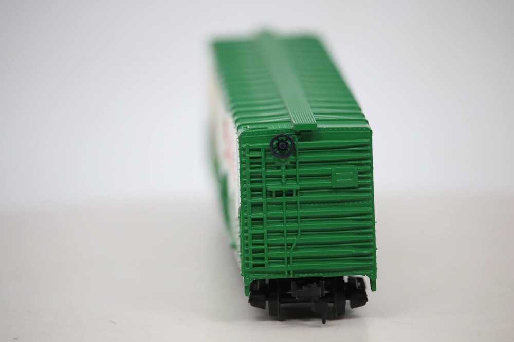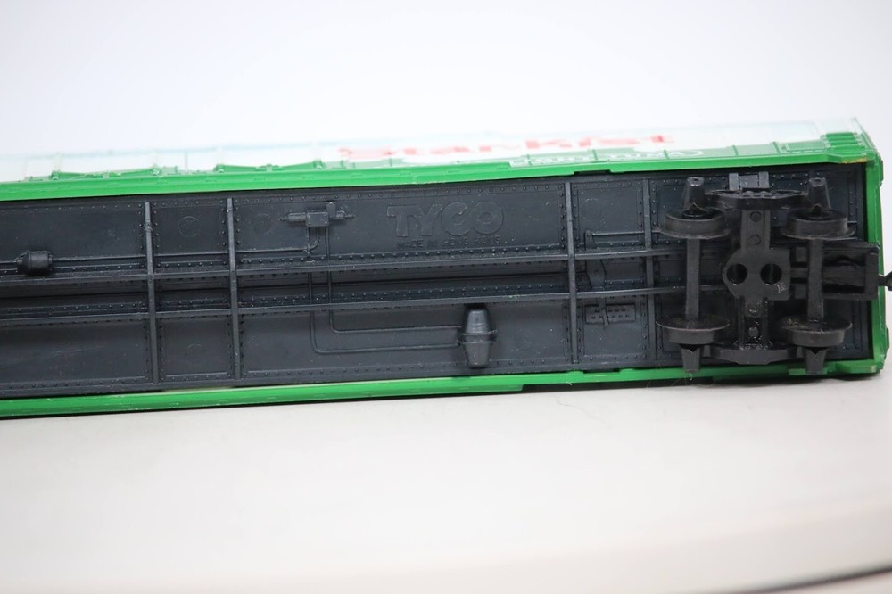 This HO Scale box car from Tyco is a great addition to any model train collection. With a vibrant green color and Star-Kist corporate roadname, it's perfect for anyone who loves advertising-themed models. Built in 1988, this vintage piece is in excellent shape and ready to go right out of the box. The car is pre-built and features a two-rail system, with a chunk light tuna design that's sure to catch the eye of any train enthusiast. It's graded C-8 like new and suitable for ages 14 and up. This replica of a 60' box car is made in Hong Kong and is sure to be a hit with collectors and hobbyists alike. USED Tyco HO Scale, 60' Box Car, Star-Kist ATSF #25007, Chunk Light Tuna SKU#009061 Please Read Before Purchasing We strive to provide a clear and pleasant buying experience for all our customers. Below is important information regarding item descriptions, shipping, returns, and feedback. ITEM DESCRIPTIONS Items are described to the best of our ability and accompanied by detailed photos. Please review them carefully before purchasing. Only items pictured and described are included in the sale. For items sold "AS-IS," functionality may be unknown, and they are priced accordingly. Refunds for "AS-IS" items will only include the purchase price, not shipping costs. If you have additional questions or require further details, feel free to ask before bidding or buying. SHIPPING INFORMATION Combined Shipping: If purchasing multiple items, please request an invoice before payment to ensure accurate combined shipping costs. Items will be shipped within 24 hours of payment receipt (excluding weekends and holidays). Payments received after noon EST on Fridays will ship the following business day. International shipping is available—please contact us with any questions. We carefully package items, but in the rare event of damage during transit, please contact us to resolve the issue. RETURNS We abide by eBay's Money Back Guarantee. Items can be returned within 30 days under the following conditions: Defective/Damaged Items: A full refund will be issued after the item is returned and inspected. "AS-IS" or Buyer’s Change of Mind: Refunds will include the purchase price only, with the buyer responsible for shipping costs. Please contact us before initiating a return request to discuss solutions. IMPORTANT NOTES Items may show signs of long-term storage, including blemishes, dust, or minor wear. Some components, such as couplers, brake wheels, steps, or ladders, may be missing or damaged. Items may require cleaning for optimal appearance. Photos are taken under lighting that may slightly affect color or hue. Feel free to request additional photos in natural lighting or a more detailed description if needed. FEEDBACK We value your satisfaction and appreciate positive feedback. If there are any concerns, please contact us before leaving neutral or negative feedback—we’ll work to resolve the issue promptly. Thank you for your interest in this item! We look forward to a smooth and satisfying transaction.