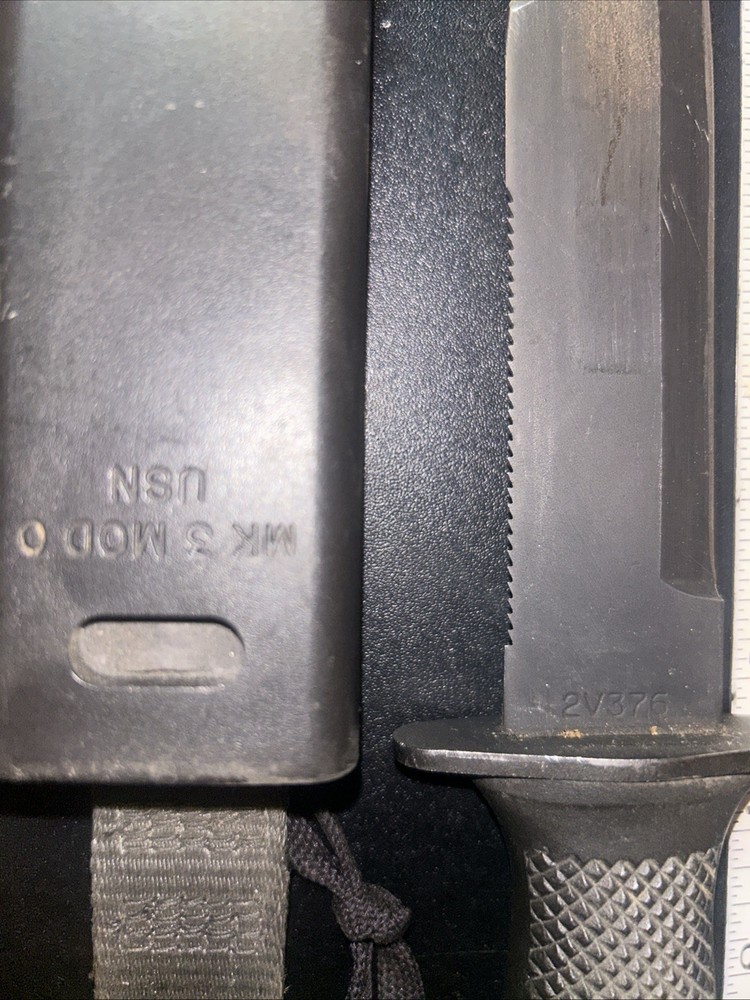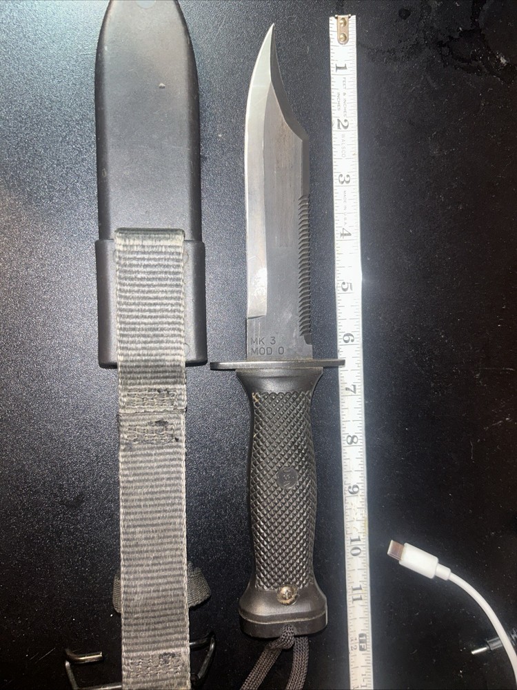 The Genuine MK3 MOD 0 2V376 USN Navy Seals Combat/Diving Knife is a high-quality, original combat knife with a black blade over 5 inches in length. It features a combination blade edge, lanyard hole, and comes with a sheath. The knife has a plastic handle for durability and a comfortable grip. The unique colored blade adds a distinctive touch to the overall design, making it a practical yet stylish tool for various outdoor activities such as diving, camping, or hiking.