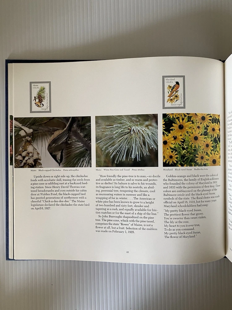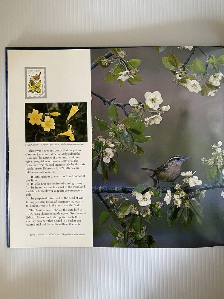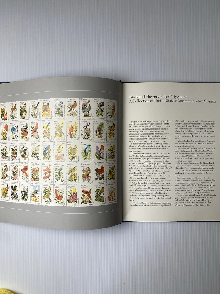 This commemorative stamp book is a must-have for any philatelist. Featuring the beautiful Birds and Flowers of the Fifty States, as captured for postal stamps. Published in 1982. It includes a dust jacket. See photos for condition, lovely old book smell. No issues not shown. Make me an offer I can't refuse!