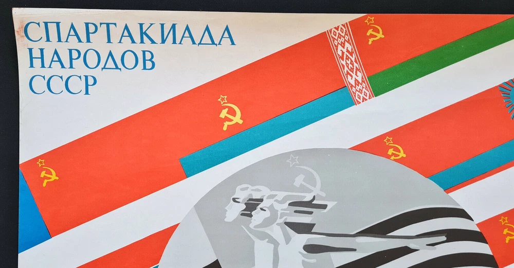 Original slogan on the poster: СПАРТАКИАДА НАРОДОВ СССР СПОРТИВНЫЙ ПРАЗДНИК МИЛЛИОНОВ! Literally English translation: SPARTAKIAD OF THE PEOPLES OF THE USSR. SPORTS HOLIDAY OF MILLIONS! POSTER ARTIST: LUKYANOV MIRON VLADIMIROVICH PRINT YEAR: 1983 SUBJECT: AGRICULTURE, FARMING LANGUAGE: RUSSIAN PRINT RUN: 100.000 PUBLISHED BY: "PLAKAT", MOSCOW SIZE: IN: 25 ½ x 37 ¾ = CM: 65 x 96 CONDITION: ROLLED, NEAR TO MINT The poster is in a great shape, of the defects it is a minor creasing and paint spot on the top right corner. The Spartakiad of the Peoples of the USSR was a mass sports competition in the USSR in 1956-1991. There were two types of sports days of the peoples of the USSR: the summer sports days of the peoples of the USSR, as a rule, were organized in the pre-Olympic year, and the winter sports days of the peoples of the USSR - two years before the Olympic Games. www.facebook.com/sovietartposters Listing and template services provided by inkFrog