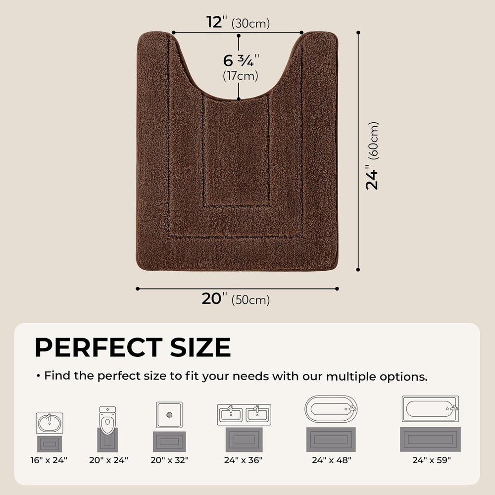 Ultra Absorbent - With its thick, plush, high-density microfiber, the bathroom mat is super absorbent and can quickly absorb water and moisture to keep your floors clean and dry. In just a few seconds, it will absorb as much water as possible from your wet feet. Non-Slip TPR Backing - The bath mat is made with a premium, skid-resistant thermoplastic rubber backing for added security and durability. Keep the bottom of the bath rug dry, as water under the bath rug can make it slip. Soft and Plush - The bath rug is densely tufted with ultra-soft microfiber. Its cloud-like, cut-pile surface provides warmth and comfort for your feet and helps relieve stress and fatigue. Multi-Purpose Use - The bathroom rug goes well with any decor style and is perfect for any part of your home, including single or double sinks, outside the shower or bathtub, or anywhere else in the bathroom, kitchen, bedroom, living room, door entry, stairs, balcony, laundry room, pet house, and more. Machine Washable - Machine wash the bathroom floor mat with cold water and mild detergent. Make sure the dryer is on low heat setting when tumble dry and keep away from chlorine and bleach. After professional testing, the color will remain vibrant after many washes. Previous page Next page
