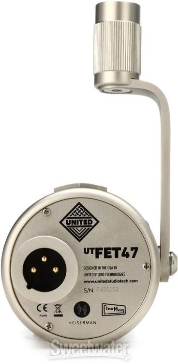 The Authoritative Sound of a Legendary Mic You've heard it on countless hit records. We're talking about the legendary FET47. Its ability to capture the full power and sheer weight of kick drums, upright bass, and rock vocals remains unchallenged to this day. An original FET47 — if you could find one in working condition — would cost you a small fortune. Sweetwater is excited to present the United Studio Technologies UT FET47, a meticulous re-creation of the classic FET47, quality crafted in the USA with fanatical attention to detail. Now with the UT FET47 in your mic locker, you can have the authoritative voice of this coveted mic at a price that will leave room for a nice preamp!Heiserman Designed Capsule For the UT FET47, United Studio Technologies worked with renowned capsule designer Eric Heiserman to develop a fresh take on the classic German K47 capsule design. Eric collaborated Sweetwater is an Authorized United Studio Technologies Dealer Genuine New Item Sweetwater's 2-year warranty United Studio Technologies UT FET47 Large-diaphragm FET Condenser Microphone Large-diaphragm FET Condenser Microphone with 10dB Pad and 75Hz Highpass Filter The Authoritative Sound of a Legendary Mic You've heard it on countless hit records. We're talking about the legendary FET47. Its ability to capture the full power and sheer weight of kick drums, upright bass, and rock vocals remains unchallenged to this day. An original FET47 — if you could find one in working condition — would cost you a small fortune. Sweetwater is excited to present the United Studio Technologies UT FET47, a meticulous re-creation of the classic FET47, quality crafted in the USA with fanatical attention to detail. Now with the UT FET47 in your mic locker, you can have the authoritative voice of this coveted mic at a price that will leave room for a nice preamp! Heiserman Designed Capsule For the UT FET47, United Studio Technologies worked with renowned capsule designer Eric Heiserman to develop a fresh take on the classic German K47 capsule design. Eric collaborated with the United team and their capsule manufacturer to develop a new capsule from the ground up. The result is a capsule that sounds open, articulate, and three dimensional — arguably more so than the original. The design process involved the analysis of everything from the sourced Mylar to the screw threads; but after many iterations — and subjective listening tests, the finalized HZ Series capsule design delivered everything the capsule team had hoped for. And then some. Stringent Quality Control While many of the HZ Series design elements remain trade secrets, one superior attribute the team can share is the use of dual matched backplates. The HZ Series matching process enables far more consistent and accurate quality from side-to-side and capsule-to-capsule. The HZ Series capsule is manufactured in small batches, with stringent quality control, instrument testing, and subjective listening tests. Custom Cinemag Transformer United Studio Technologies auditioned many re-creations of the original FET47 German transformer, but quickly settled on an exceptional design from Cinemag Transformers of California. Their take on this classic, critical component is truly a work of art: a large, beefy transformer made from a striped core of interleaved sets of high nickel and steel laminations and wound to original specs. Cinemag‘s “humbucking” design delivers clean, quiet operation in any and all conditions. While United could have used smaller or less pricey transformer; compromise was never an option. The Cinemag transformer truly makes a huge difference in delivering the authoritative sound of a legend. United Studio Technologies UT FET47 Large-diaphragm Condenser Microphone Features: Faithful reproduction of the legendary vintage German studio microphone Heiserman designed HZ Series K47 capsule Custom wound, large, striped-core, American made, Cinemag transformer Vintage polystyrene capacitors, and NOS (new old stock) FETs No electrolytic capacitors, over-spec’d components - it will last a lifetime Absolute workhorse; a desert-island microphone for professional studios and voiceover work Clean, clear, articulate, open sound; low noise and high headroom and dynamic range Capsule: H Series 34mm all-brass dual backplate K47 Diaphragm: Dual-diaphragm, 6 micron, 24K gold-sputtered Mylar (PET film) Power Supply Ground: +48v Phantom Power (via XLR) Frequency response: 20Hz–20kHz Polar Pattern: Cardioid SPL: 136dB (145dB with pad) @ .5% THD Output Impedance: 160 ohms Amplifer Type: Field Effect Transistor Self noise Output: <10dB (no pad, no HPF) Body: Nickel electroplated, solid milled brass Highpass filter: 75Hz Pad: 10dB Connector: 24k gold-plated XLR Mount: Self-contained stand swivel mount adapter Quality crafted in the USA Specification Detail Microphone Type FET Condenser Polar Pattern Cardioid Diaphragm Size Dual Diaphragm, 1.33" Brass Backplate Frequency Response 20Hz-20kHz Max SPL 136 dB SPL Output Impedance 160 ohms Low Cut Filter 75Hz Pads -10dB Connector XLR Color Milled Brass Body with Nickel Plating Power Source 48V phantom power Dimensions 8.2" x 2.7" Included Accessories Stand Adapter RETURN INFORMATION We want you to be completely happy with your purchase from Sweetwater. If you are not satisfied with your product, you may return it for a refund of the purchase price within 30 days. If your purchase was eligible for Free Shipping, the shipping cost will be deducted from your credit or refund. Returns must be in the complete and original packaging with all accessories and complete documentation (Owner's Manual, warranty card, quick start guides, etc.), show no signs of wear or use, and include a Return Authorization number or be subject to a restocking fee.
