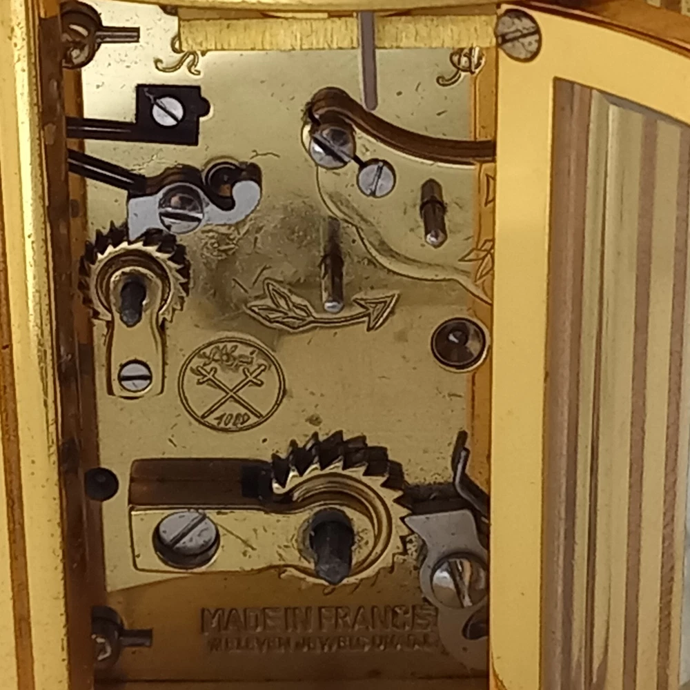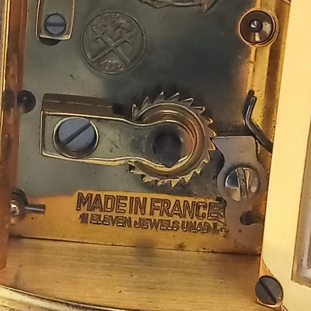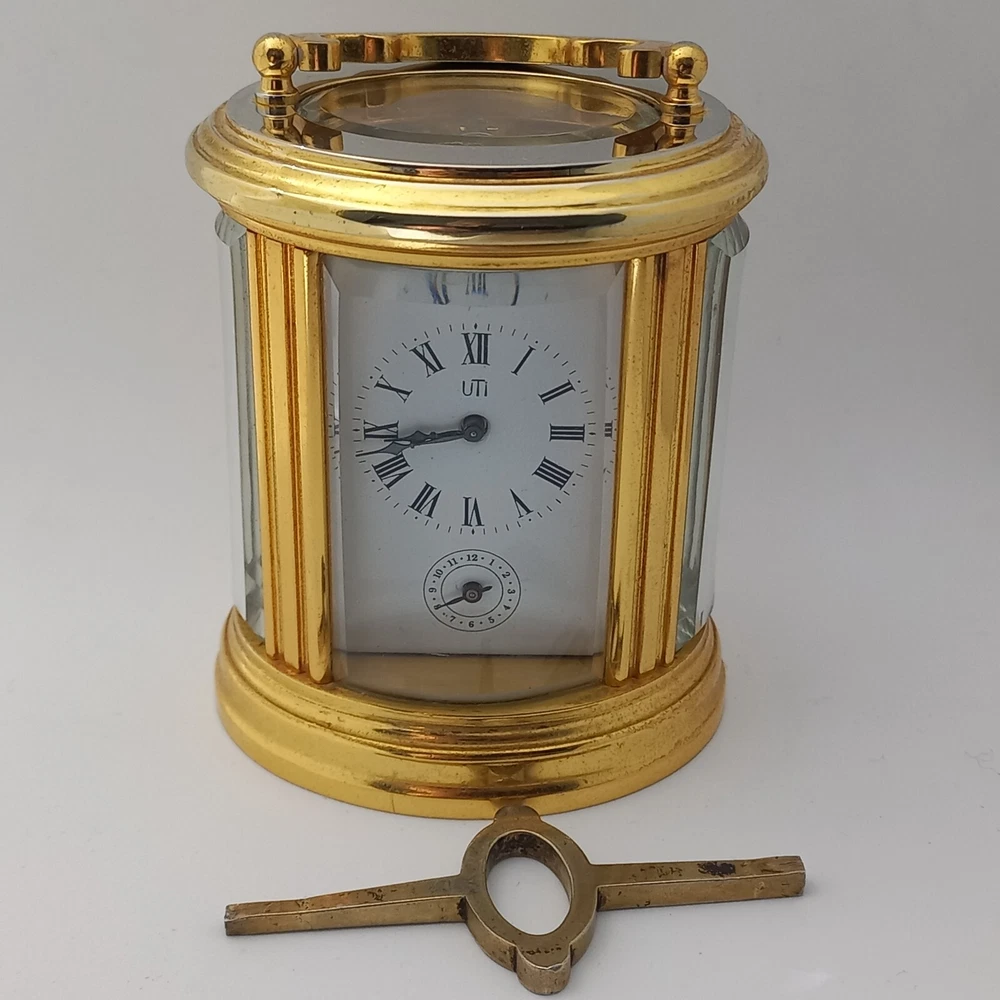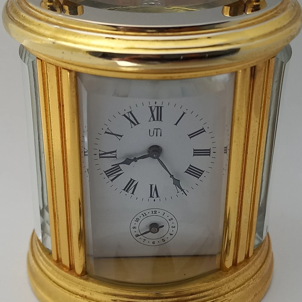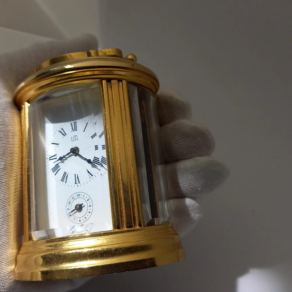 UTI L'EPEE 1839 For sale UTI oval French miniature carriage alarm 8-day clock, white dial, with black scotia hands, movement 11 jewels, Made in France signed "L'Epee 1839". B ell under the base. Measurements: Height 8 cm without the handle, Depth 5 cm Width 6.2 cm. The gold tone case is in very good condition. The original beveled glass has no scratches. The white dial with black hands is also in great shape. The watch works and gives very good time. The watch comes with its original double-headed key. As for the Alarm, it requires some maintenance. I'm not sure what the exact problem is, but when you try to wind it, it starts working on its own. This indicates that it requires repair. Being sold as is as found condition. We combine shipping. Terms & Conditions We are dealing with pre-owned/ used/ vintage timepieces. Our items are 100% authentic. All photos are taken by us. Buyers will receive the same item that is shown in the photos. We provide a full description and many photos of the item and we expect you to contact us for extra details. Shipping We ship international expedited shipping via DHL with tracking. Phone number is required by DHL for shipping. We ship from Lebanon. We combine shipping. We are not affiliated in any way with any of the presented brands. Buyer will have to pay any custom fees for releasing the item in their own country, this will effect delivery times. Check the custom fees in your country before you buy.