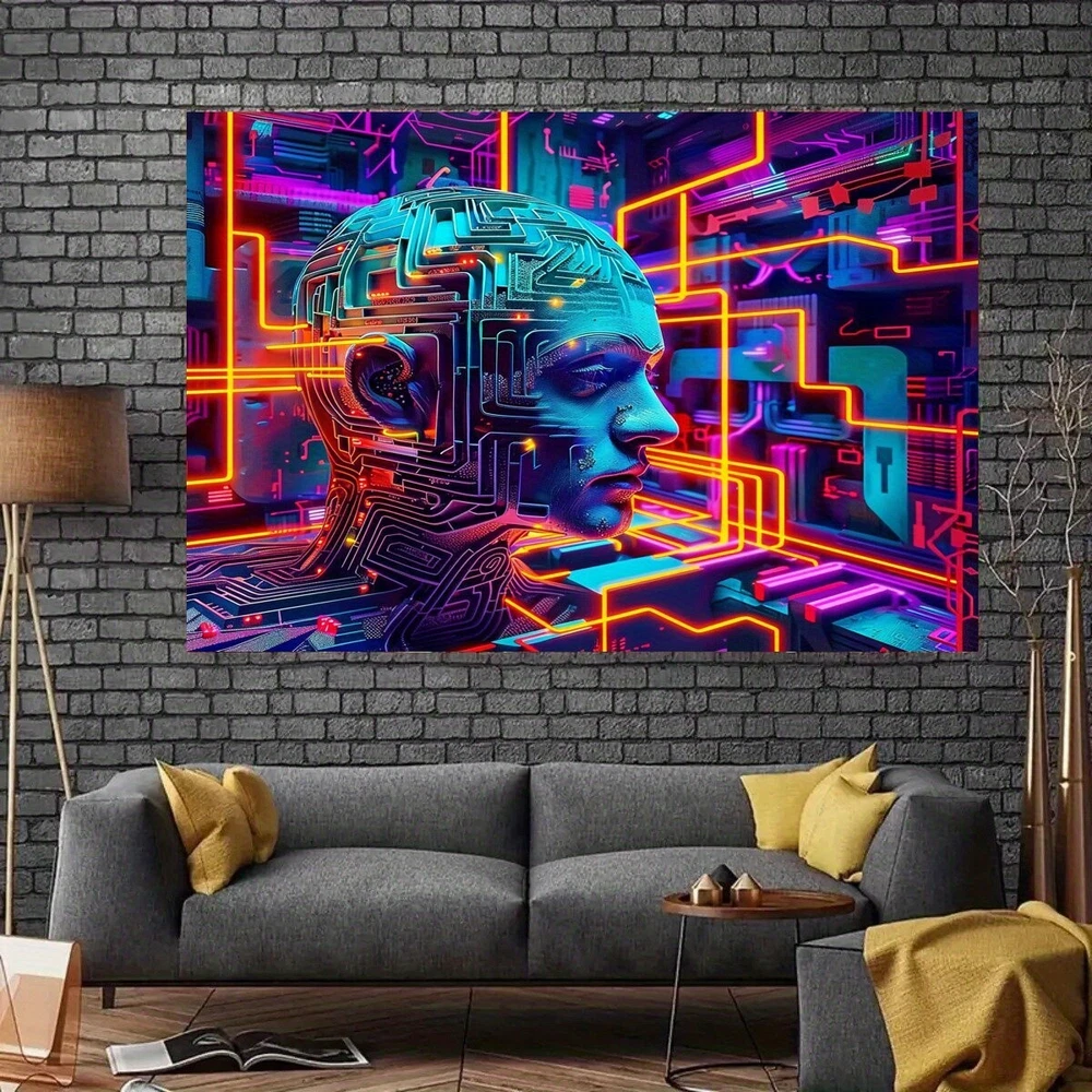 UV Reactive Geometric Tapestry - Fluorescent Blacklight Wall Art for Parties & F