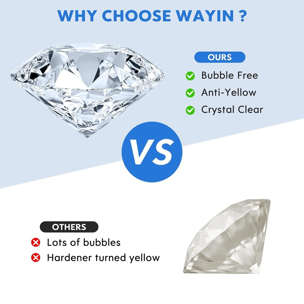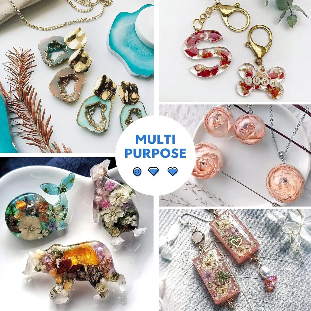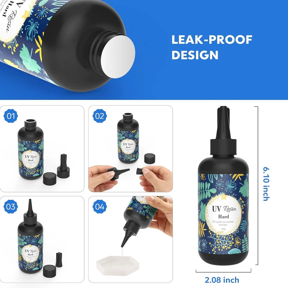 UV Resin Ultraviolet Epoxy Resin Clear Crystal Hard Glue Solar Cure Sunlight Act FEATURES AUTHORITY & SAFETY : UV resin is the largest manufacturer in Southeast Asia and has the most advanced technical support on the market. The new upgraded UV Resin Eco series adopts high quality raw materials, after long-term testing and deployment to create a healthier and lowest odor resin, will not produce toxic and harmful volatiles, no VOC, no pollution to the ambient air and has ๐ฆ๐๐ฆ & ๐๐ฃ๐ ๐๐ฅ๐๐ ๐ฅ๐ข๐๐ฆ & ๐ ๐ฆ๐๐ฆ safety certification. It's more for your money FAST CURE - SAVE YOUR TIME : Our clear UV resin is ready to use and can quick cure with UV Torch (36W / only 365 - 395nm wave length) in minutes. Please ensure that your model is clean, no oil and other foreign substances before use and you are using transparent molds. According to the thickness of the mold, both two sides(front side and back side) curing for 1 ~ 2 minute. You will get the perfect UV epoxy resin crafts and make you incredible and blow others away PREMIUM - WATERPROOF & HIGH HARDNESS : Ultraviolet UV epoxy resin cures crystal clear, high gloss, glassy and waterproof finish the hardness can be as high as D80, which is anti-scratch, anti-stain, low shrinkage and yellowing resistance. And its self leveling and self degassing characteristics help your crafting much more easier WIDELY USED - DO NOT MAKE LARGE PROJECT : The Crystal clear UV glue can be used for DIY jewelry making such as pins, magnets, keychains,earrings, bracelets, ring, pendant ect. Casting and coating, cast figurines, encapsulate objects etc. It can also be mixed with mica powder, colorants, glitter to get colorful finishes. NOTE : The darker color added, the longer UV lamp curing time AFTER-SALES SERVICE : RISK-FREE PURCHASE. Drop us an email should you have ANY question regarding our UV resin kit or service and we'd be most glad to help Product Description Do you wanna enjoy the fun of creative resin DIY life? Do you search for low cost and high quality UV resin for your unique resin craft designs? UV Resin is a cool way to show your creativity! Try to do some unique and special resin crafts with your creativity and imagination. It will be a special and meaningful gift for your family, children, friends as well. UV LED / Torch Lamp๏ผ24~80W only 365 - 395nm wavelength๏ผ: 1~3 minutes Top side curing for 30s ~ 90s Bottom side curing for 30s ~ 60s Direct Sun (Sunny Day) : 10-25 minutes Top side curing for 5~15 min Bottom side curing for 5~10 min Direct Sun (Cloudy Day) : 30-60 minutes Top side curing for 20~40 min Bottom side curing for 10~20 min Please ensure that your model is clean, oil, and other foreign substances before use and you are using transparent molds. According to the thickness of the mold, UV light curing, which lasts 1-3 minutes, should be utilized on both the bottom and top sides. So see to it turn upside down to make it an ideal crafts. It'll be tacky after only curing for a few minutes, That's since UV resins harden fast but take some time to fully cure. Just stick it in the sun or under your lamp for 15+ minutes to make sure it was completely dry. No sticky residue either, and it turns more and more clear after a while. You will get much fun and satisfaction of designing what you want. The resin does have a slight odor before curing but it is harmless and will completely disappear after curing. However, even so wear a respirator and gloves because many people who enjoyed this hobby had to quit because of developing allergies from repeated contact with the resin on their skin of breathing fumes. Main Features๏ผ Type: Clear and Hard UV Resin Color: Transparent Net Weight: 200g/7.06oz Package Included : - 1 x 200g UV Resin - 1 x Nozzle WHAT ABOUT OUR RESIN: โ Japanese technology โ Non-Toxic materials โ No shrinkage โ No tackiness โNot yellowing โSuper Transparency โ Self Leveling โ Water Resistant Why choose our UV Resin? Made with high quality ingredients, good transparency and no impurities; has no shrinkage and no yellowing issue, self-leveling, and self degassing characteristics providing a top quality protective coat that is UV. Precautions for uv resin jewelry kit: 1. The best power of UV/LED lamp is 36W, If you use other power, In most cases, the work may be sticky. But it can also cure totally if you put it in the strong sunlight for a long time. 2. Please ensure that your molds are all clean, free from oil contamination and other dirts and keeps them transparent. 3. Strong sunlight would be of paramount help to perfect curing, but warmly remind that do not block it under glasses, which prevent the UV rays from sticking. 4. The curing time needs to be extended if you mix with designed for UV resin pigment dye, mica powder, or alcohol ink. 5. It is not recommended to use UV resin to make large objects. 6. After completing DIY work, please keep its surface away from any human touch to avoid skin- burn danger and fingerprints ,we suggest 5-7 minutes on cooling down before taking off the module. 7. There will be some odor when using UV resin, Please use this product in a ventilated environment or wearing a mask, but it will disappear after curing. Higher Quality - Crystal Clear UV resin NO shrinking, NO warping, and Anti-yellowing. We suggest you doing it in thin layers or curing it slowly (weak light &For thickness of 0.3 in) that if the layer is too thick. UV Resin can be mixed with UV resin dye, glitter, sequins, colorants to create more brilliant colors. It can also be mixed with mica powder, colorants, glitter to get colorful finishes, If you darken it a lot with alcohol ink it will need a lot more time to cure. Non-Toxic Crystal Clear UV Resin We use 100% safe materials to make UV resin, there is no strong odor and smell will disappear completely after curing, which is safe and will not damage the body. Our hard type craft resin is made of high-quality, 
