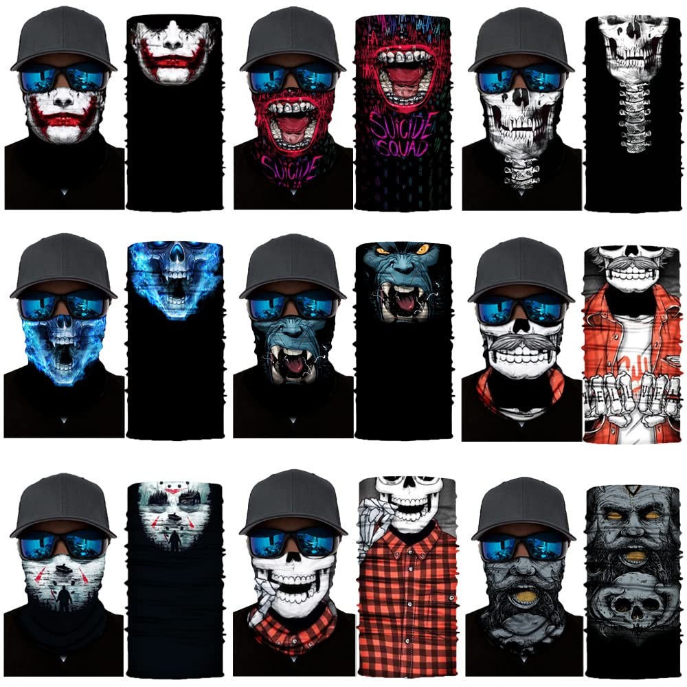 【COMFORTABLE, FORM-FITTING MICROFIBER】Made with soft, breathable polyester microfiber. Our face shields are stretchy and seamless.Length x Width(Flat)=19.69x9.84(Inch)=50x25(CM). Fit to be worn comfortably as bandanas for men, headbands for women, headwear, workout headband for women, head wraps for women, or sweat bands. Cover half of your face and head or all of it. Our ultra-plush microfiber is seamless, flexible, and stylish, and still wicks away moisture, sweat, and odors. 【MULTI-PURPOSE Neck Gaiter】The Skull Gator Mask is designed for men and women who live active lifestyles, which is why it can be worn in different ways, including a face shield, wristband, full hood, headband,neck gaitor, sacarf bandana, doo rag, balaclava, face mask, beanie, pony tail, sahariane and pirate and more! 【TACKLE EVERY ADVENTURE HEAD-ON】Our face shield provides sun protection and wicks away moisture faster. Our face shields add an extra layer of warmth for your head, hand and neck in the cold. Our face masks also keep your ears, nose, and mouth clean from breathing dust.Wear it as a balaclava in the desert to protect your face from dirt and dust, wear it as a do-rag to keep your hair out of your eyes on a windy day, or wear it as a headband while hiking in Utah to keep sweat out of your eyes. 【DURABLE AND COOL DESIGN】Look awesome and stay protected during fishing, running, cycling, motorcycle, yoga, hiking, walking, or hunting. Makes a great accessory for Halloween, 4th of July, Memorial Day, Labor Day, Christimas, holiday and costume parties. Face shields are extremely durable and very easy to wash after using. Perfect to use as rave and festival accessories too! 【RISK FREE WITH 3-MONTH AFTER-SALES SERVICE】We want you to love our headbands as much as we do. Customer satisfaction is our number-one priority, and we like to ensure that all our customers are satisfied after purchasing one of our products. If you are not satisfied with the Headband, we will try our best to fix your problems. Order now with confidence!