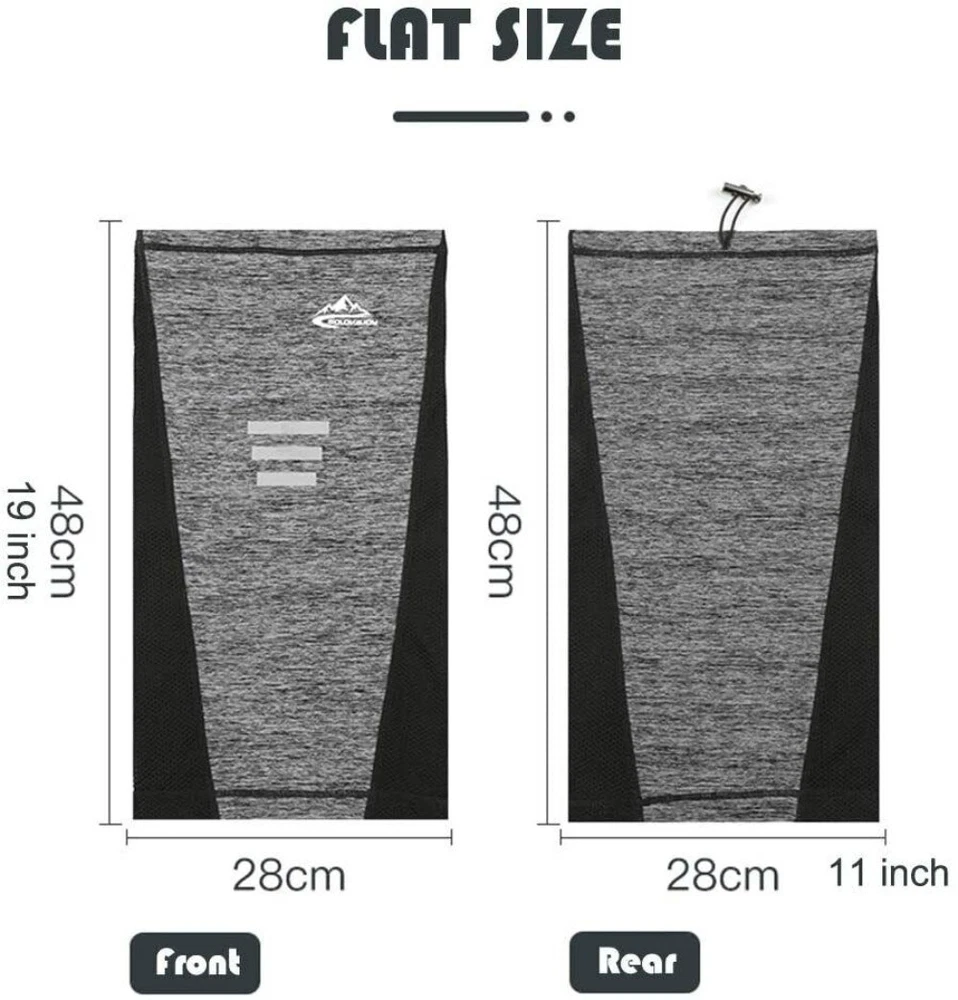 1. Breathable and UV Protection: Professional fabrics can effectively protect more than 95% of UV rays. The quick-drying polyester fiber and mesh on the side are comfortable. 2. Fresh seamless silk fabric, don't worry about sweating. The seamless hot pressing process avoids the problem of line opening and protects your face and neck from ultraviolet rays, dust, sand, and wind during fishing, hiking, riding, running, etc. 3. Unique Design: The reflective strip improves the safety of riding at night. The lacing can adjust the tension and help better fixation. The natural size is 18.9" x 11.0". The highly elastic circumference is about 50-24 inches. 4. Quality Assurance: If you have any questions, please contact us, we are happy to solve them within 24 hours. For your unsatisfied purchase, we are happy to replace it with a new one or give a full refund. 5. Multifunctional Use: Including leggings, masks, turbans, balaclavas, beanies, wristbands, bandana. 6. Sun protection, with cooling effect, etc. Size: 480x280mm/18.9x11.02in, One Size (Elastic) Weight: 60g Application: Cycling Sports/Fitness/Fishing Package Include: 1x Neck Gaiter Bandana