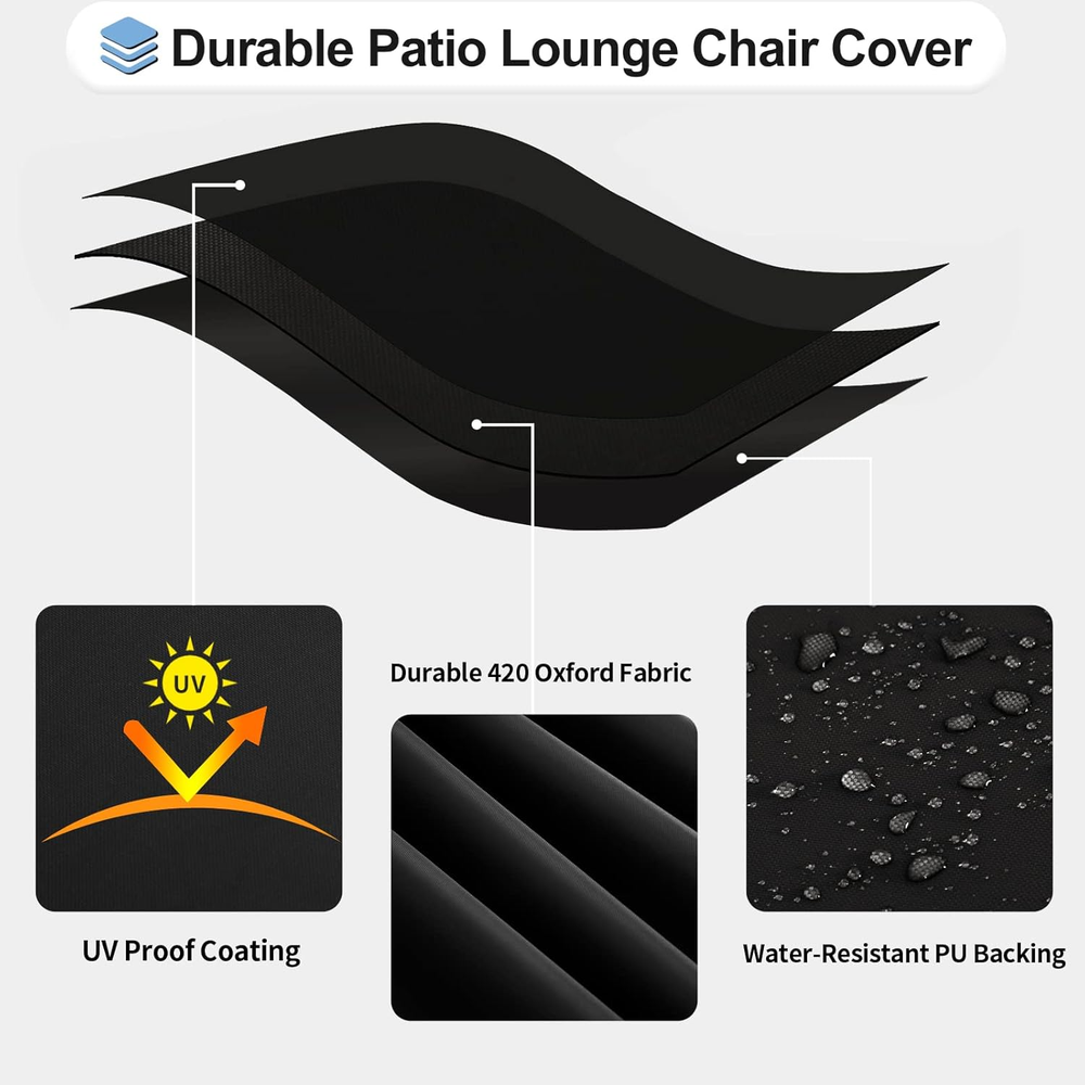Store New Arrivals Add to Favorite View Feedback Contact Outdoor Waterproof Patio Chaise Lounge Chair Cover - UV Resistant Lounger Covers Heavy Duty Weatherproof Patio Sofa Furniture Covers, 2 Packs, 84Wx32Dx32H Inches, Black Description Closure Type Drawstring Color Black Country of Origin China Product Dimensions 84 x 32 x 32 inches Material Oxford+Polyurethane Coating Water Resistance Level Waterproof Item Weight 4.77 pounds Strap Type Drawstring Size 2 Pack-84Wx32Dx32H in Package Contents: Each package includes 2 black chaise lounge covers with 1 storage bag, measuring 84Wx32Dx32H inches. Please measure your chaise lounge before purchasing. 420D Oxford Fabric, UV-Proof, Waterproof Coating Lounge Chair Cover: 420D oxford material with UV-resistant and waterproof coating, this lounger cover can be used for a long time and any seasons, shielding your outdoor patio chaise lounge from UV rays and terrible weather like heavy rain, big snow, strong sunlight and so on. Windproof, Easy To Use Sturdy with Padded Handles, Adjustable Buckles And Drawcords: OutdoorLines patio lounge chair cover is designed with hem drawcords which are easy to adjust securely. Adaptable buckles keep it in place and air vents reduce water accumulation. With 2 large reinforced padded handles, our chaise lounge cover is easy to install and remove. Universal Size And Colors Perfect for Most Patio Chaise Lounge Uses: We offer the size of 78Wx35.5Dx33H/68Wx30Dx30H/84Wx32Dx32H inches with black, gray and camel colors to satisfy your needs, offering an exquisite look while protecting your outdoor lounge chairs. Easy to Care: Machine Washable with cold water by hand. Tumble Dry At Low Heat. DO NOT bleach. Low Temperature Iron. Product Description 1 Weatherproof Fabric 2 Easy to Use 3 Ventilation System 4 Flexible Design 5 Stand Well in High Wind 1 Sun Blocking 2 Waterproof Design 3 Size Selection 4 Easy to Care Outdoor Patio Furniture Cover Collection Add to Cart Add to Cart Add to Cart Add to Cart Add to Cart Add to Cart Customer Reviews 4.4 out of 5 stars 563 4.6 out of 5 stars 318 4.6 out of 5 stars 454 4.3 out of 5 stars 1,433 4.7 out of 5 stars 257 4.5 out of 5 stars 751 Price $25.99 $ 25 . 99 $19.59 $ 19 . 59 $19.99 $ 19 . 99 $26.49 $ 26 . 49 $13.79 $ 13 . 79 $15.99 $ 15 . 99 Durable Fabric 420D Oxford with PU Coating 420D Oxford with PU Coating 420D Oxford with PU Coating 420D Oxford with PU Coating 420D Oxford with PU Coating 420D Oxford with PU Coating Multifunction Weatherproof & UV Resistant Weatherproof & UV Resistant Weatherproof & UV Resistant Weatherproof & UV Resistant Weatherproof & UV Resistant Weatherproof & UV Resistant Color Options Black, Gray, Camel Black, Gray, Camel Black, Gray, Camel Black, Gray, Camel Black, Gray, Camel Black, Gray, Camel Size Selections 3 Sizes-1/2 Packs 4 Sizes 6 Sizes-1/2 Packs Rectangle, Round, Square 7 Sizes 6 Sizes Widespread Application Patio, Garden, Poolside Patio, Garden, Poolside Patio, Garden, Poolside Patio, Garden, Poolside Patio, Garden, Poolside Patio, Garden, Poolside ABOUT US We offer the best prices around on high quality products. Our E-store includes media such as books, movies, music and games while offering electronics, toys, sporting apparel, clothing, tools, general home, garden items and more. SHIPPING We are always working hard to ensure your package arrives as soon as possible. Please understand that some factors like weather, high postal traffic, and the performance of shipping companies are outside of our control. We offer free shipping to the lower 48 states and ship within 2 business days of payment, usually sooner. We do not accept P.O. Boxes. Please provide a physical address. For shipping outside of the continental USA, we only use eBay's Global Shipping Program.The item is shipped to KY and then sent to the rest of the world. International customers are responsible for all duties and taxes. Continue to check out in order to calculate costs for shipping the item to your country. Messages regarding eBay's Global Shipping Program MUST be directed at eBay EXCLUSIVELY. RETURNS We offer a 30-Day Return Policy on items which you are not completely satisfied with. You have the option for a full-refund or an exchange of the item. No returns are available on items shipped outside of the USA. PAYMENT We accept PayPal. CONTACT US This page content is yet to come Please ad us to your favorite seller and visit again later Thank You CUSTOMER SATISFACTION We try our very best to make sure every customer is completely satisfied. If there's a problem, message us! We're happy to help. WE ACCEPT Copyright © 2021 AutoDS. | All Rights Reserved