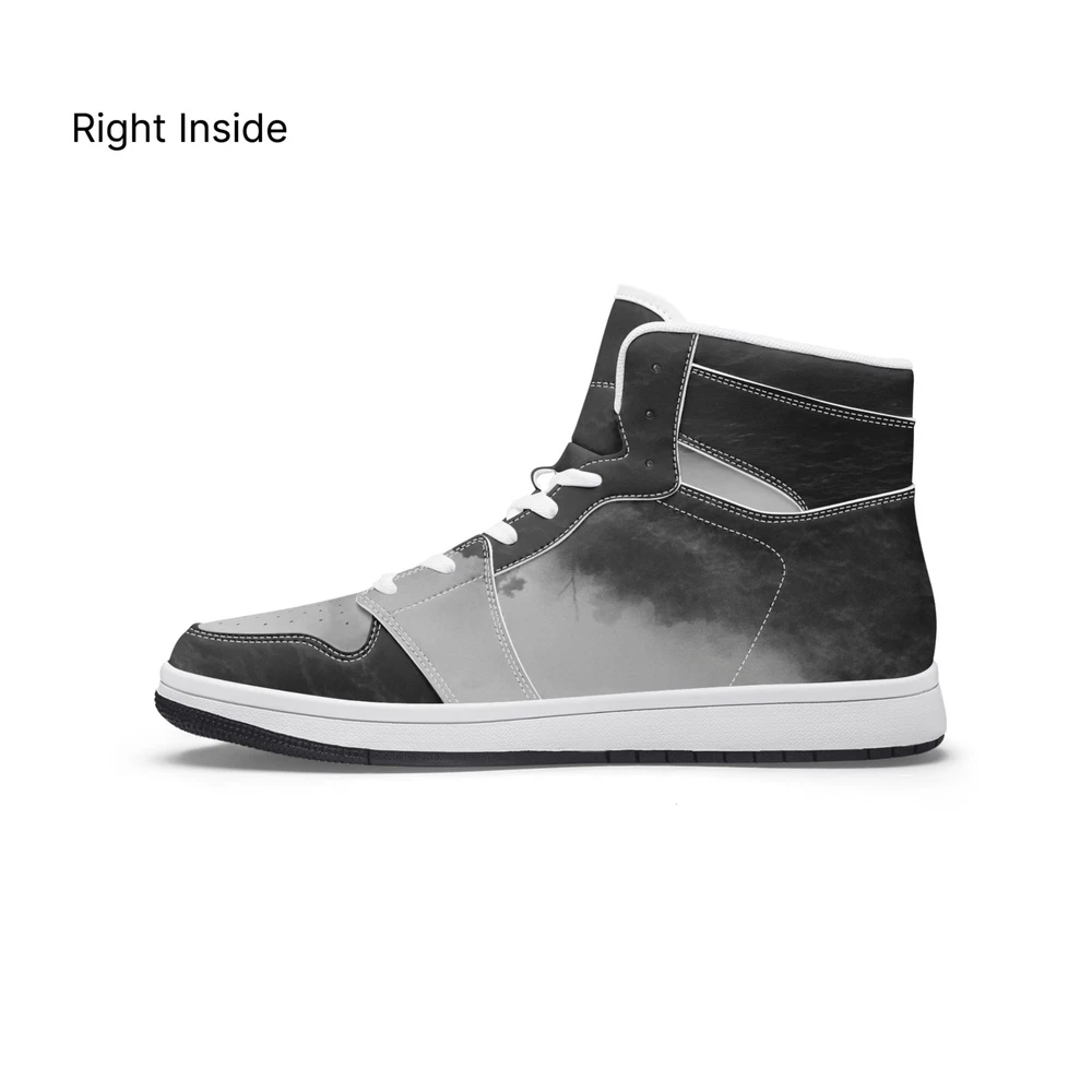 Crafted for the modern man, the UVelsi Bravo 001 sneakers blend style with performance. These black high-top sneakers are a testament to craftsmanship, featuring a durable faux leather upper and a comfortable leather insole. With a range of features including adjustable lacing, cushioned fabric lining, and a robust rubber outsole, these shoes are designed to support and enhance your every step. Whether you're hitting the gym, running errands, or heading out for a night on the town, these sneakers adapt to your lifestyle. The sleek, solid pattern and versatile high-top design make them a great addition to any outfit. Plus, the convenience of being handmade and customizable ensures that these sneakers are as unique as you are. • Designed For Unisex. • Soft EVA padded insoles. • Leather upper with mesh lining construction. • EVA outsole for traction and exceptional durability.