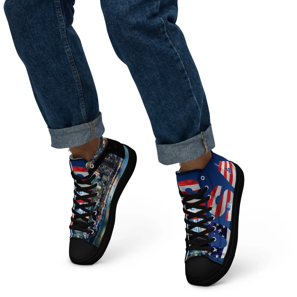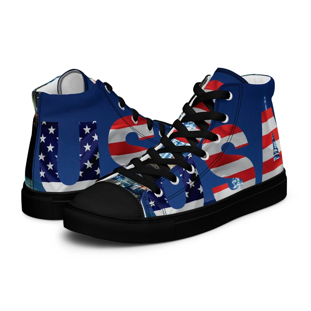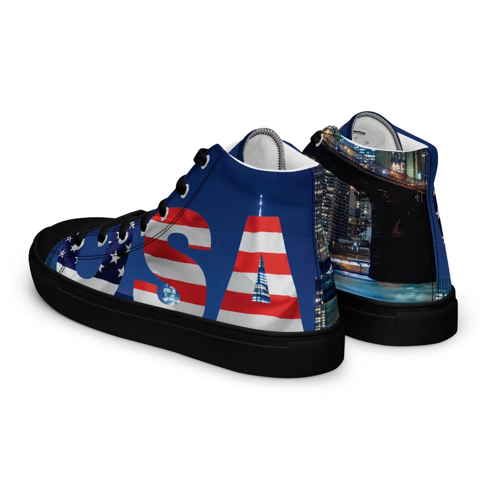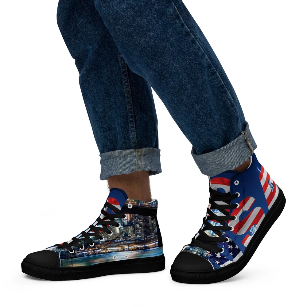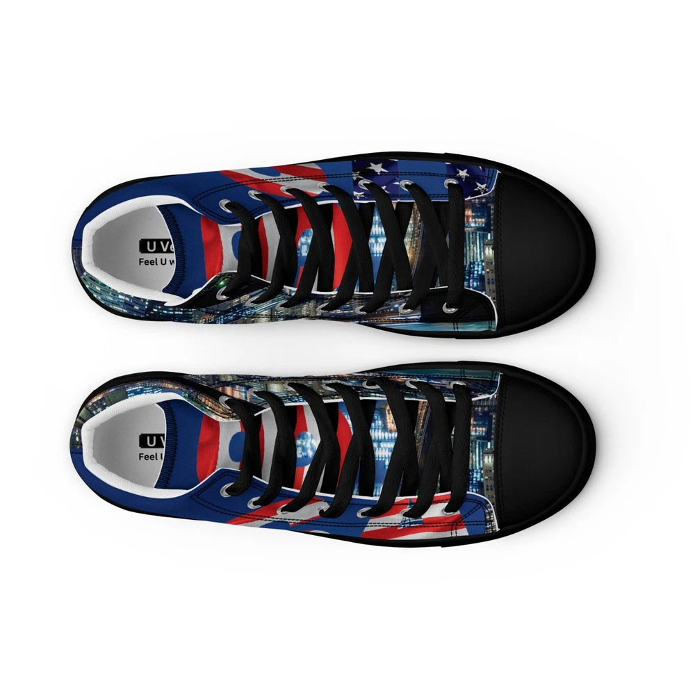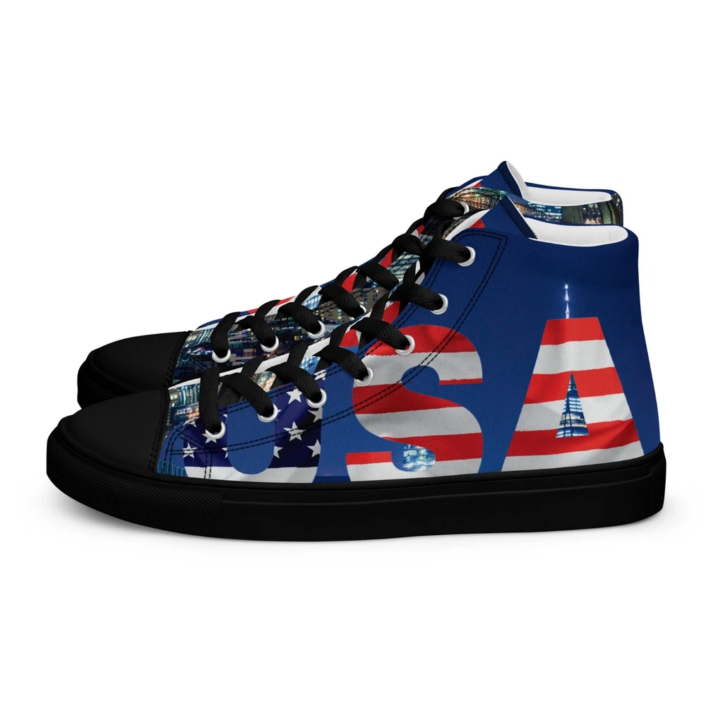Elevate your footwear game with the UVelsi UiLux USA Edition Sneakers. Crafted with a sleek black canvas upper and a durable rubber outsole, these high-top sneakers offer both style and comfort. Designed for the active man, they feature a padded insole with faux fur lining to keep your feet warm and cozy in any season. With a versatile lace-up closure, these shoes are made for a range of occasions, whether you're hitting the gym or just out for a casual stroll. The UVelsi UiLux sneakers are not just about looks; they're built for performance too, with their adjustable steel toe and versatile cleat type suitable for various athletic activities. These lightweight, limited-edition kicks also boast a solid pattern that pairs effortlessly with any outfit. Handmade with care and attention to detail, these sneakers embody the essence of American craftsmanship, making them a standout addition to any collection. Step up your shoe game with the High Top Canvas Shoes. These handmade, trendy shoes are sure to spice up your outfit. Get yours now! • 100% polyester, canvas upper side • Ethylene-vinyl acetate (EVA) rubber outsole • Breathable lining, soft insole • Faux leather toe cap • Padded collar, lace-up front • Soles and laces in matching colors Size guide preview (Imperial) US Men UK Europe Foot Length Japan Outsole Length 8 8 7 41 10 ⅛ 26 11 ⅛ 9 9 8 42.5 10 ½ 27 11 ⅝ 10 10 9 44 10 ¾ 28 12.00 11 11 10 45 11 ¼ 29 12 ⅛ 12 12 11 46.5 11 ¾ 30 12 ¾ 7.5 7.5 6.5 40.5 10.00 25.5 11 ⅛ 8.5 8.5 7.5 42 10 ¼ 26.5 11 ⅜ 9.5 9.5 8.5 43 10 ⅝ 27.5 11 ⅝ 10.5 10.5 9.5 44.5 11.00 28.5 12 ⅛ 11.5 11.5 10.5 46 11 ½ 29.5 12 ½ Size guide preview (Metric) US Men UK Europe Foot Length Japan Outsole Length 8 8 7 41 25.7 26 28.3 9 9 8 42.5 26.7 27 29.5 10 10 9 44 27.3 28 30.5 11 11 10 45 28.6 29 30.8 12 12 11 46.5 29.9 30 32.4 7.5 7.5 6.5 40.5 25.4 25.5 28.3 8.5 8.5 7.5 42 26 26.5 29 9.5 9.5 8.5 43 27 27.5 29.5 10.5 10.5 9.5 44.5 28 28.5 30.8 11.5 11.5 10.5 46 29.2 29.5 31.8