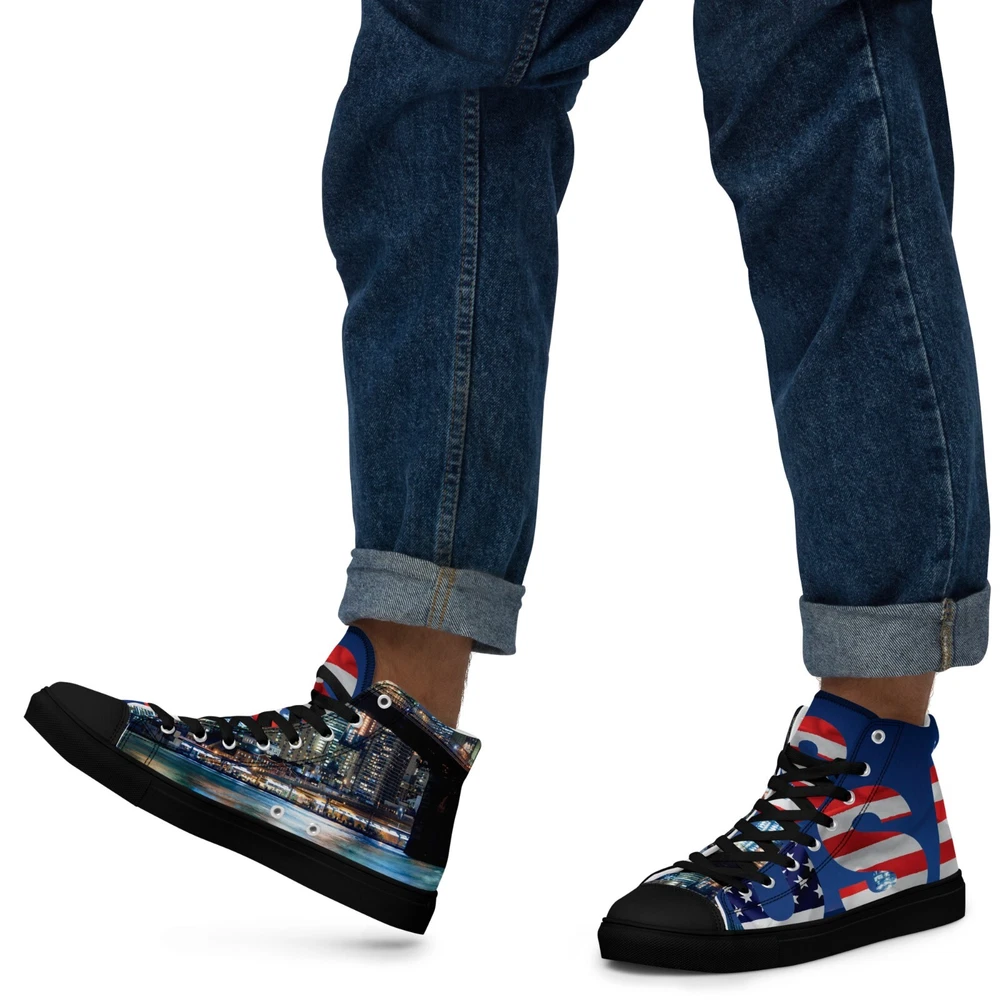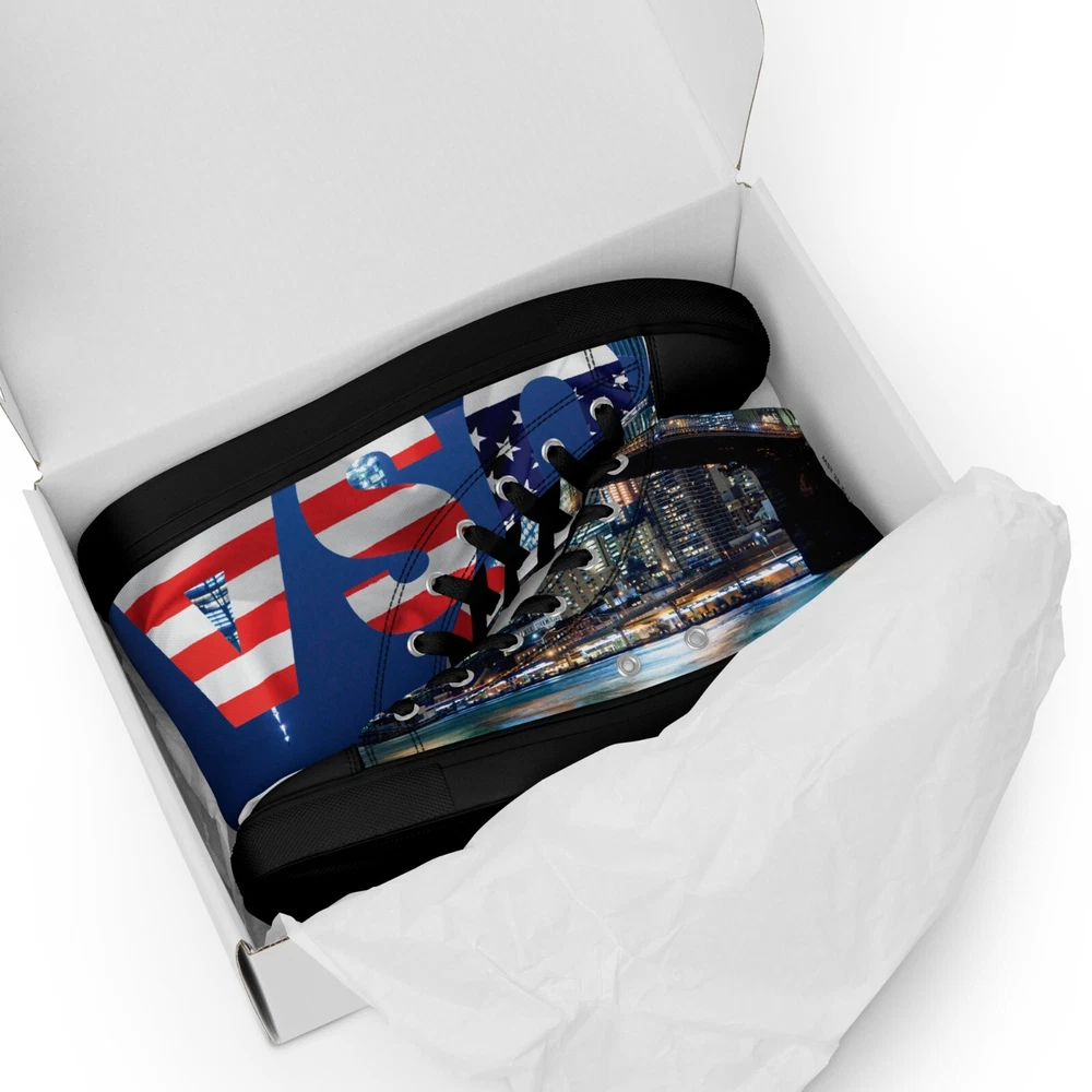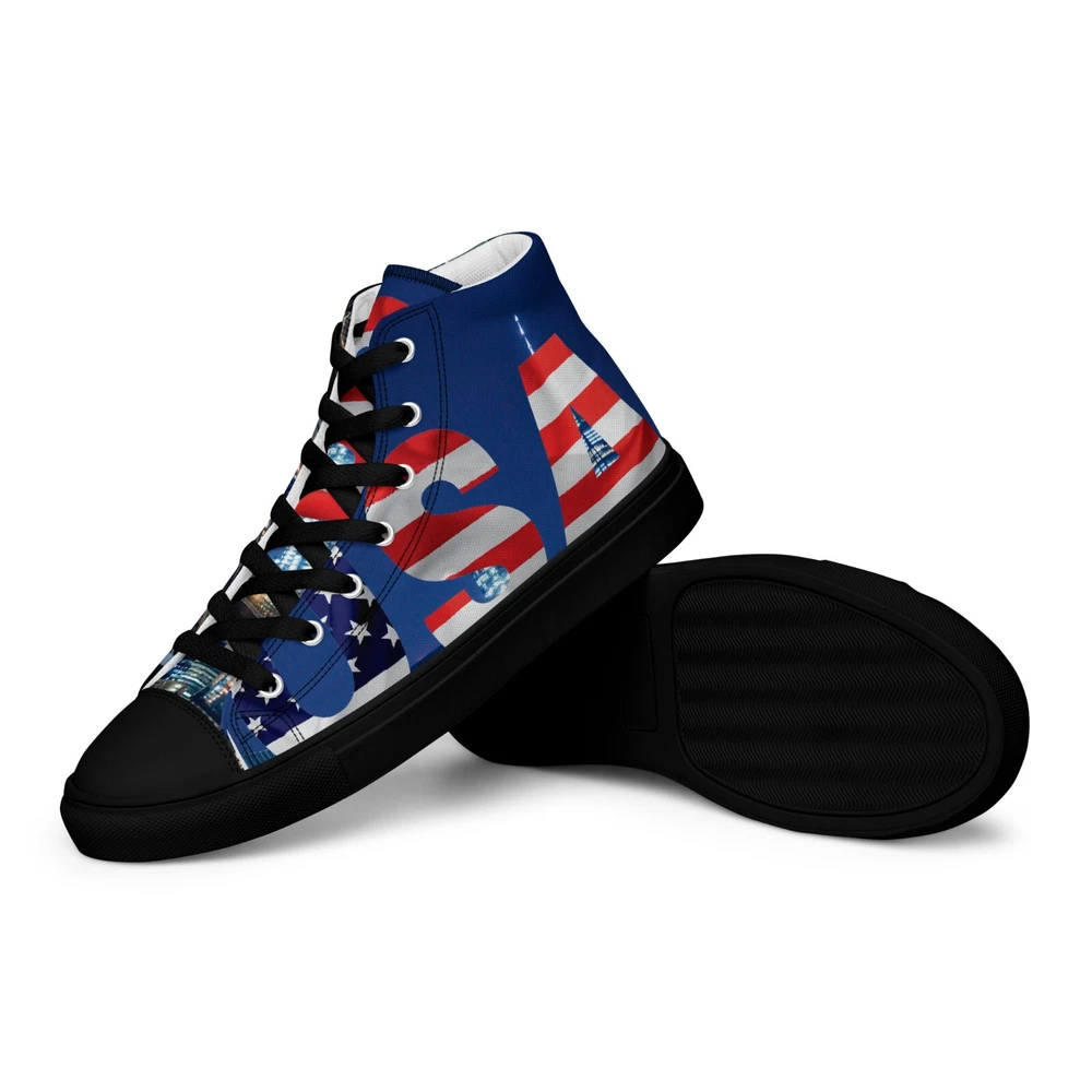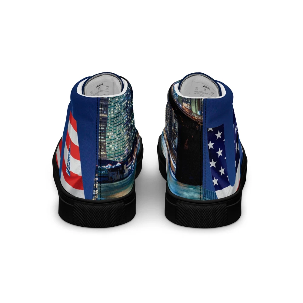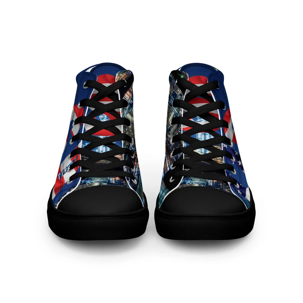 Elevate your footwear game with the UVelsi UiLux USA Edition Sneakers. Crafted with a sleek black canvas upper and a durable rubber outsole, these high-top sneakers offer both style and comfort. Designed for the active man, they feature a padded insole with faux fur lining to keep your feet warm and cozy in any season. With a versatile lace-up closure, these shoes are made for a range of occasions, whether you're hitting the gym or just out for a casual stroll. The UVelsi UiLux sneakers are not just about looks; they're built for performance too, with their adjustable steel toe and versatile cleat type suitable for various athletic activities. These lightweight, limited-edition kicks also boast a solid pattern that pairs effortlessly with any outfit. Handmade with care and attention to detail, these sneakers embody the essence of American craftsmanship, making them a standout addition to any collection. Step up your shoe game with the High Top Canvas Shoes. These handmade, trendy shoes are sure to spice up your outfit. Get yours now! • 100% polyester, canvas upper side • Ethylene-vinyl acetate (EVA) rubber outsole • Breathable lining, soft insole • Faux leather toe cap • Padded collar, lace-up front • Soles and laces in matching colors Size guide preview (Imperial) US Men UK Europe Foot Length Japan Outsole Length 8 8 7 41 10 ⅛ 26 11 ⅛ 9 9 8 42.5 10 ½ 27 11 ⅝ 10 10 9 44 10 ¾ 28 12.00 11 11 10 45 11 ¼ 29 12 ⅛ 12 12 11 46.5 11 ¾ 30 12 ¾ 7.5 7.5 6.5 40.5 10.00 25.5 11 ⅛ 8.5 8.5 7.5 42 10 ¼ 26.5 11 ⅜ 9.5 9.5 8.5 43 10 ⅝ 27.5 11 ⅝ 10.5 10.5 9.5 44.5 11.00 28.5 12 ⅛ 11.5 11.5 10.5 46 11 ½ 29.5 12 ½ Size guide preview (Metric) US Men UK Europe Foot Length Japan Outsole Length 8 8 7 41 25.7 26 28.3 9 9 8 42.5 26.7 27 29.5 10 10 9 44 27.3 28 30.5 11 11 10 45 28.6 29 30.8 12 12 11 46.5 29.9 30 32.4 7.5 7.5 6.5 40.5 25.4 25.5 28.3 8.5 8.5 7.5 42 26 26.5 29 9.5 9.5 8.5 43 27 27.5 29.5 10.5 10.5 9.5 44.5 28 28.5 30.8 11.5 11.5 10.5 46 29.2 29.5 31.8