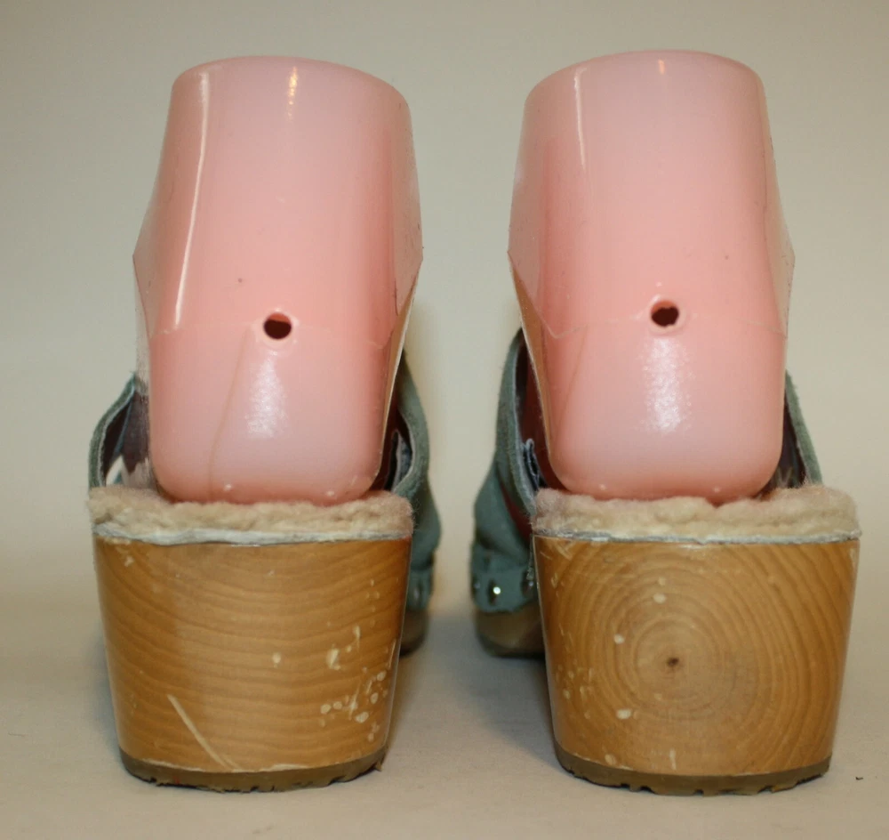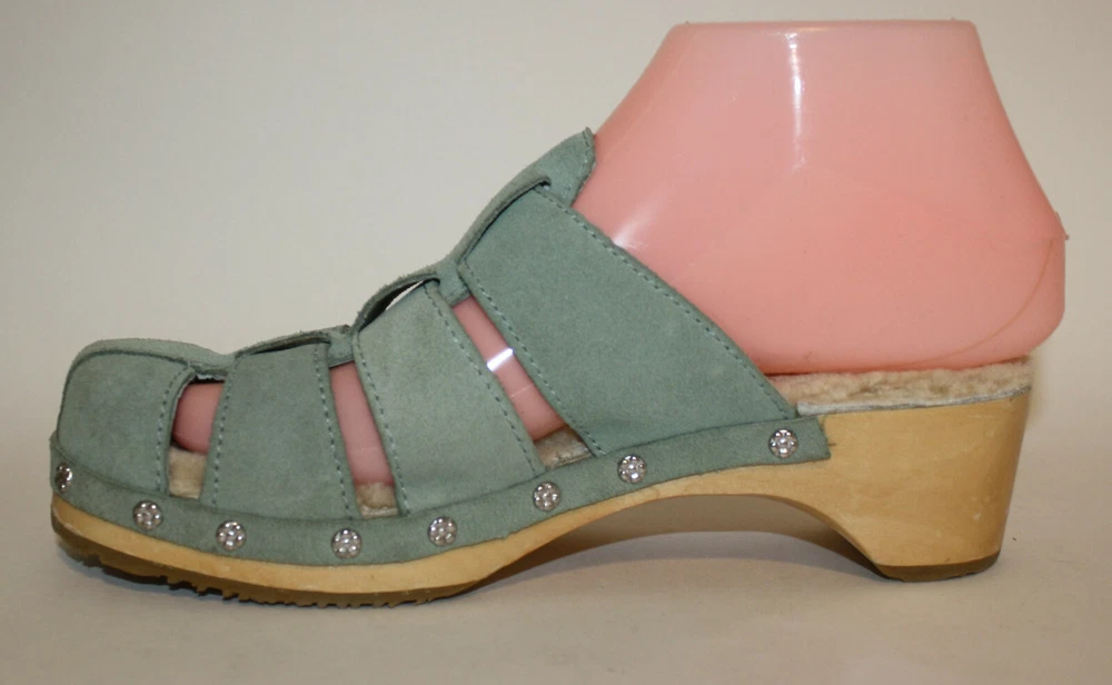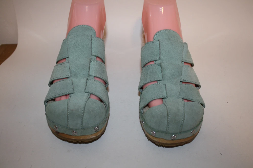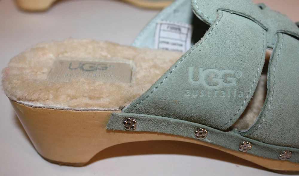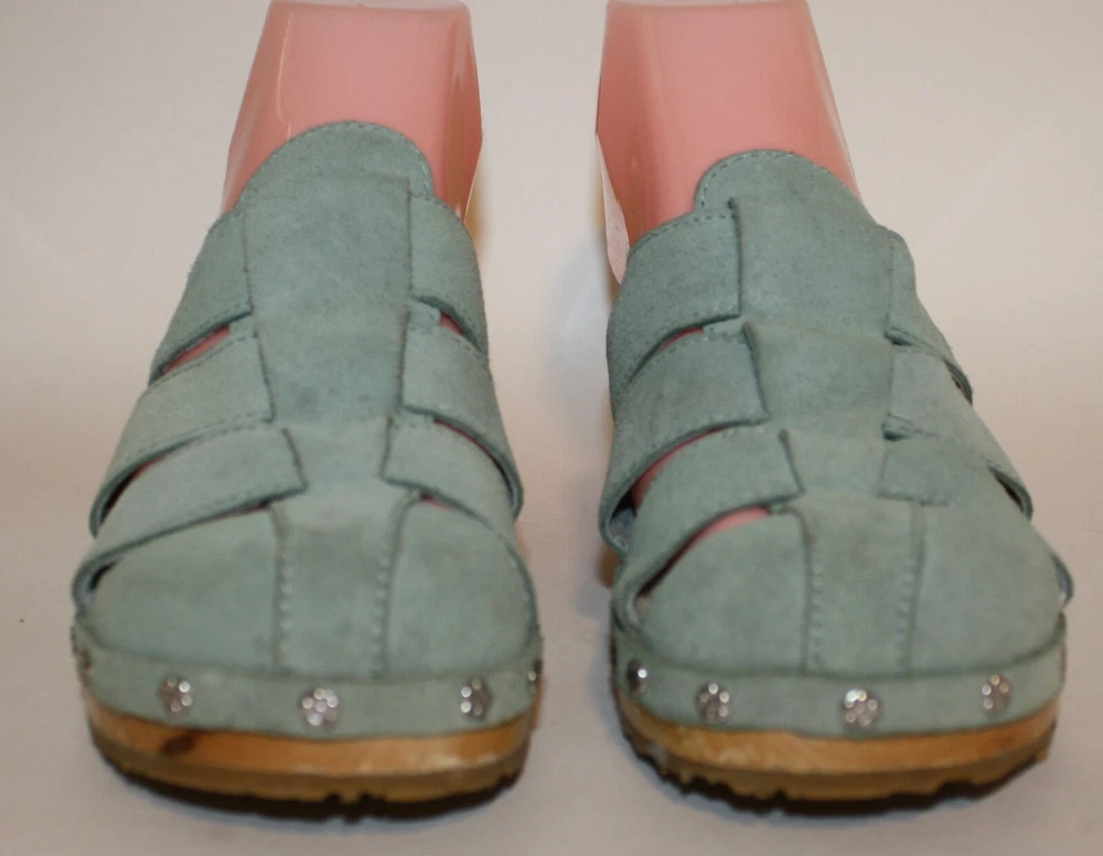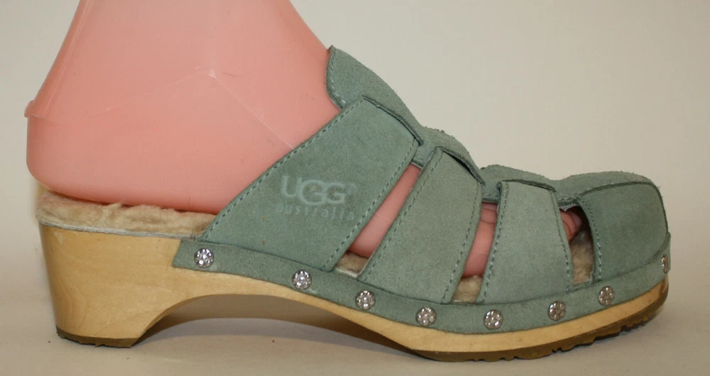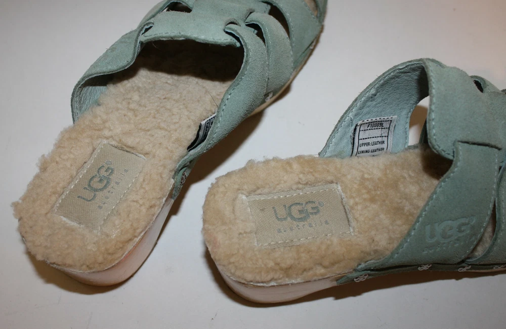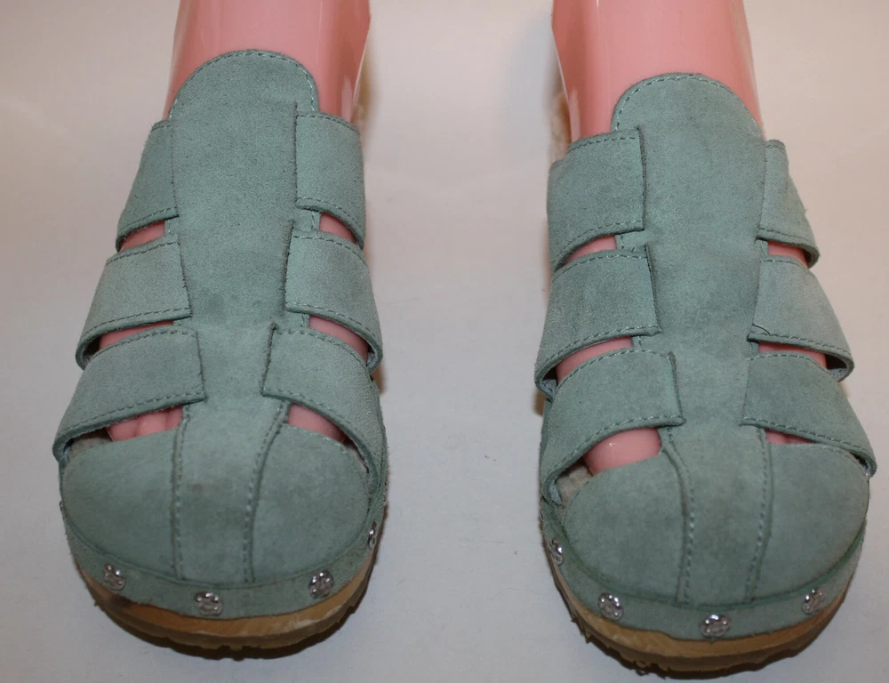 Ugg Authentic Aqua Blue Suede Clogs US 6 F10005L Sheepskin Lined insole In excellent condition; worn a few times I have been selling on ebay since 1999; buy with confidence here!