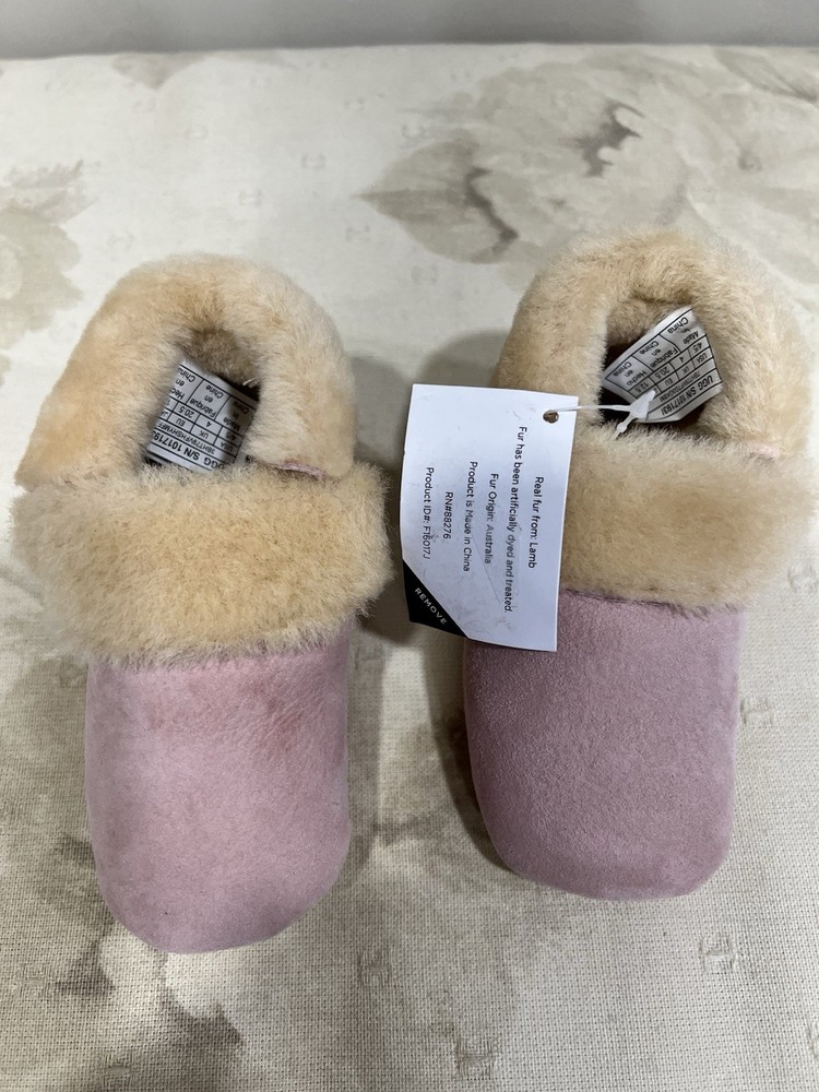 Step into cozy comfort with these UGG Classic pink booties, perfect for your little one's winter wardrobe. Crafted with luxurious suede uppers and soft fur lining, these booties are designed to keep tiny feet warm and snug. The convenient pull-on closure makes them easy to slip on and off, ideal for the hustle and bustle of daily activities. These adorable booties feature a durable suede outsole for steady traction and are accented with the signature UGG logo for a touch of style. With their versatile pink hue, they're a charming addition to any outfit, whether it's for a stroll in the park or just cuddling at home. Size 4 US, 4.5 UK, and 4.5 AU ensure a perfect fit for your baby's growing feet.