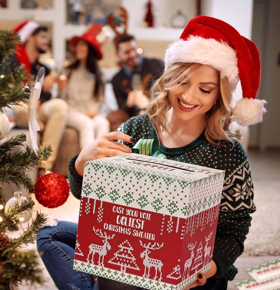 Ugly Sweater Contest Ballot Box Voting Box with 48 Voting Cards for Ugly Sweater Party Christmas New Year Ugly Christmas Sweater Ballot Box Ugly Sweater Contest Ballot Box Voting Box with 48 Voting Cards for Ugly Sweater Party Christmas New Year Ugly Christmas Sweater Ballot Box Product Overview Key Features Ugly sweater contest ballot box with voting cards: The ugly sweater ballot box is 7.8 X 7.8 X 7.8 inch, the voting cards with sweater pattern printed on both sides is 4.3 X 2.75 inches. The contest ballot box is a great choices for ugly sweater party game Costume contest voting box: The ugly Christmas sweater voting box for party is made of high quality cardboard, which is sturdy and can be reused. The ugly sweater contest ballot box is easy to assemble, you can assemble it easily and quickly Ballot box with slot: The ugly sweater party voting box is printed with ugly sweater, reindeer, Christmas tree and personalized fonts, and you can easily drop the voting cards into the slot at the top of the contest box. Using ballot box on your party will make more funny Ugly sweater party game: Send one or more voting cards to everyone, write down the name of the sweater owner you think is the ugliest, put the card into the ugly sweater voting box, and finally whoever gets the most votes be the winner Christmas party supplies : The Christmas ballot box with 48 voting cards can be used for ugly sweater party, New Year, costume party, Christmas party and so on. Using the Xmas ugly sweater voting box will give you an unforgettable funny Christmas memory Return Policy ⦿ Items can be returned within 30 days. Contact us through eBay messaging for return instructions. ⦿ We guarantee 100% satisfaction. Any issues will be resolved promptly. ⦿ Free shipping and returns with a 30-day money-back guarantee. ⦿ Please contact us for the return shipping address. Shipping Information ⦿ We ship to the address provided on eBay. Please ensure it is accurate. ⦿ Standard delivery time is 3-5 business days. ⦿ We use reputable shipping services such as UPS, FedEx, and USPS. ⦿ Currently, we ship only within the 48 contiguous states of the USA. ⦿ For any shipping concerns, feel free to contact us. Customer Support ⦿ For any inquiries, please contact us via eBay messaging. We typically respond within 24 hours. ⦿ Customer satisfaction is our top priority. ⦿ If you encounter any issues, please contact us before leaving feedback, and we will do our best to resolve them. About Us We are dedicated to providing high-quality products at competitive prices, ensuring that our customers receive the best value. Our team is committed to delivering exceptional customer service and a seamless shopping experience. With years of experience in the industry, we have established strong relationships with suppliers, enabling us to offer a diverse range of products. We continuously strive to expand our product selection and improve our services to exceed customer expectations. Our mission is to achieve 100% customer satisfaction by addressing any concerns promptly and effectively. Thank you for choosing our store. We look forward to serving you again and making your shopping experience delightful.