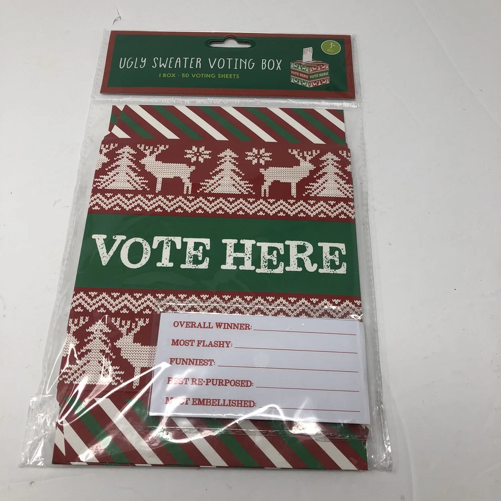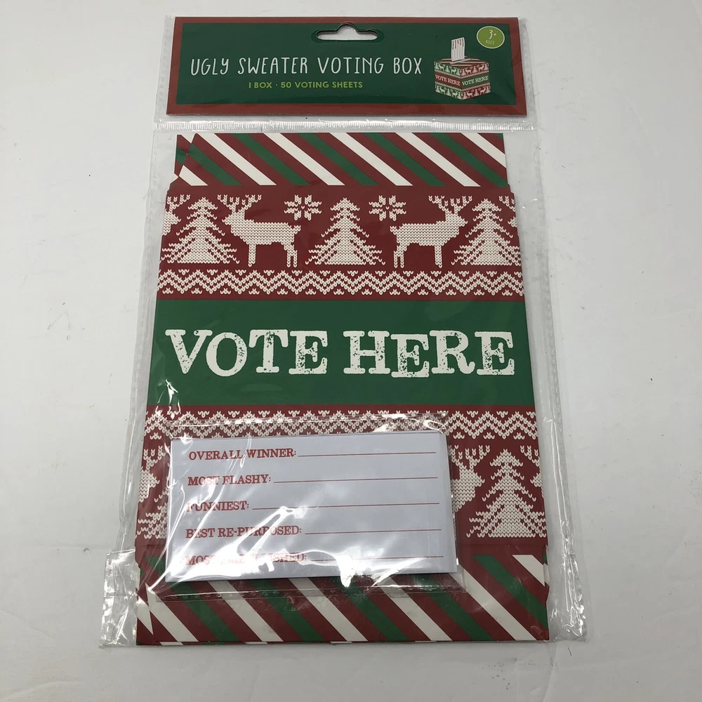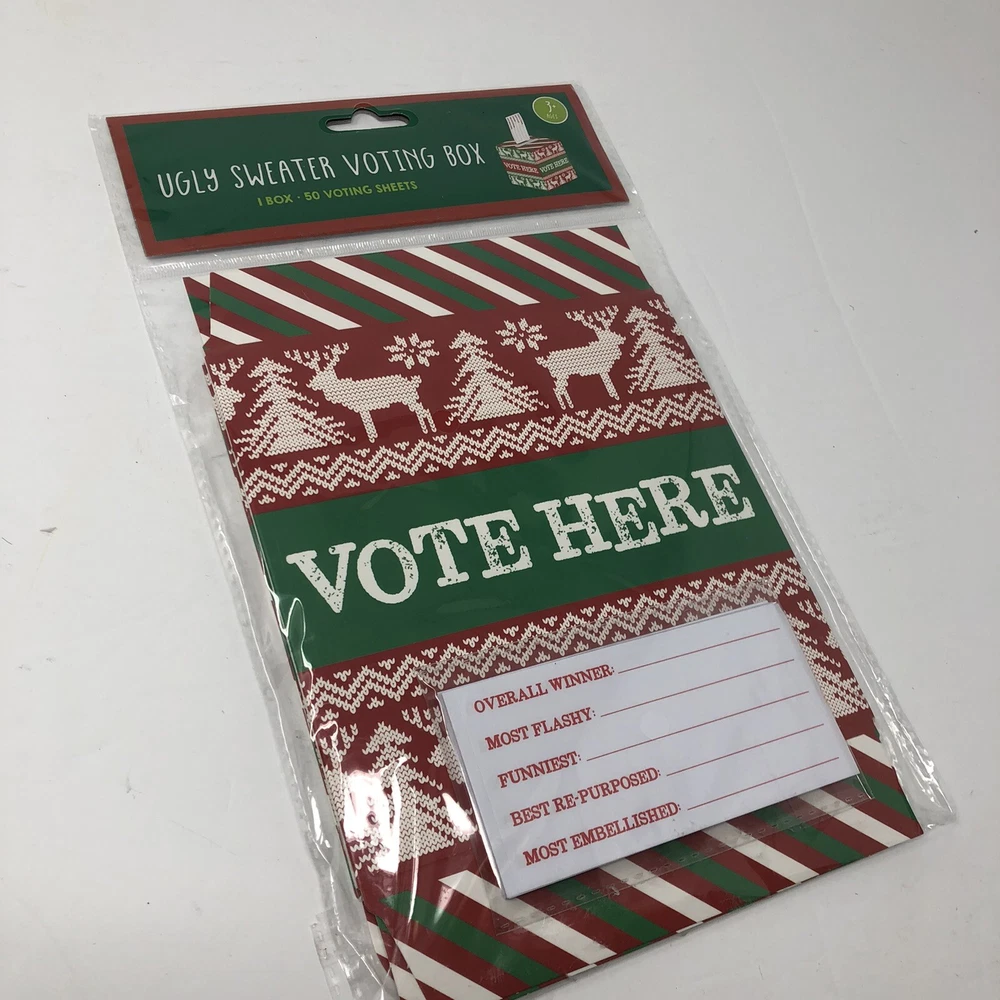 CHRISTMAS Ugly Sweater Party Voting Box with 50 Ballots Holiday Party. Condition is "New". Shipped with USPS First Class.