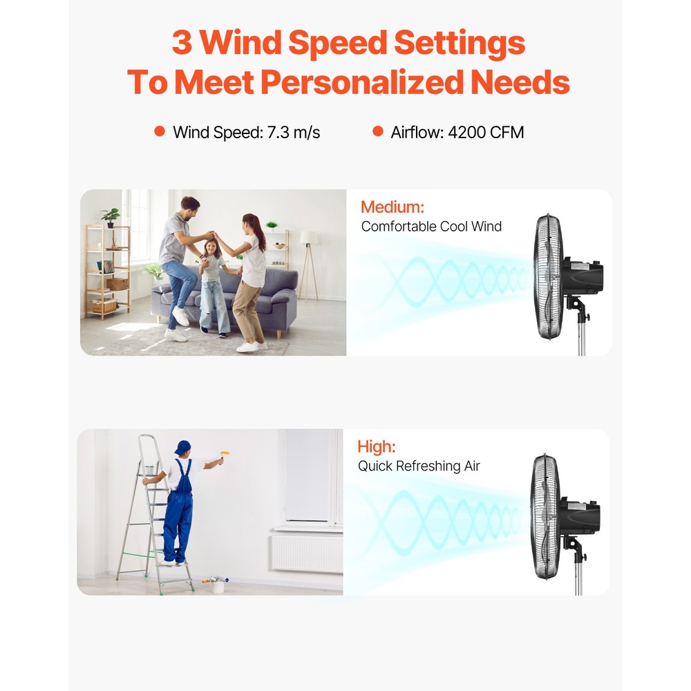 Heavy-Duty Industrial Pedestal Fan This tower fan features a durable metal construction and a stable base, designed to prevent accidental tipping. It operates quietly with a 3-speed motor, offering adjustable height and oscillation angles to suit your preferences. The fan is equipped with a protective mesh cover, making it a practical choice for staying cool during the summer months. Whether you're working at a desk, relaxing on the couch, or enjoying a movie night, this room fan allows you to effortlessly adjust its vertical and horizontal angles, as well as its height, ensuring a comfortable temperature tailored to your needs. This fan features a durable metal construction designed to provide consistent airflow, even during extended periods of high-speed use. Its stable base helps prevent vibrations and reduces the likelihood of accidental tipping. This portable pedestal fan is designed for effortless mobility, making it simple to transport cool air to various locations. Whether you're in the living room, workspace, or storage area, you can enjoy a comfortable and refreshing airflow in any setting. To perform regular upkeep, start by switching off the power supply. Use a damp cloth or mild soapy water to clean the fan thoroughly. Once cleaned, dry the fan using a cloth or allow it to air dry naturally. Features & Details Durable Motor Design: This industrial pedestal fan is equipped with a reliable dual-ball bearing motor that delivers consistent airflow while ensuring operational stability. Additionally, it includes a thermal protection feature that automatically shuts off the fan to prevent overheating during extended use. Customizable Airflow Options: This pedestal fan features three adjustable speed settings, enabling you to adapt the airflow to your needs—whether for sleeping, unwinding, or engaging in indoor activities. Delivering a robust airflow of 5400 CFM and a wind speed of 7.5 m/s, it ensures a comfortable and refreshing environment. 65.62 ft Airflow Reach: This floor fan is designed with a manually adjustable vertical angle that rotates 360°, allowing you to customize the airflow direction to suit your cooling preferences at various heights. Its extended airflow range efficiently cools large spaces, making it ideal for wide areas. Adjustable Height: This fan features a height range of 46.9 to 59.6 inches, enabling you to tailor its position to suit your indoor activities or workspace requirements. Effortless Setup: A comprehensive set of installation tools is included, allowing you to assemble the fan right away without requiring extra equipment. Built with sturdy materials, the fan is designed for dependable performance and extended durability. SHIPPING ABOUT US PAYMENT RETURNS CONTACT WARRANTY Welcome to our eBay store. As a leading and emerging company in manufacturer and exporting business, we are specialized in Business and Industrial Products, Sporting Goods, Pet Products, Home and Garden products for more than 10 years. We believe that it is our vision and mission to provide innovative products with best service and competitive price to satisfy you. Our goal is to make sure that you can find exactly what you are looking for and make it easy for you to place your orders. We accept PayPal payment,PayPal Credit,Credit card or debit card and so on. Payment should be completed within 4 (Four) days of auction closing. Or unpaid dispute will be filed for closing auction. We will leave a positive feedback immediately after payment is received. We appreciate a positive feedback as much as you do. If for some reason there is any issue with the purchase, please contact us prior to leaving feedback, we will be glad to work together and provide a satisfying solution. Please be aware that PO Box cannot receive items, please DO NOT fill in the PO Box address. DELIVERY DAYS: 3-7 BUSINESS DAYS 3 BUSINESS DAYS SHIPPING OUT SHIP FROM CA & TX & NJ & GA & NC &OR WAREHOUSE California Warehouse: City of Industry, CA Texas Warehouse : Houston, TX New Jersey Warehouse : Perth Amboy, NJ New York State Warehouse: Perth Amboy, NJ Georgia Warehouse: Austell,GA North Carolina Warehouse: Grove NC Oregon Warehouse: AIRPORT WAY Portland,OR All of our items are backed with a 30-day return policy. We ensure all our items are new and in excellent condition prior to shipping. In case you receive the item that is not to the standards above, please contact us via e-Bay messages. All returns must be in new original condition as received and should be shipped with delivery confirmation Please note that all returns must be pre-approved by us. Unauthorized returns will not be accepted. If you need to return, please check twice to confirm the item not work and contact our customer service representative, let us know the detailed problem and send us some pictures for confirmation. We ONLY accept returns with original package. Please make sure that item has NO man-made sabotage. Used items will not be accepted for return. Email Customer Support: 9:00am-2:00am PST Sunday-Friday All emails will be responded to within 12-24 hours This item comes with 12 months Warranty from the date of customers purchased it. Special circumstances will be listed clearly in the listing. If your item has been damaged in transit or become faulty in warranty period, please email us with pictures or video to show the problem. Please do check everything carefully after you received the parcel, any the damage except DOA (Dead-On-Arrival) would not be covered if it's your fault. Replacement products are provided with the same warranty as the returned products. Heavy-Duty Industrial Pedestal Fan This tower fan features a durable metal construction and a stable base, designed to prevent accidental tipping. It operates quietly with a 3-speed motor, offering adjustable height and oscillation angles to suit your preferences. The fan is equipped with a protective mesh cover, making it a practical choice for staying cool during the summer mon