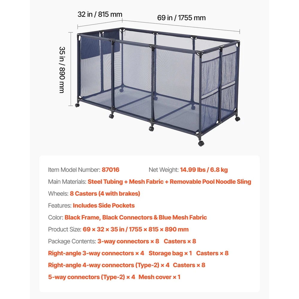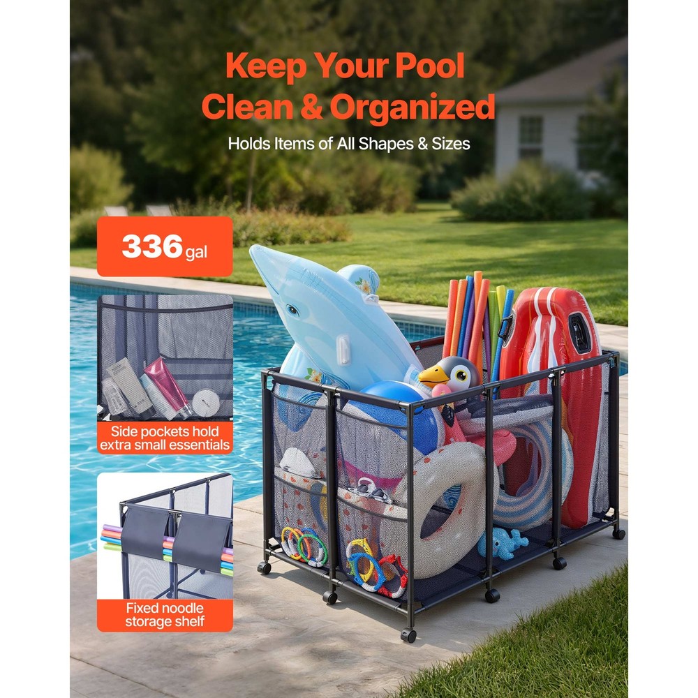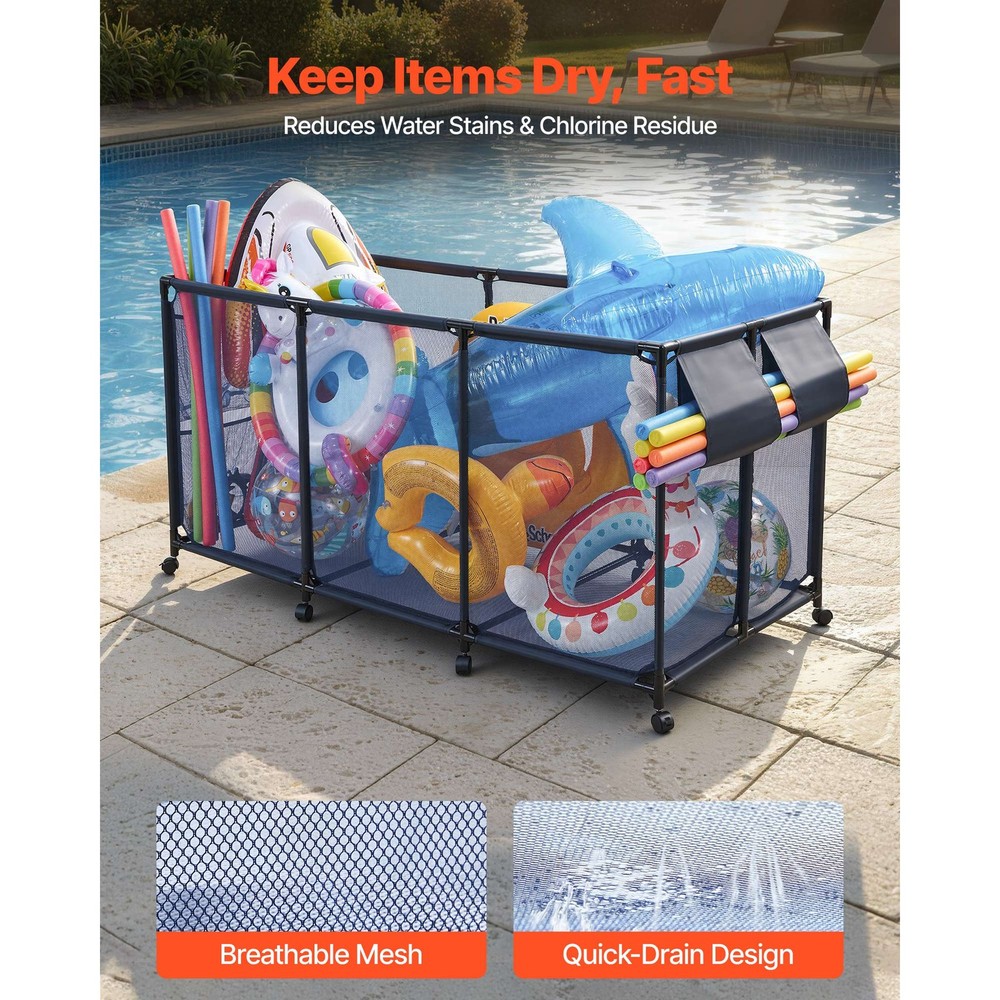 Spacious Storage Basket for Pool Floats This storage bin is designed to hold various pool accessories and toys. It features an extended side pocket and a mesh divider for pool noodles, ensuring smaller items and noodles are kept tidy and your pool space remains clutter-free. This pool float storage container is designed with mesh panels on every side, allowing for efficient water drainage and enhanced air circulation to speed up the drying process of stored items. This durable support frame is designed to handle loads of up to 50 kg (110 lb) efficiently, ensuring reliable performance for extended outdoor applications without bending or breaking. This storage rack for pool noodles is equipped with durable, lockable wheels that ensure smooth and quiet movement. The brakes allow it to stay firmly in place when needed. This versatile poolside storage solution is perfect for organizing items around backyard pools and patios. It can also be used indoors as a storage container for bathrooms, warehouses, or general household organization. Features & Details Spacious Storage Solution: This poolside storage bin is designed to accommodate water balls, surfboards, foam floats, pool noodles, swim rings, and other pool accessories. It features a convenient side pocket for easy access to goggles and swim caps, while the dedicated holder keeps pool noodles tidy and organized. Robust and Long-Lasting Design: Crafted with a strengthened metal tube frame and reliable connectors, this pool toy organizer resists sagging or warping. The breathable polyester mesh ensures quick drying, minimizing water stains and chlorine exposure for safe storage. Effortless Mobility: This pool float storage rack is equipped with smooth-rolling wheels, allowing you to easily transport it between different locations. The locking casters provide added stability by securely holding the organizer in place when stationary. Effortless Setup: Assemble the tubes and secure the mesh without the need for drilling or additional tools. The float organizer is designed for quick disassembly, allowing for convenient storage indoors or outdoors when not in use. Versatile Applications: This storage bin is perfect for organizing pool noodles in backyard swimming areas, water sports facilities, warehouses, children's toys, clothing, and laundry essentials. Keep your space tidy and well-organized with ease. SHIPPING ABOUT US PAYMENT RETURNS CONTACT WARRANTY Welcome to our eBay store. As a leading and emerging company in manufacturer and exporting business, we are specialized in Business and Industrial Products, Sporting Goods, Pet Products, Home and Garden products for more than 10 years. We believe that it is our vision and mission to provide innovative products with best service and competitive price to satisfy you. Our goal is to make sure that you can find exactly what you are looking for and make it easy for you to place your orders. We accept PayPal payment,PayPal Credit,Credit card or debit card and so on. Payment should be completed within 4 (Four) days of auction closing. Or unpaid dispute will be filed for closing auction. We will leave a positive feedback immediately after payment is received. We appreciate a positive feedback as much as you do. If for some reason there is any issue with the purchase, please contact us prior to leaving feedback, we will be glad to work together and provide a satisfying solution. Please be aware that PO Box cannot receive items, please DO NOT fill in the PO Box address. DELIVERY DAYS: 3-7 BUSINESS DAYS 3 BUSINESS DAYS SHIPPING OUT SHIP FROM CA & TX & NJ & GA & NC &OR WAREHOUSE California Warehouse: City of Industry, CA Texas Warehouse : Houston, TX New Jersey Warehouse : Perth Amboy, NJ New York State Warehouse: Perth Amboy, NJ Georgia Warehouse: Austell,GA North Carolina Warehouse: Grove NC Oregon Warehouse: AIRPORT WAY Portland,OR All of our items are backed with a 30-day return policy. We ensure all our items are new and in excellent condition prior to shipping. In case you receive the item that is not to the standards above, please contact us via e-Bay messages. All returns must be in new original condition as received and should be shipped with delivery confirmation Please note that all returns must be pre-approved by us. Unauthorized returns will not be accepted. If you need to return, please check twice to confirm the item not work and contact our customer service representative, let us know the detailed problem and send us some pictures for confirmation. We ONLY accept returns with original package. Please make sure that item has NO man-made sabotage. Used items will not be accepted for return. Email Customer Support: 9:00am-2:00am PST Sunday-Friday All emails will be responded to within 12-24 hours This item comes with 12 months Warranty from the date of customers purchased it. Special circumstances will be listed clearly in the listing. If your item has been damaged in transit or become faulty in warranty period, please email us with pictures or video to show the problem. Please do check everything carefully after you received the parcel, any the damage except DOA (Dead-On-Arrival) would not be covered if it's your fault. Replacement products are provided with the same warranty as the returned products. Spacious Storage Basket for Pool Floats This storage bin is designed to hold various pool accessories and toys. It features an extended side pocket and a mesh divider for pool noodles, ensuring smaller items and noodles are kept tidy and your pool space remains clutter-free. This pool float storage container is designed with mesh panels on every side, allowing for efficient water drainage and enhanced air circulation to speed up the drying process of stored items. This durable support frame is designed to handle loads of up to 50 kg (110 lb) efficiently, ensuring reliable performance for extended outdoor applications without bending or breaking. This storage rack for pool noodles is equipped wi
