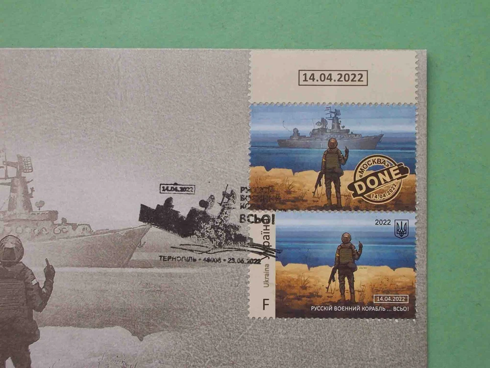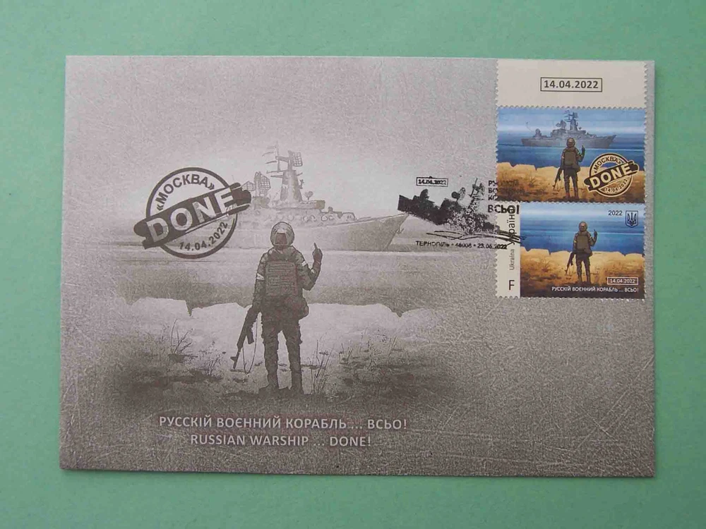 Ukraine 2022 First Day cover with stamps F. RUSSIAN WARSHIP DONE! Special cancelation. Ukraine 2022 First Day cover with stamps F. RUSSIAN WARSHIP DONE! Special cancelation. The item is in NEW condition.(See pictures). Excellent item a collection!!! PAYMENT AND SHIPPING. I accept Visa/MC credit card payments via PayPal. Winner pays $8.00 s/h. (Airmail, registered letter). If you win more than one item shipping costs will be combined. International shipping (Except russia and belarus). A
