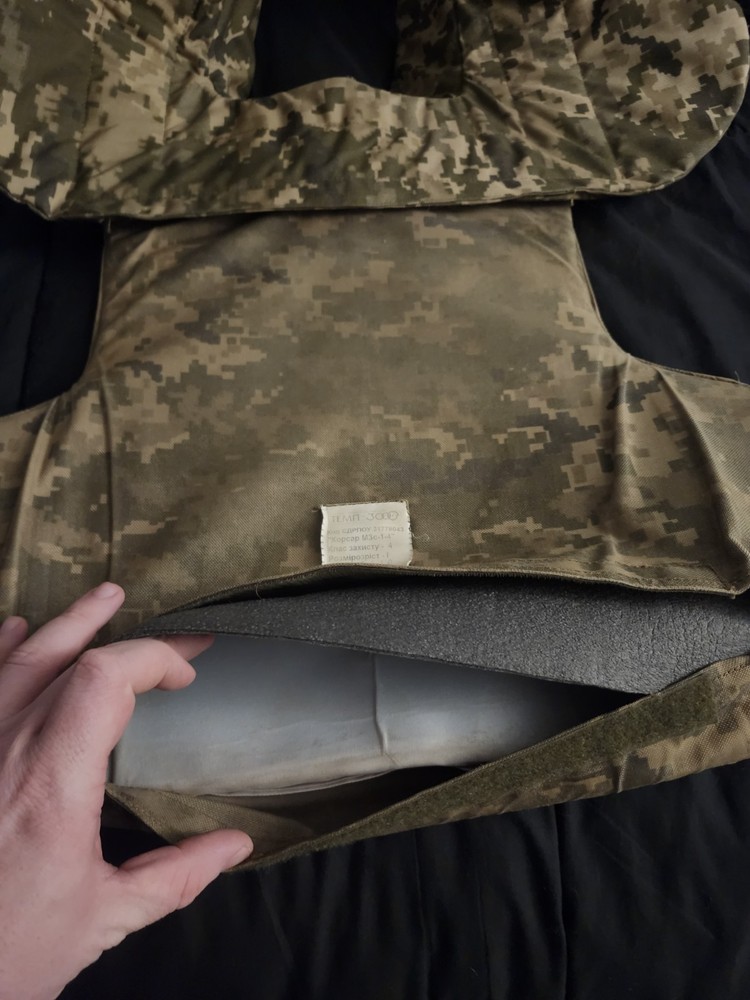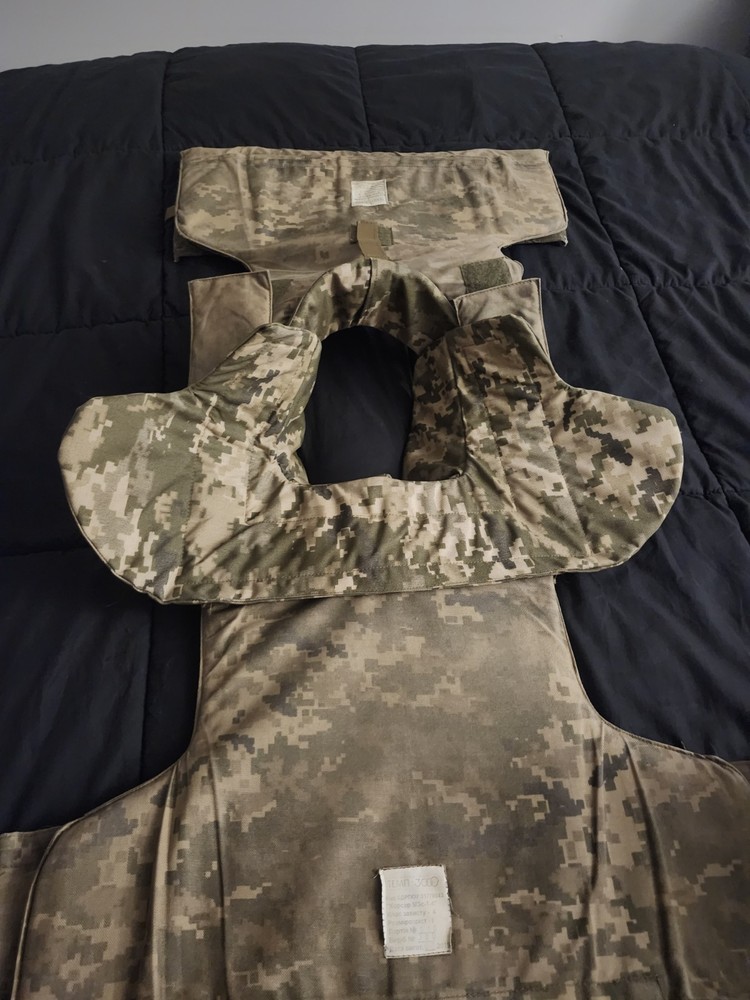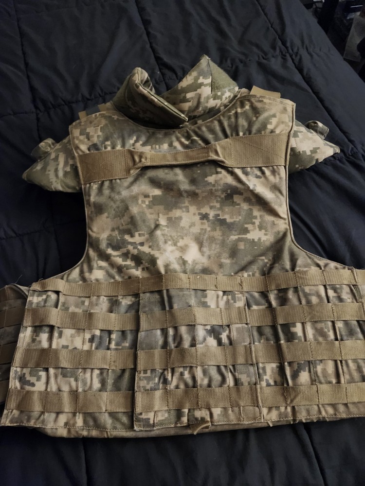 in very great condition. velcro works. some color from the camo is warn. front and back soft armor included. No plates!