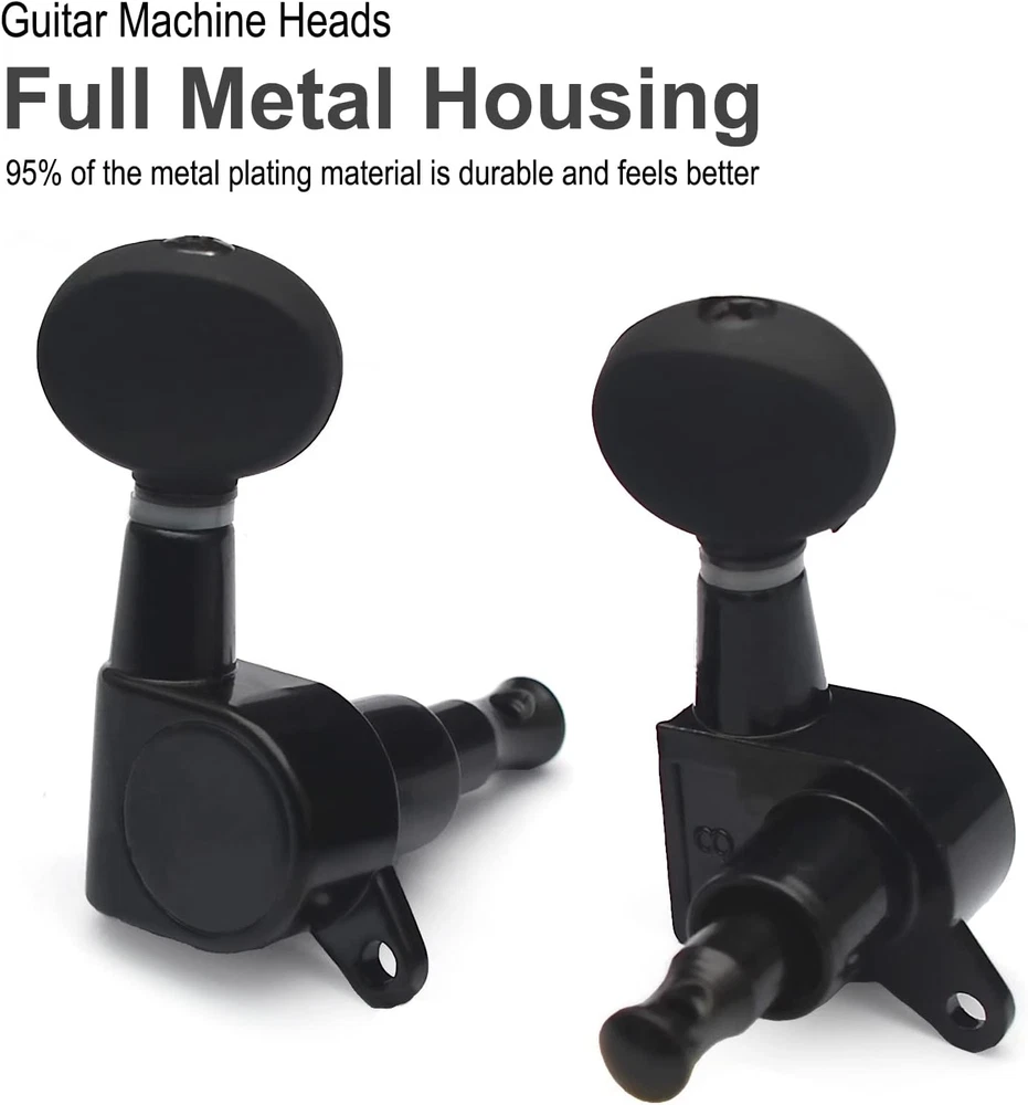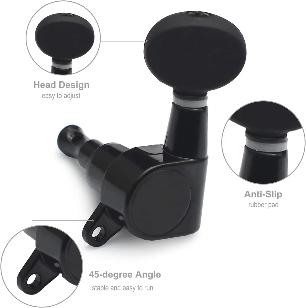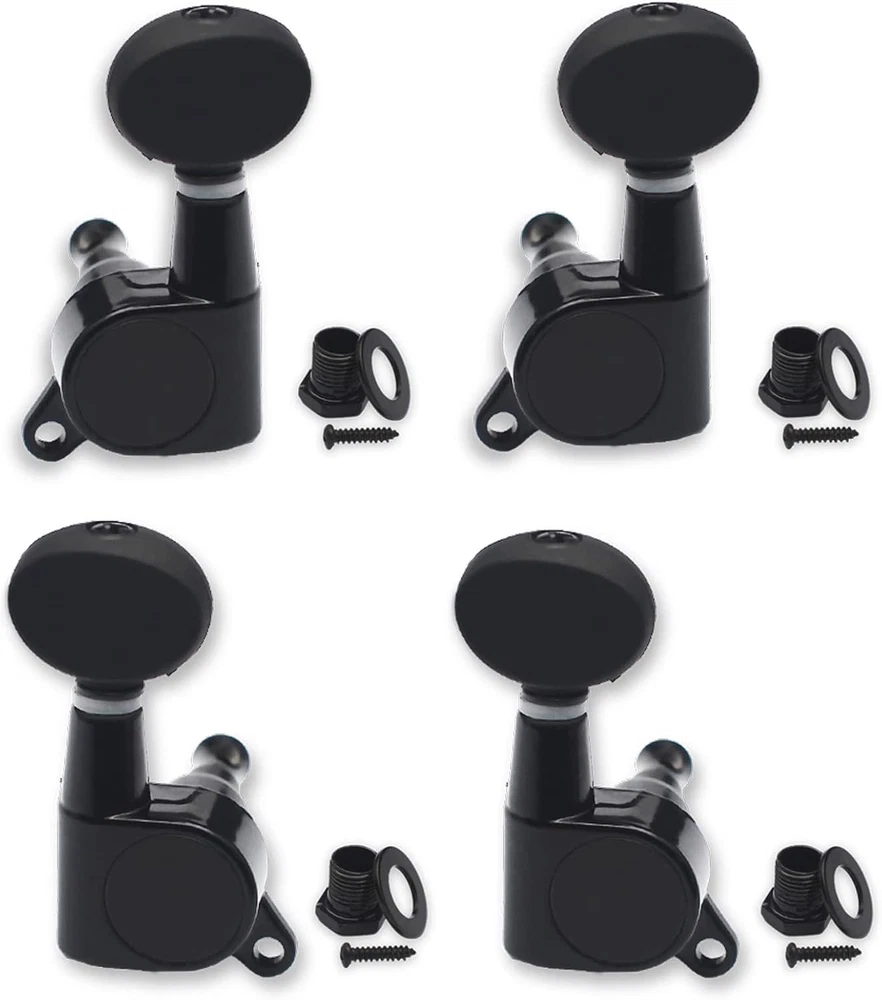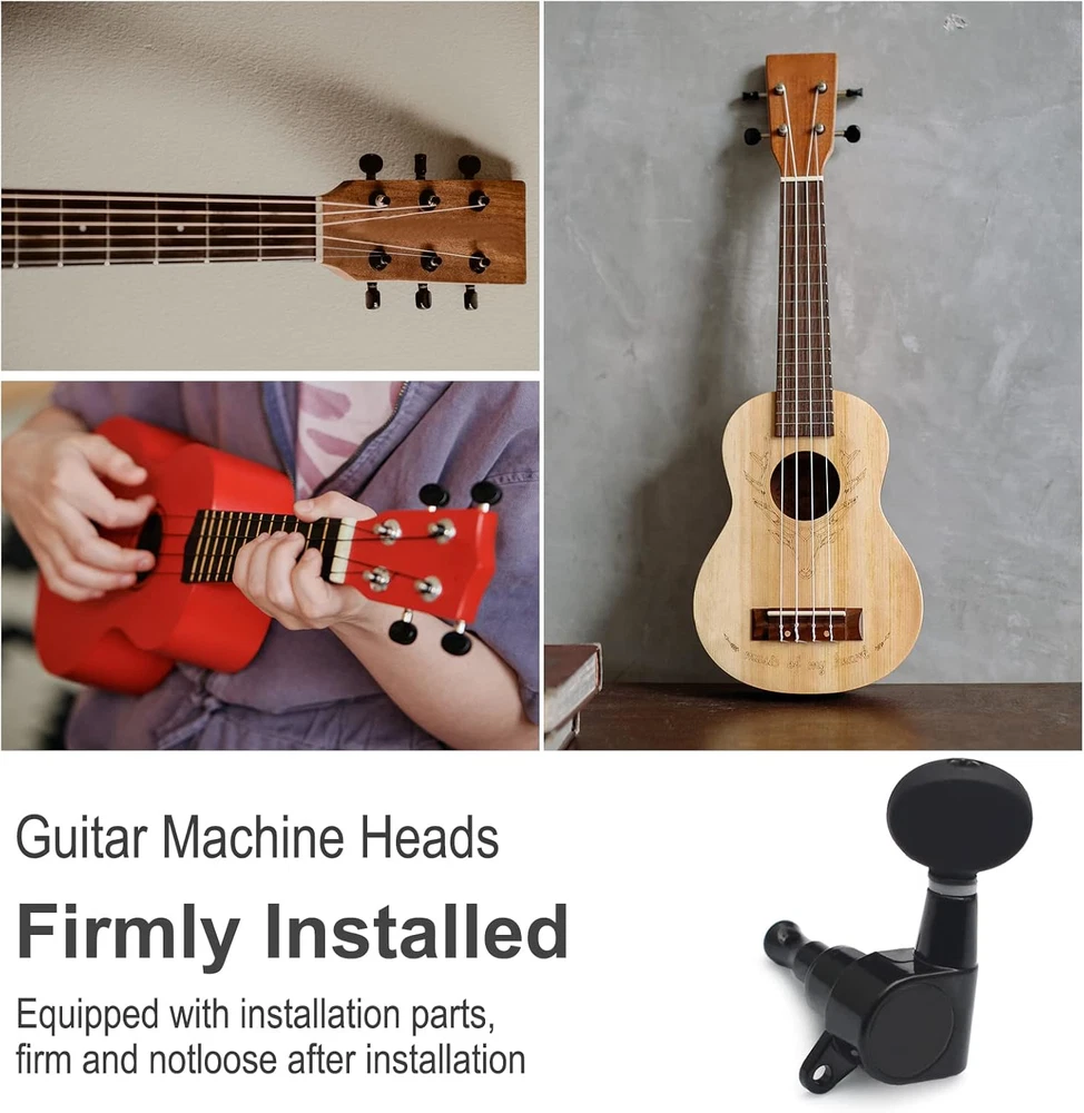 Ukulele Tuning Pegs Sealed-Gear Machine Heads with Concave Button - Black