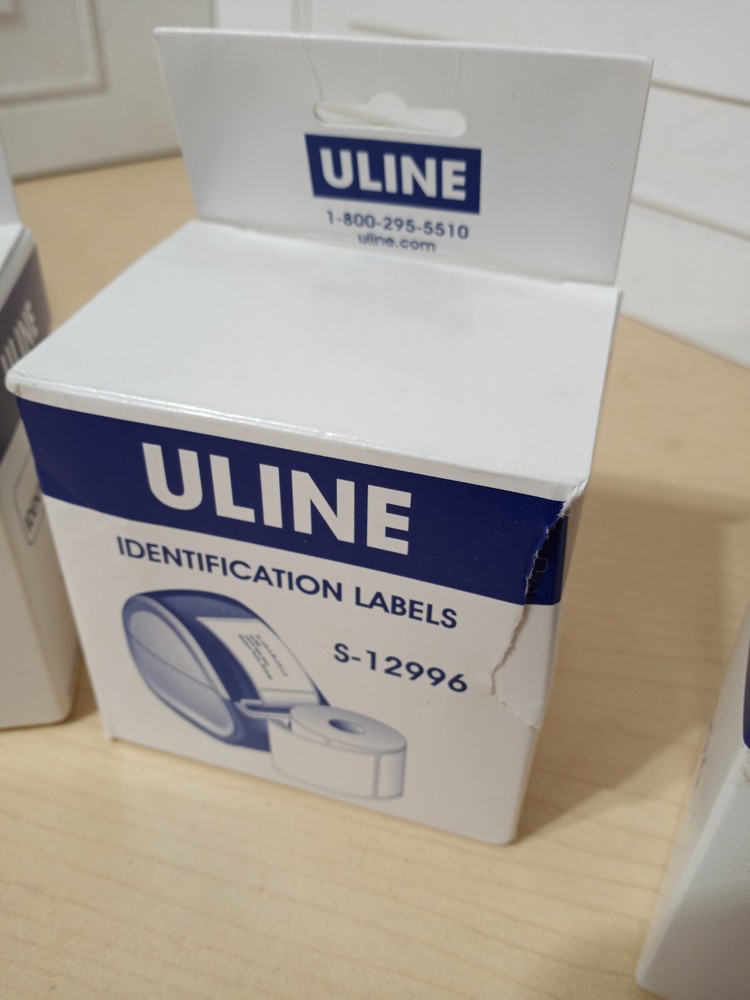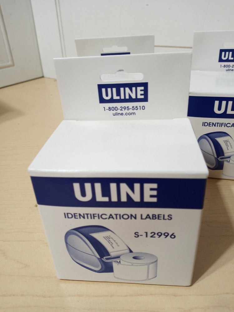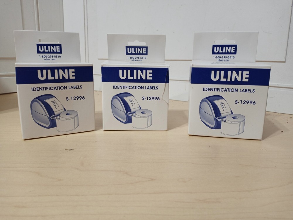 Three boxes of ULine brand, Identification Labels, model S-12996. Each box / roll has 1,000 labels.