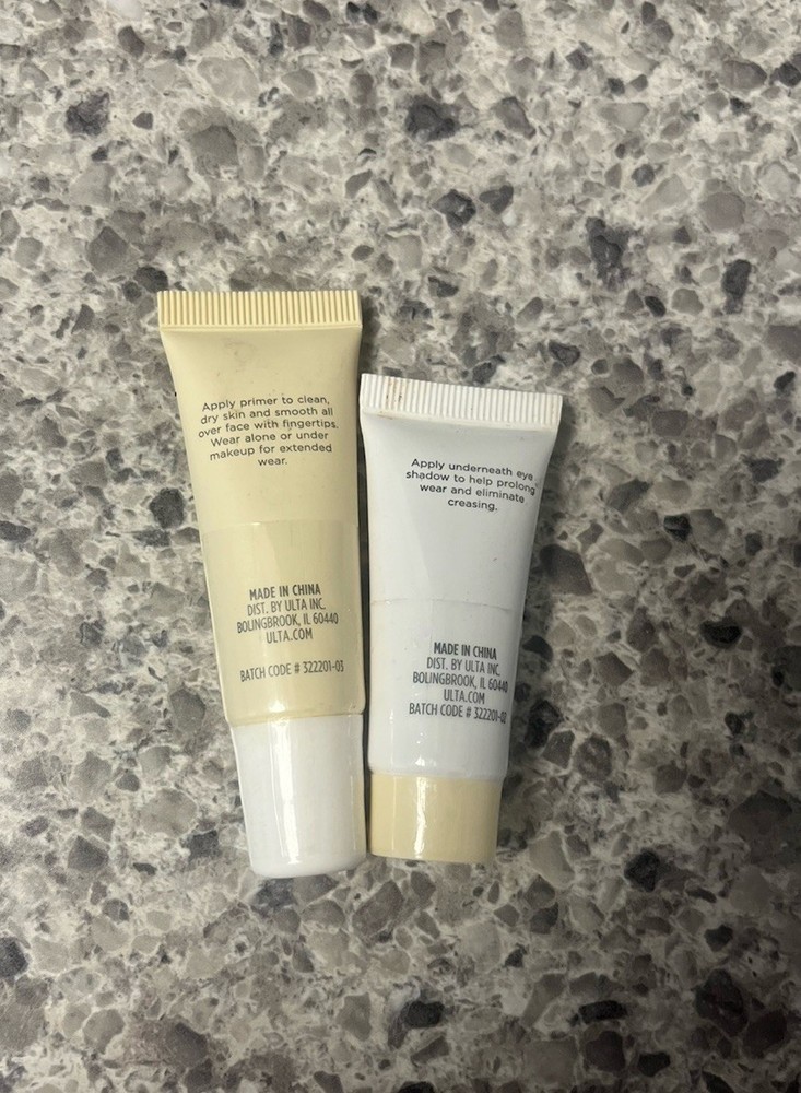 Both are brand new with plastic seal intact! Poreless face primer is 10ml. Tinted eye primer is 5ml.