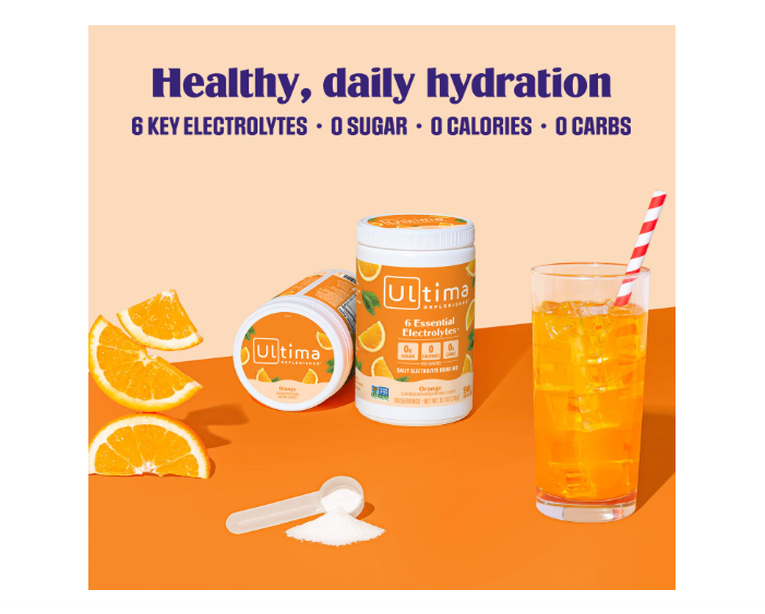 About this item Brand Ultima Replenisher Flavor Orange Primary Supplement Type Vitamin A Unit Count 11.1 Ounce Item Form Powder Item Weight 11.1 Ounces Item dimensions L x W x H 2.88 x 2.88 x 5 inches Special Ingredients Magnesium Citrate, Potassium Phosphate, Aspartate, Calcium Organic Stevia Leaf, Beet Juice Concentrate, Zinc Manganese Citrate Magnesium Citrate, Potassium Phosphate, Aspartate, Calcium Organic Stevia Leaf, Beet Juice Concentrate, Zinc Manganese Citrate Diet Type Keto Product Benefits Hydration Powder Refresh and replenish: Ultima electrolytes powder delivers everyday hydration packed with 6 key electrolytes, vitamin C, zinc and delicious plant-based flavors; Ultima electrolytes provide enhanced hydration with 0 sugar, calories or carbs Naturally delicious: Electrolyte drink mix made with 6 key electrolytes - magnesium, calcium, potassium, chloride, phosphorus and sodium, as well as vitamin C and zinc; naturally sweetened with organic stevia leaf and infused with real fruit flavors What’s inside: Our daily electrolyte drink mix replenishes your electrolyte levels without the sugar, calories or artificial sweeteners; sugar free, gluten free, vegan, keto friendly and Non-GMO Stock up on your favorites: This 90-serving canister is perfect for conveniently storing at home for your daily hydration; simply add 1 scoop to 16 ounces of water and shake or stir well, then add ice if you’d like it cold The Ultima difference: We’ve spent over 25 years taking electrolyte hydration to a delicious new level; you deserve balanced hydration to replenish your body while you’re living your ultimate life, every day