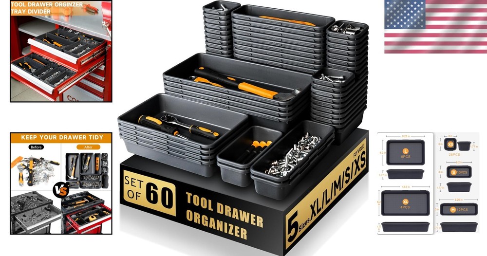 Ultimate Toolbox Organizer - 60 Bins for Efficient Home and Garage Storage ‹ › ‹ › ‹ › ‹ › ‹ › ‹ › ‹ › ‹ › ‹ › Ultimate Toolbox Organizer Efficient Home and Garage Storage with 60 Bins Product Highlights: 60 Pack & 5 Sizes: Our ultimate toolbox organizer features an ample selection of 60 bins to suit all your tool storage needs, including: - 4 x XL size (12.5 x 6.2 x 1.77 in) - 8 x L size (9.25 x 6.2 x 1.77 in) - 12 x M size (9.25 x 3 x 1.77 in) - 10 x S size (6.2 x 3 x 1.77 in) - 26 x XS size (3 x 3 x 1.77 in). Quality: Crafted from high-quality solid plastic, ensuring durability and longevity for storing tools and small parts effectively. Interlocking Design: Innovative interlocking capability allows the trays to be arranged together or used separately, enabling personalized storage solutions. Versatile Storage: Perfectly designed for a wide array of tools including screwdrivers, wrenches, claw hammers, bits, screws, bolts, and rulers. The upgraded larger size of the bins easily accommodates more tools than conventional dividers. Wide Application: This organizer is not only ideal for home and garage environments but also functions beautifully as an office drawer organizer, enhancing any workspace with order and efficiency. Why Choose the Ultimate Toolbox Organizer? Transform chaos into organization with the Ultimate Toolbox Organizer! Designed for efficiency and versatility, this storage solution keeps your tools tidy and accessible. Say goodbye to clutter and frustration as all of your essentials have a designated place, making any project easier to tackle. Whether you're a DIY enthusiast or a professional, investing in this toolbox organizer means investing in your productivity. Don't let your tools get lost in the shuffle – upgrade your workspace today with a stylish and functional storage solution! Order now and reclaim your space with the Ultimate Toolbox Organizer! Shipping Free & Fast Shipping - We offer free shipping to most of the USA with a normal delivery time of 3-7 days. However, due to the current situation, additional delivery time (up to 3 weeks) may be required for some items. Alternative Carriers - We may use alternative carriers (e.g. USPS, FedEx, UPS, etc.) to ensure your package arrives safely and on time. Due to the use of multiple carriers, we are unable to provide a tracking number automatically. Handling Time - Orders are processed and shipped within 1-2 business days of receiving cleared payment. Shipping Restrictions - Shipping to Alaska, Hawaii, Puerto Rico, Guam, and other US territories may incur shipping charges or delivery restrictions. Please contact us before ordering, or your order can be refunded/cancelled. State Restrictions - There may be restrictions based on your state of purchase. For example, certain items may not be shipped to California due to state regulations. Contact for Tracking Updates - If you require tracking updates or have any concerns about the delivery of your order, please feel free to contact us, and we will be happy to assist you. Return 30-Day Hassle-Free Returns - We want you to be completely satisfied with your purchase. If you are not, you can return the item within 30 days of receiving it for a full refund or exchange. Easy Return Process - To start a return, simply contact us and we will provide you with a prepaid return shipping label and detailed instructions. Restocking Fee - There are no restocking fees for returns. However, the buyer is responsible for return shipping costs if the return is not due to a seller's error. Refund Processing Time - Refunds will be processed within 5 business days of receiving the returned item in its condition. Payment We accept all major credit cards, PayPal, and Apple Pay for your convenience. Your payment information is secure and encrypted to ensure a safe and seamless transaction. Please complete your payment within 3 days of purchase to avoid any delays in shipping. Feedback Your feedback is extremely important to us. We strive to provide the best products and customer service possible. If you are satisfied with your purchase, please take a moment to leave us a positive review. If you have any concerns or issues with your order, please contact us before leaving negative feedback. We are committed to resolving any problems and ensuring your satisfaction. Contact Us If you have any questions or concerns, please feel free to out to our customer support team. You can contact us through the eBay messaging system. We are available Monday to Friday, 9:00 am to 5:00 pm EST, and we will do our best to respond to your inquiry within 24 hours. Buy it now and enjoy a pleasant shopping experience! Item Width: Toolbox Organizer Item Length: Toolbox Organizer Item Height: Toolbox Organizer Item Diameter: 12.6 Item Weight: 10 lb Unit Quantity: 60 Features: Stackable,Interlocking Design,Quality,Ideal for Storing Tools,Wide Application,Desk Drawer Organizer Type: Tool Box Number of Items: 1 Material: Plastic Number of Drawers: 0 Size: Adjustable Capacity: 10 lb Color: Multicolor Finish: Glossy Unit Type: Unit