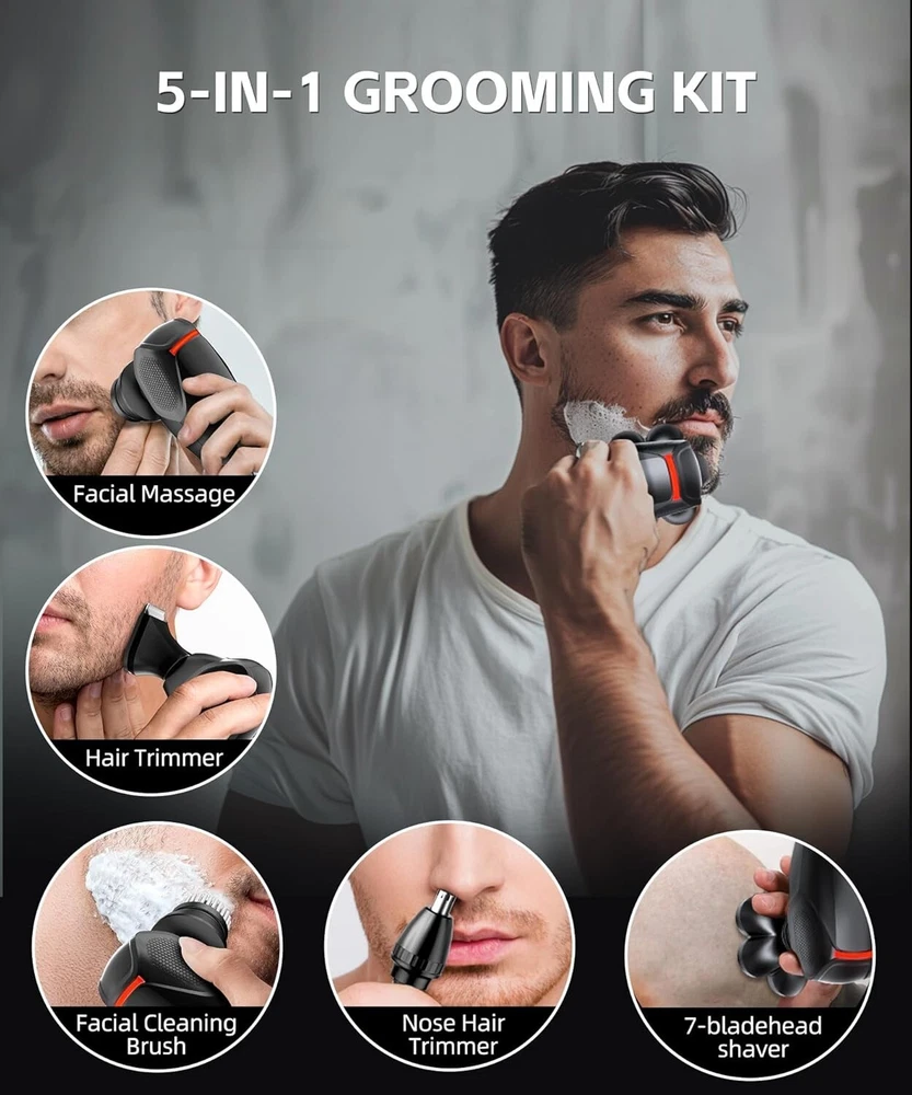 Head Type: 7 Head Rotary Number of Heads: 7 Features: Rechargeable, Waterproof, Wet/Dry, Fast Charging UPC: Does not apply Department: Men Recommended Uses For Product: Beard, Scalp, Nose Hair, Mustache, Face Motor Type: Rotary Power Source: Battery Type: Multi-Function Shaver Item Weight: 1 lb gtin13: Does not apply Color: Black Body Area: Face, Nose, Scalp, Mustache, Body, Back, Chest, Ear, Neck, Pubic Batteries: 1 Lithium Ion Batteries Required. (included) Brand: Unbranded Package Dimensions: 7.09 X 5.94 X 3.31 Inches; 1.26 Pounds