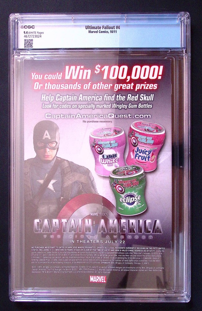 📘 Ultimate Fallout #4 (2011) – CGC 9.4 White Pages Publisher: Marvel Comics Year: 2011 Issue: #4 Grade: CGC 9.4 (White Pages) Certification: CGC Universal Label Case: Clean, sealed CGC holder 🔑 Key Issue Details First full appearance of Miles Morales as Spider-Man One of the most important modern Marvel keys of the 21st century Foundation issue for the Spider-Verse era and Miles’ rise to mainstream popularity Highly sought after by collectors and investors alike 🧾 Condition Notes Professionally graded CGC 9.4 with White Pages Slab is clean and intact with no cracks Please review all photos carefully, the exact book shown is the one you will receive 📦 Shipping Securely packaged with full protection Shipped tracked and insured Fast dispatch from a trusted UK seller ℹ️ Additional Info This is an original 1st print , not a reprint or later edition A cornerstone book for any serious modern Marvel or Spider-Man collection