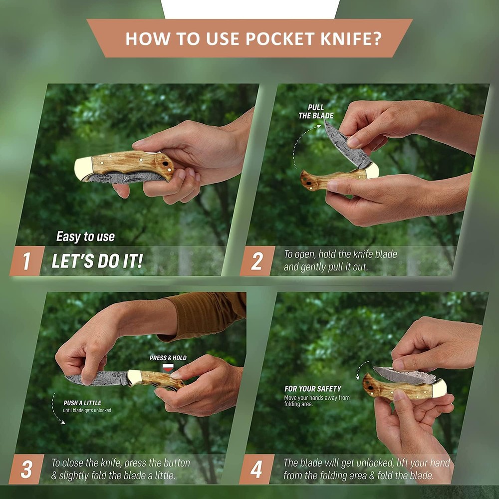 This compact folding knife is a masterpiece! The razor-sharp Damascus steel blade glides effortlessly, while the handcrafted olive wood handle feels smooth and luxurious in the palm. It’s not just a tool—it’s a stunning piece of functional art. Perfect balance, unbeatable craftsmanship, and the unique wood grain makes each piece one-of-a-kind. A must-have for collectors and everyday carry alike!