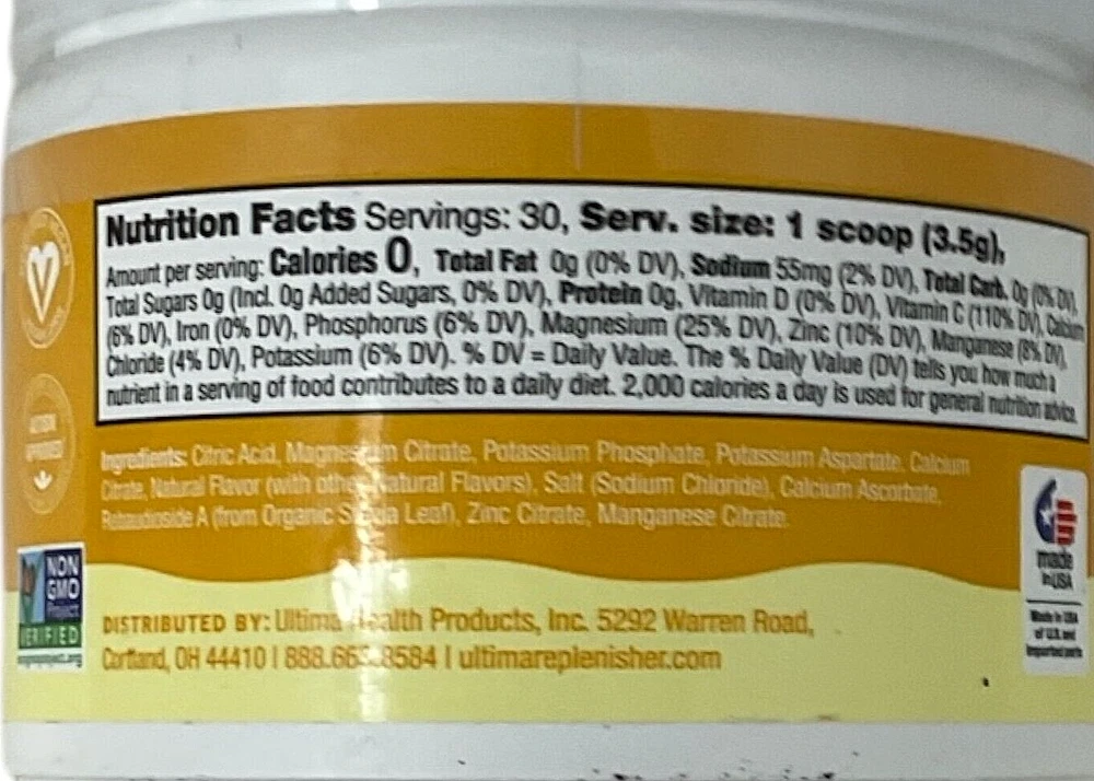 Ultima Replenisher Broad Spectrum Powder Electrolyte Mix - Lemonade - 30 Servings. No Calories Sugar Free Carb Free Condition is New - Free Standard Shipping,
