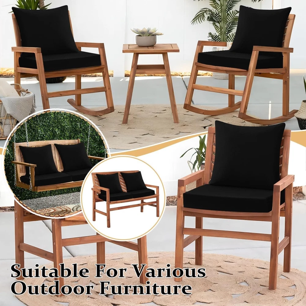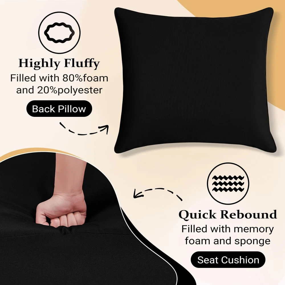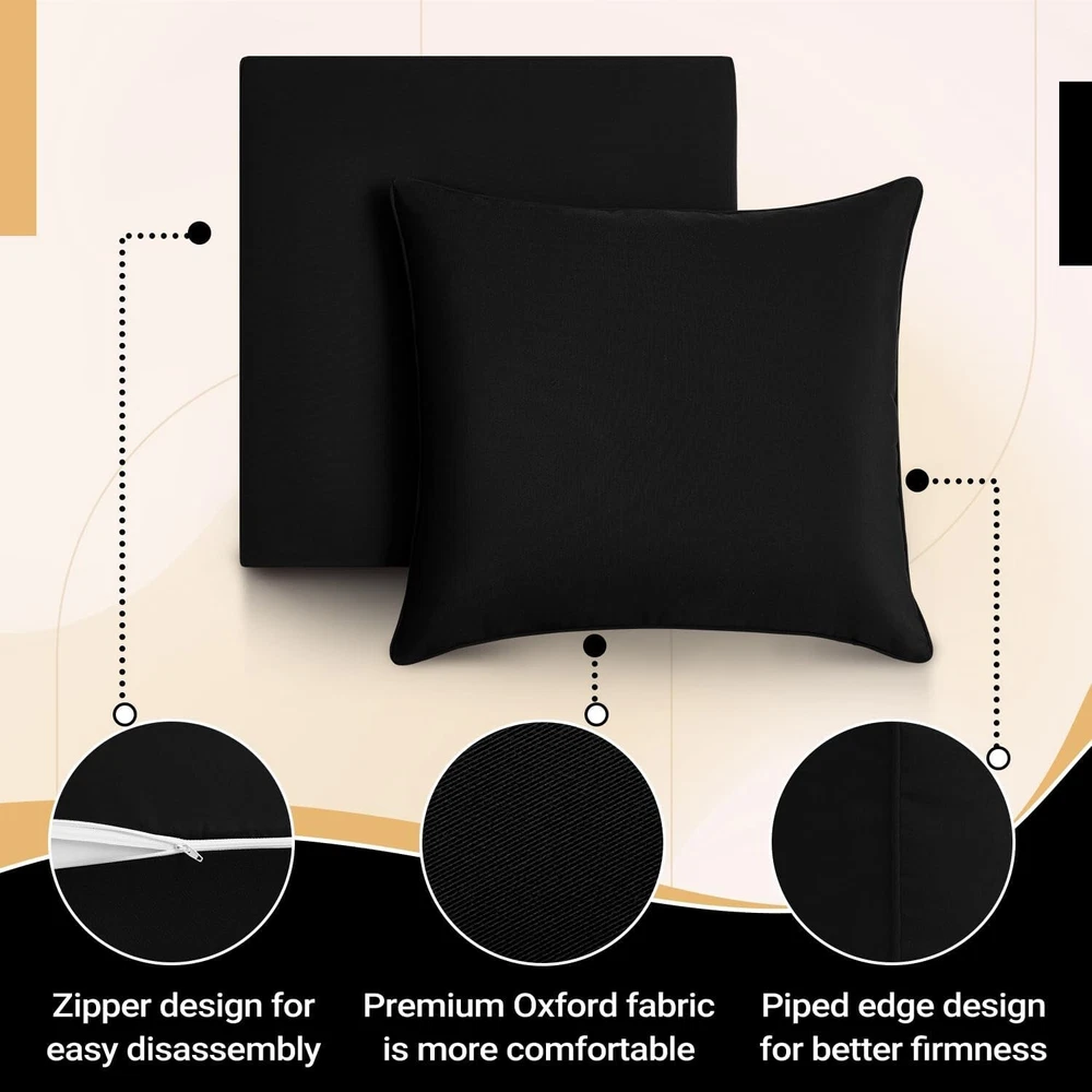 Number Of Items: 1 Assembly Status: Fully Assembled Material: Polyester, Oxford fabric, TPU coating, Lining design FSC Certified: No Age Range (description): Adult Color: Black Fill Material: Memory Foam Shape: Square Material Feature: Durable Set Includes: Seat Cushion & Back Pillow, Seat Cushion, Back Pillow gtin13: Does not apply Style: Outdoor Type: Cushion Set Occasion: Outdoor Pattern: Solid Cushions Included: Yes Cover Material: Polyester Cushion Color: Black Theme: Outdoor Assembly Required: No Closure Type: Zipper Number of Items in Set: Two-Piece Special Feature: Bagged Unit Count: 1.0 Count Indoor/outdoor Usage: Outdoor Recommended Uses For Product: Outdoor Personalized: No Features: Waterproof, Water-Resistant, Easy Care, Removable Cover Chair Color: Black Size: 2 Count (pack Of 1) UPC: Does not apply Department: Adults Product Dimensions: 24"l X 24"w Umbrella Included: No Fabric Type: 20% Polyester,80% Foam Item Weight: 8.49 lb Brand: Unbranded Pillow Type: Furniture Cushion