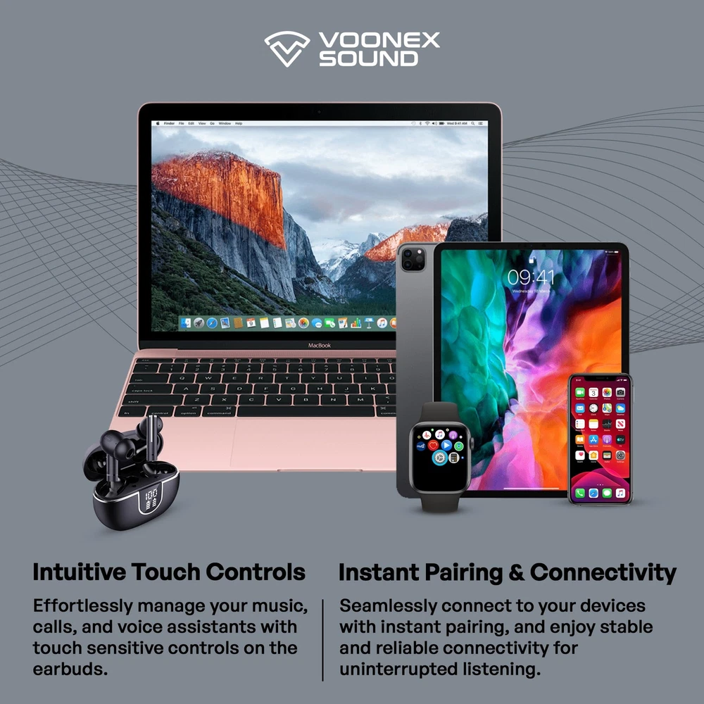 Premium Audio Selection: Immerse yourself in top-tier sound quality Wireless Freedom: Experience ultimate mobility with our wireless earbuds and Bluetooth headphones, delivering a tangle-free and hassle-free audio experience. Comfortable Fit: Enjoy unparalleled comfort with a snug and ergonomic design, ensuring a perfect fit for extended listening sessions. Crystal Clear Calls: Stay connected on the go with built-in microphones for hands-free calls, providing clear and crisp communication. Noise-Canceling Technology: Immerse yourself in your favorite tunes without distractions, thanks to advanced noise-canceling features.