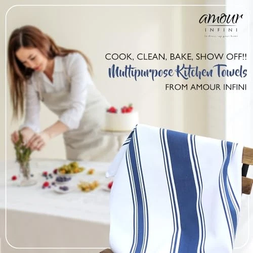 These kitchen towels are amazing! Super soft, super absorbent, and the perfect size for drying dishes or wiping counters. Love the hanging loop—makes storage so easy. They dry quickly and hold up well after washing. The blue stripes add a nice touch to my kitchen. Fast shipping and great seller—definitely recommend!
