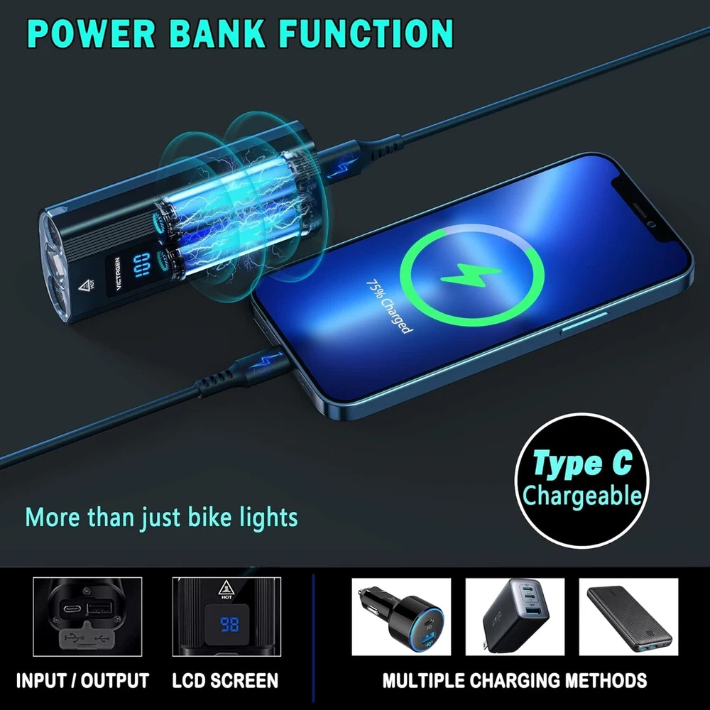 Ultra Bright 8000 Lumen Waterproof Bike Lights with Power Bank Functionality