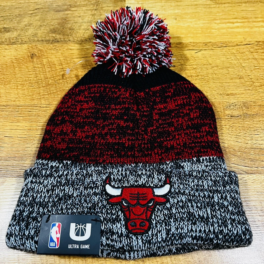 Ultra Game Chicago Bulls NBA Winter Hat Cap Beanie Pom Toboggan Red Black Gray