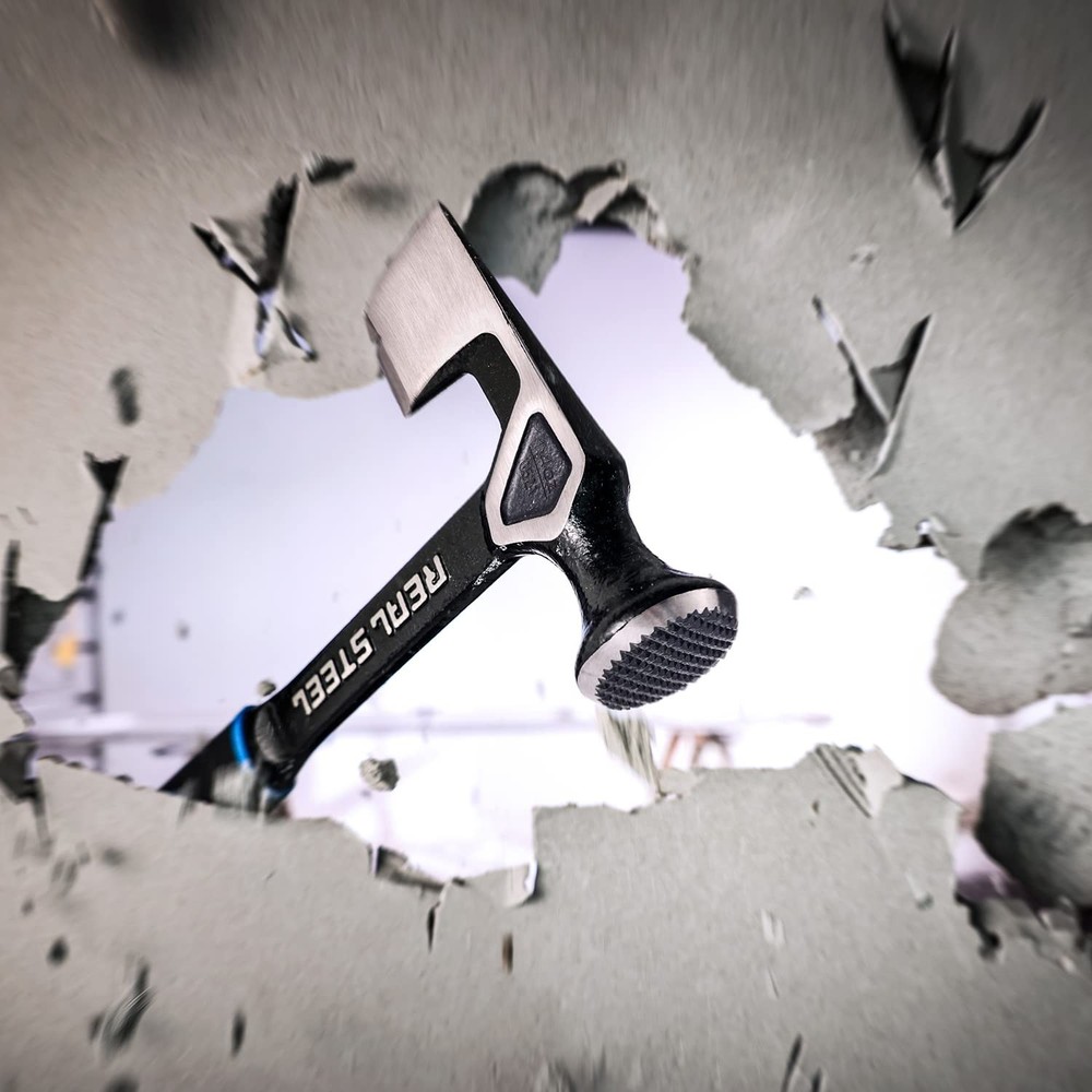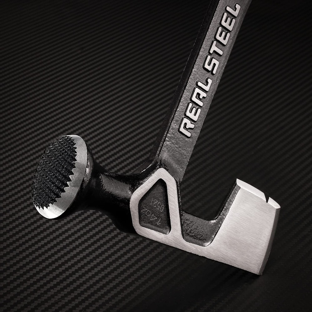 Stronger & lighter ultra sleek design Forged from one piece steel for strength and durability Milled striking face increases striking accuracy Nail notch Textured rubber grip for secure handling