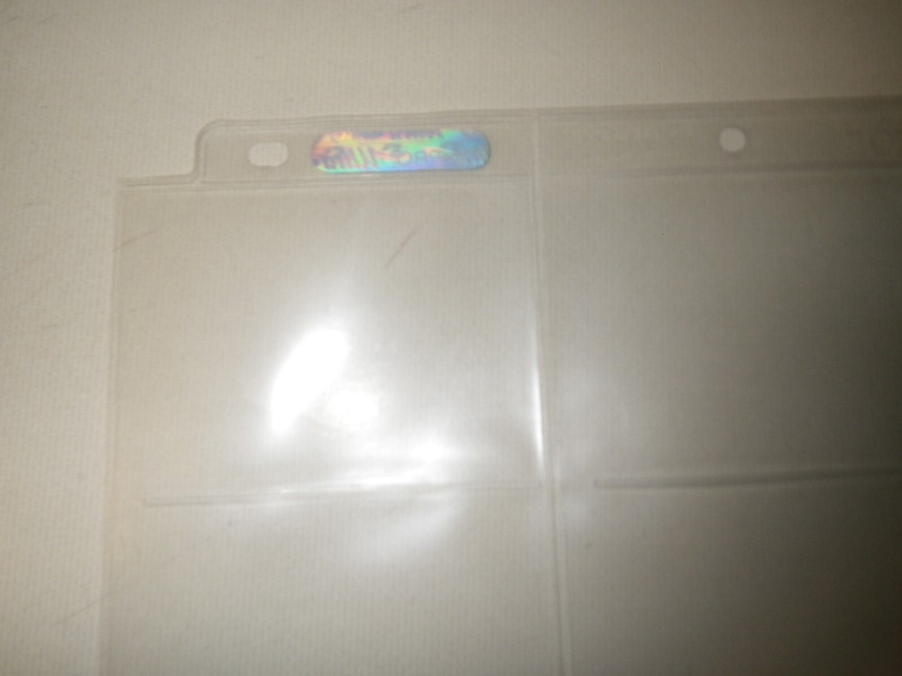 Pocket Type: Top Loading Binder Type: 3-Ring Binder Country of Origin: United States Seller Notes: “In good shape from old stock” Number of Pages: 50 Compatible Card Size: Standard MPN: 81442 Type: Pocket Pages Color: Clear Material: Polypropylene Number of Pockets: 9-Pocket Brand: Ultra PRO
