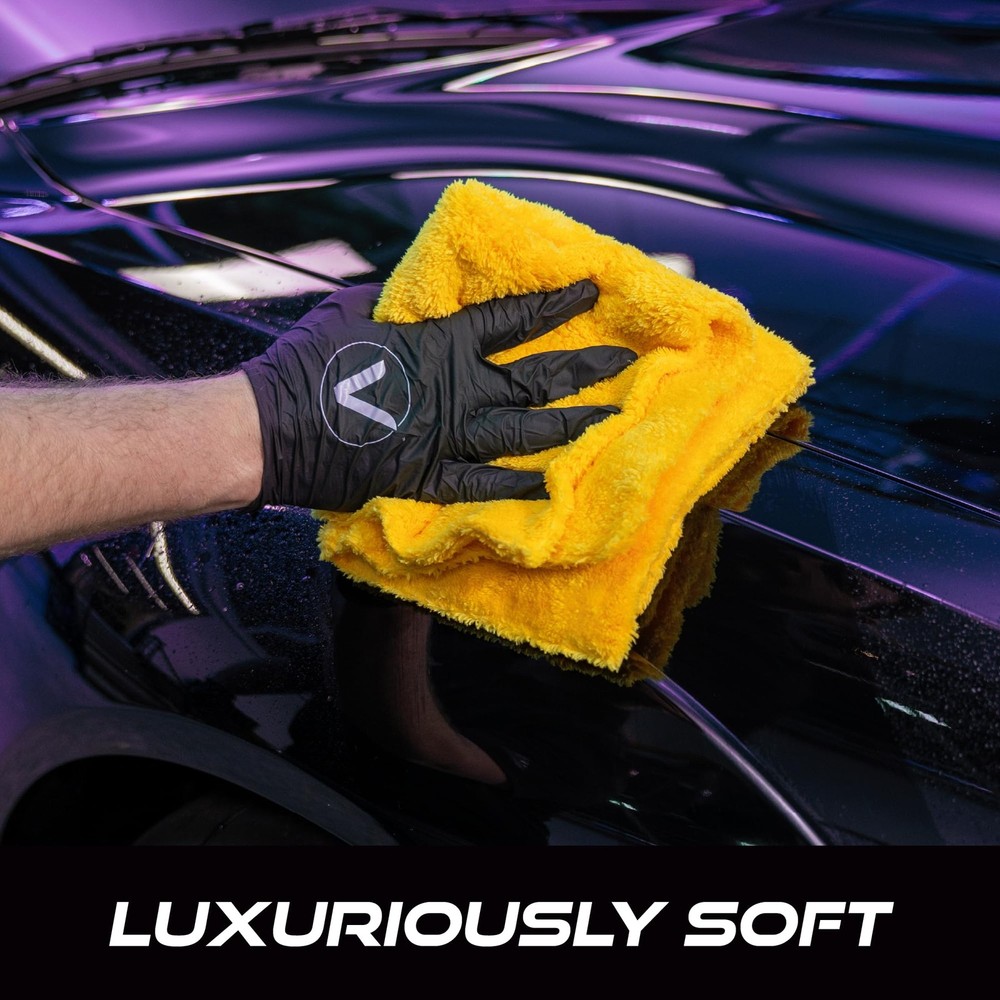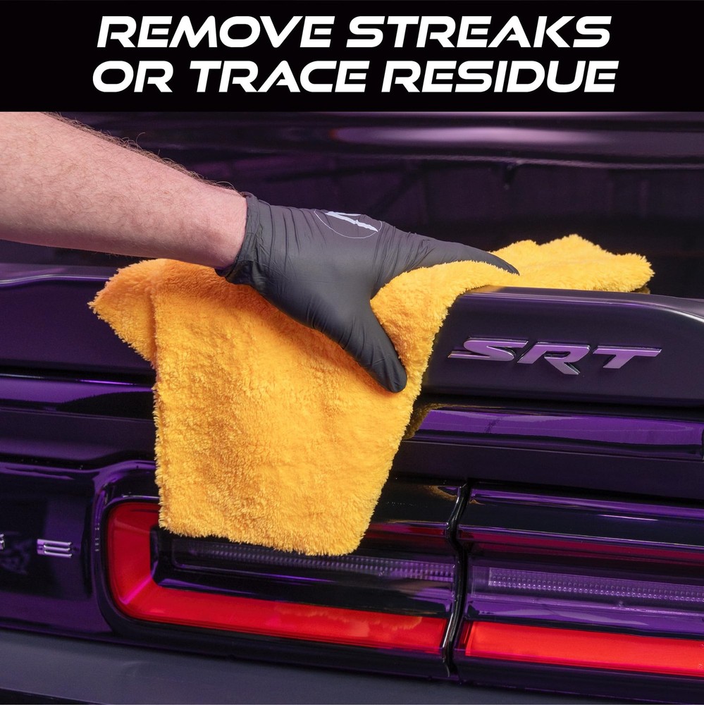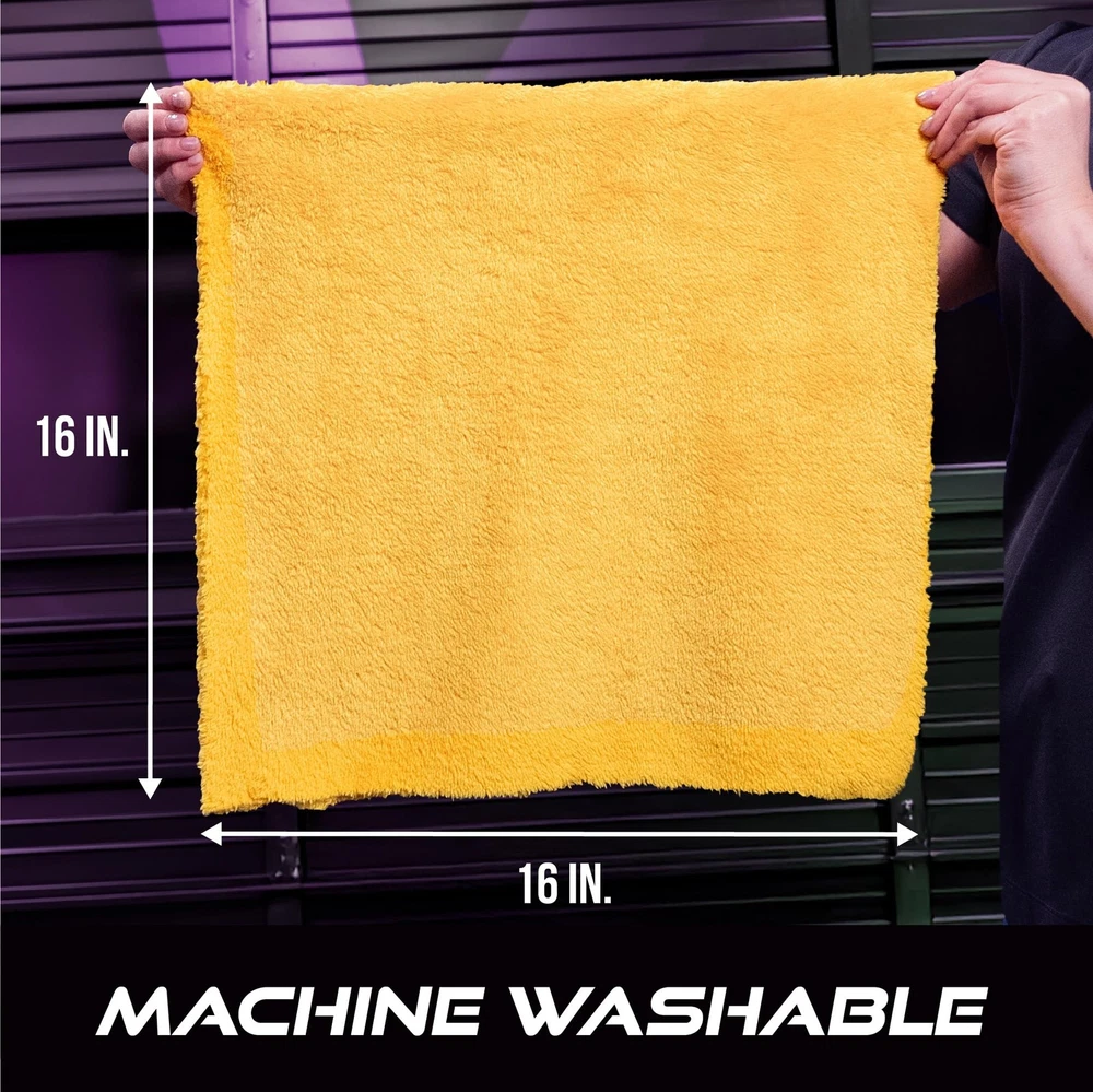 These Microfiber Finishing Towels were made for detailing delicate surfaces. The fabric features exceptional high pile with long plush fibers on both sides which is ideal for final wipe downs – removing any streaks or trace residue from the surface that was missed. The deep pile and incredible softness of these towels make them a good choice to use spray detailers and waterless washes. These towels feature our Edge-to-Edge construction. We’ve replaced the hem with our durable, seamless design so only soft microfiber touches your finish and all the weight is concentrated in the pile. Includes 3 yellow microfiber car towels measuring 16 inches by 16 inches Microfiber towel is perfect for final detailing of delicate surfaces with the thick, plush, and soft fabric High pile height gently sweeps surface particulate up and away Microfiber towels for cars featuring edge-to-edge construction ensures nothing touches your car but soft fibers Machine washable and reusable, the finishing towels will be the favorite part of your car detailing kit