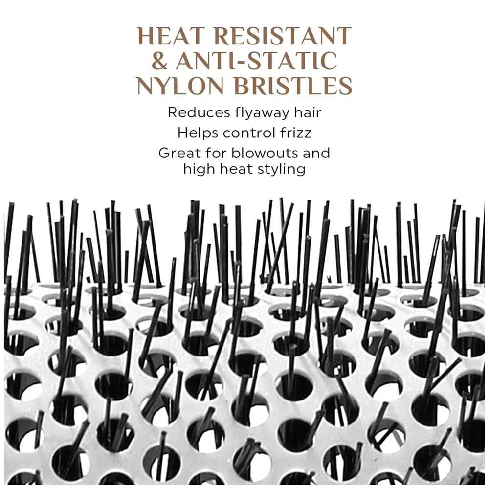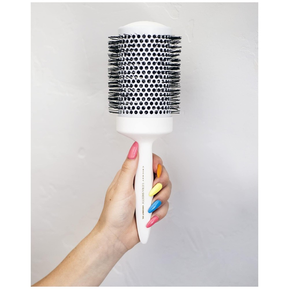 Voluminous Styling: Effortlessly achieve beautiful body, luscious curls, and salon-quality volume with the Ultra Smooth Coconut Thermal Hair Brush, specially designed for blow-drying and styling all hair types with ease. Infused Barrel: The seamless ceramic barrel is infused with Coconut Oil and Keratin Protein, which work together to enhance shine, boost luster, and promote healthier-looking, more manageable hair every day. Anti-Static Bristles: Featuring heat-resistant, anti-static Nylon bristles, this brush minimizes frizz, smooths hair strands, and ensures a polished finish during styling. Frizz-Free Shine: Reduce frizz and enhance shine with the powerful keratin infusion, which adds anti-frizz benefits, leaving your hair looking sleek, smooth, and radiant after every use. Ergonomic Handle: The rubberized, textured handle provides a secure and comfortable grip, allowing for effortless control and easy maneuverability, even during extended styling sessions.
