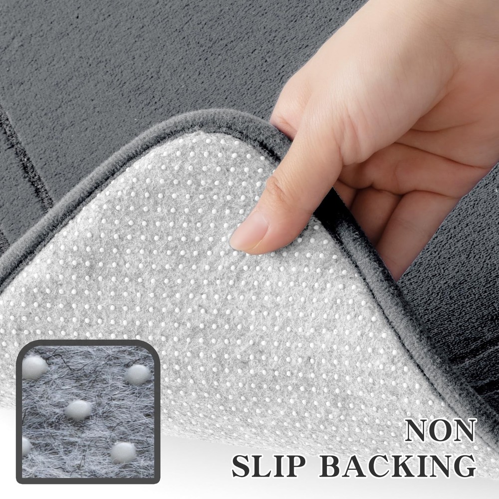 bathroom rugs are the perfect companion to compliment your bathroom style. FEATURES: hairless suede fabric surface, very soft and comfortable for your feet to step on. Present in 17" x 24" / 20" x 32" / 20" x 48" with a unique geometric design - Quick drying - Rubber backing - Ultra absorbent Is this bath mat durable and long-lasting? Our bath rug is constructed with the most premium, high-quality Rubber backing. This durable and strong material will help to keep your bath rug securely on your floor, so that you no longer need to worry about shifting or bunching. My old rug was rough and scratchy on my feet how is yours different? Our bath rug features a soft, hairless suede fabric surface that is a pleasure to step on after a bath or shower. The density of our pile is much higher than most other mats on the market. Will the rug complement my bathroom decor? Certainly! Our bath rug comes in an assortment of stylish, sophisticated colors that will be the perfect complement to any bathroom design or existing towels. You can also use this rug in multiple areas of your home such as your bedroom, laundry room, playroom, children's room, or pet space. 【Soft & Comfortable】Bathroom rugs are filled with high density polyurethane memory foam and the microfiber coral velvet outer material, ultra-soft and cozy, bath rugs relieve pressure and fatigue on your feet, provides a cloud-like comfort 【Highly Absorbent】absorbent bath mat made of soft flannel layer to keep bathroom mat quick dry, make your feet dry immediately, and the water does not stay on the surface of the bath mat, enjoy a bathroom that is always clean and dry 【Strong Non-Slip】bathroom mat have thousands of dots on the underside, effectively preventing sliding and shifting, ensuring a secure stepping experience, WARNING: Ensure that the area underneath the bathroom floor mat is kept dry for optimum performance and test to ensure that it does not move before use 【Easy to Clean】bathroom mats are machine washable. Simply place the foam mat in the washer using cold water on the gentle cycle, do not use chlorine or bleach, tumble dry on low heat or lay to air dry, the color of the bathmat will not fade 【Versatile Use】Thicker and better constructed memory foam bathroom mat available in multiple sizes and colors, is easy to match with bathroom, non slip bath mat perfectly made for bathroom shower, kitchen mat, bathroom runner rug