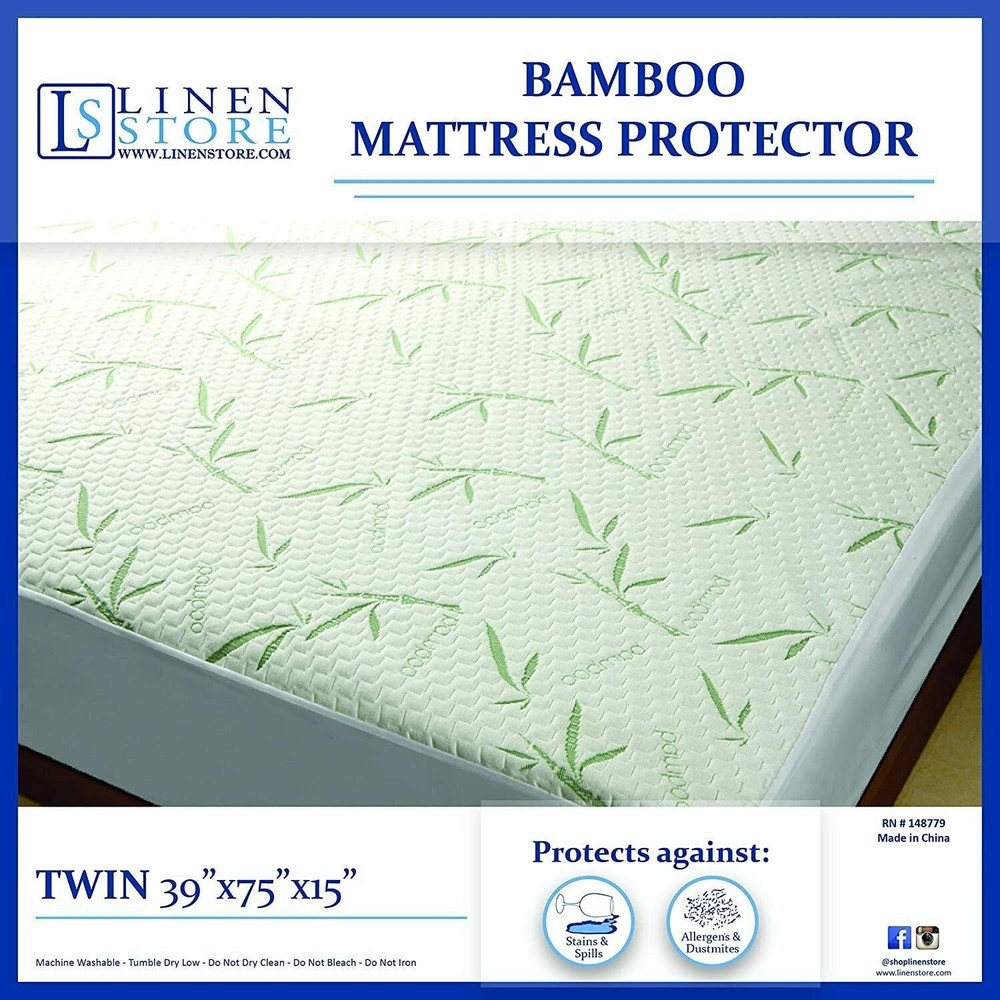 Keep your mattress safe and clean with this Premium Bambo Waterproof Mattress Cover! providing you with ultimate softness and comfort in your sleep. Made of premium bamboo fabric that is soft and breathable, the all-season friendly fabric blocks liquids but allows air to flow and wick away moisture to keep you fresh and cool all night and day. Bamboo is a super soft and naturally skin friendly material so you can sleep peacefully without worrying about runny eyes or stuffy nose. Fits perfectly and does not rustle or make noise to disrupt your sleep. This is especially helpful if you have children or elderly around. Easy to install, the cover goes on like a fitted sheet, wrapping right around your mattress and has deep pockets to make it easy to stretch and fit the base of your mattress. Free Shipping Over $49.99* Details Premium Ultra Soft Bamboo Mattress Protector Water Resistant Breathable Mattress Product Description: Keep your mattress safe and clean with this Premium Bambo Waterproof Mattress Cover! providing you with ultimate softness and comfort in your sleep. Made of premium bamboo fabric that is soft and breathable, the all-season friendly fabric blocks liquids but allows air to flow and wick away moisture to keep you fresh and cool all night and day. Bamboo is a super soft and naturally skin friendly material so you can sleep peacefully without worrying about runny eyes or stuffy nose. Fits perfectly and does not rustle or make noise to disrupt your sleep. This is especially helpful if you have children or elderly around. Easy to install, the cover goes on like a fitted sheet, wrapping right around your mattress and has deep pockets to make it easy to stretch and fit the base of your mattress. Fits mattresses up to 15 inches deep!. Available in 4 sizesTwin, Full, Queen and King. Here is a size guideTwin - 75" x 39", Full - 75" x 54", Queen - 80" x 60", King - 80" x 78". Features: ULTRA-SOFT PROTECTIONKeep your mattress feeling brand new for years with our bamboo fabric protector. QUIET & COOLINGThis stretchable fabric is designed to silently stay in place all night, even with movement in the bed. It's highly breathable and promotes air circulation, so you'll stay cool and clean while you sleep. WATERPROOFExpand the life of your mattress by making it resistant to sweat, liquid spills, stains, and urine from humans. Our special, double-layer membrane technology absorbs any mess to completely protect your mattress. PERFECT FITEasy to install, the cover goes on like a fitted sheet, wrapping right around your mattress and has deep pockets to make it easy to stretch and fit the base of your mattress. Fits mattresses up to 15 inches deep! Easy to Install & Clean. Machine washable.
