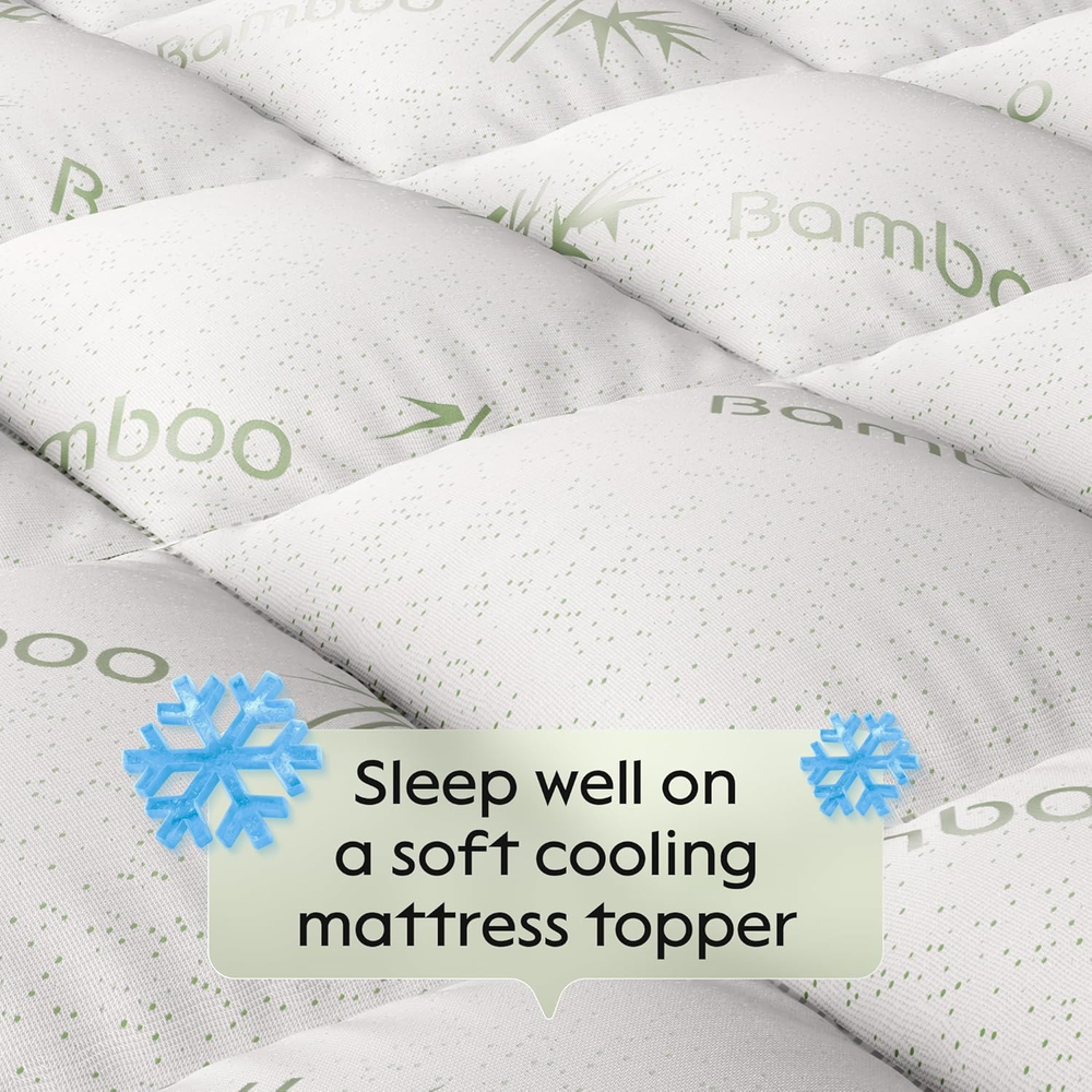 Makes Old Mattress New: Quilted Mattress Topper Queen Bed Size 60x80 Inches Fits 20 Inches Deep Mattresses. Our down alternative quilted mattress topper is filled with viscose made from bamboo, providing a mattress reviver. Don't throw away your old mattress—use our mattress pad to refresh it. Filling: Sleeping on a cloud: Quilted Mattress Cover Queen is Extra soft premium mattress topper provides unbeatable comfort and it is like sleeping on a cloud. Good for people who want extra cushion between them and mattress and looking for extra thick quilted mattress topper protector or pillow top mattress protector cover is protection mattress pad also. Deep 20 Inches Pocket: Quilted Mattress Pad Queen Breathable Premium mattress protector, mattress cover also mattress protector fits up to 20inches as it is extra deep and has a stretchable skirt , which is fully elasticated to grip the mattress and no sliding. Cooling Breathable: Our luxury quilted mattress topper queen is made from virgin fiber filling, which makes sure that luxury mattress pad retains shape and bounces back. Soft touch and feel futon mattress topper. Padded Mattress topper works better than foam bed mattress toppers. Machine Washable: Pillow top mattress topper is easy to wash and mattress pad can be tumble dry on low heat. This is also a cooling mattress topper. Product Description Ultra-Soft Padding This mattress topper is equipped with a soft, cushiony pillow-top texture to transform any mattress into the perfect place to sleep. Viscose Made From Bamboo Material Niagara mattress topper is made of viscose made from bamboo fabric, which is gentle on sensitive skin. Thermo-Regulating The fabric on each topper is temperature-regulating and moisture-wicking, keeping you cool in the summer and warm in the winter. Back Support Sleeping on a mattress topper helps ease back pain by adding an extra layer of protection and support to your old mattress. Extra Deep Pocket The deep pocket design on this topper can fit mattresses that are up to 8-20 inches deep, allowing you to attach this topper to virtually any mattress. Machine-Washable To wash your topper, simply wash it in cold water. Don’t iron or bleach it, just lay it out to dry or tumble dry on low. For maximum fluffiness, fluff up the mattress before its first use.